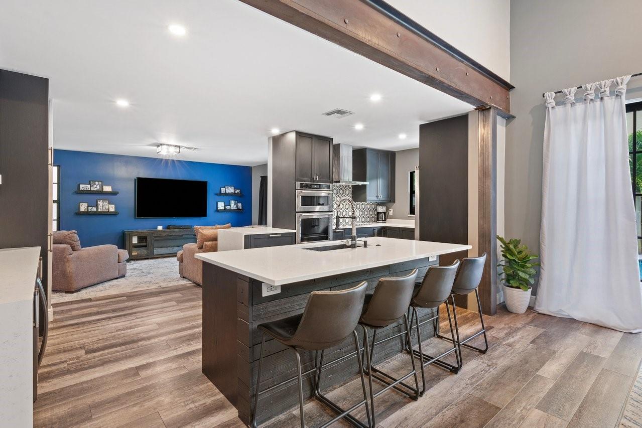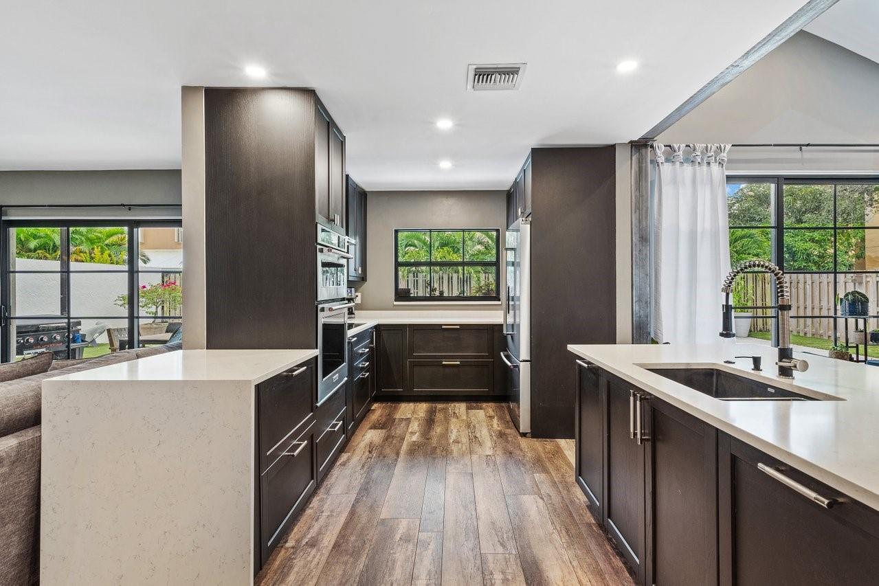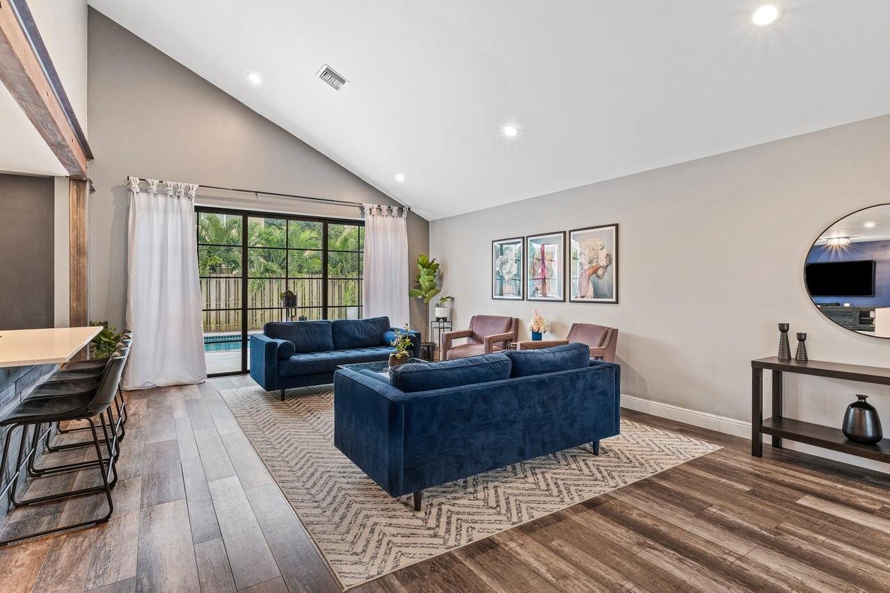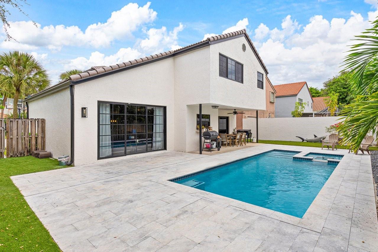 A Jaw dropping home with modern & industrial loft influences. Not only is it beautiful it is practical with a 2023 ROOF, all new impact windows/doors, newer heated saltwater pool with spa & etc. Enter through a stunning glass door entry into a totally reimagined & renovated interior. You will love the open design, vaulted ceilings, large living areas, exposed beams, wood like flooring & glorious views of the pool/backyard. Fabulous kitchen with a large island, quartz counters/waterfalls, top shelf appliances, wine chiller etc. Upstairs are all bedrooms & a loft that can be easily converted to a bedroom. Primary suite is impressive in size & offers a gorgeous updated spa bathroom. The pool & outdoor living areas are breathtaking. Lawn maintenance is included in HOA fees. Simply Beautiful!