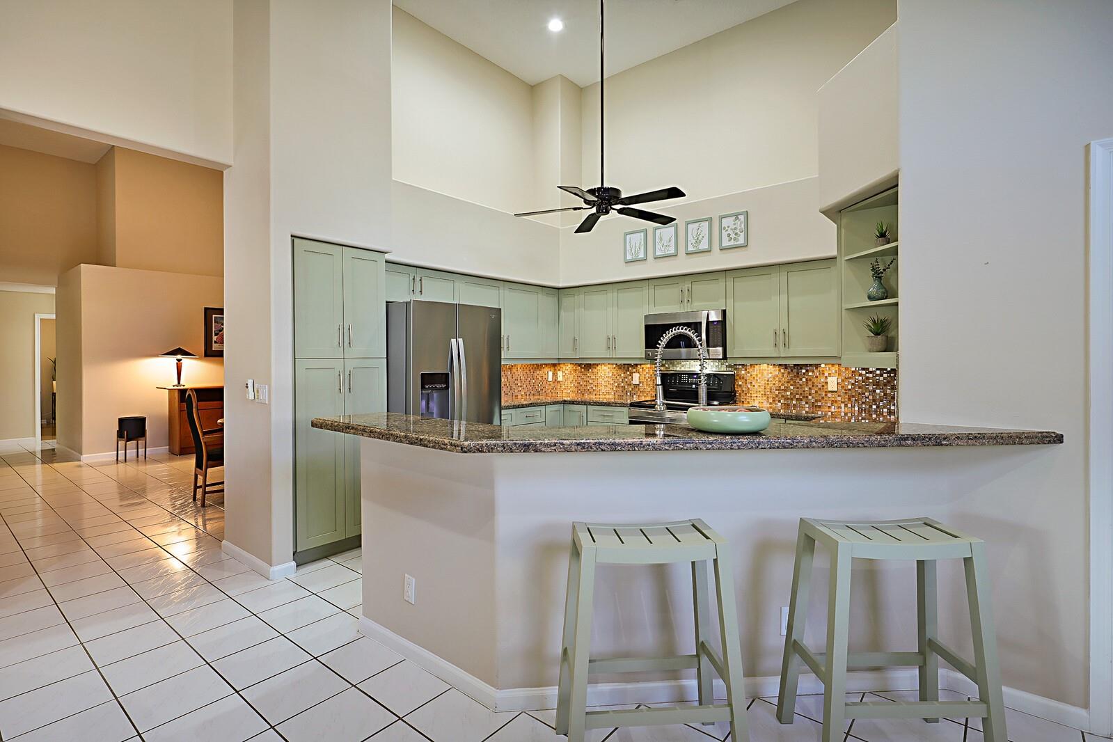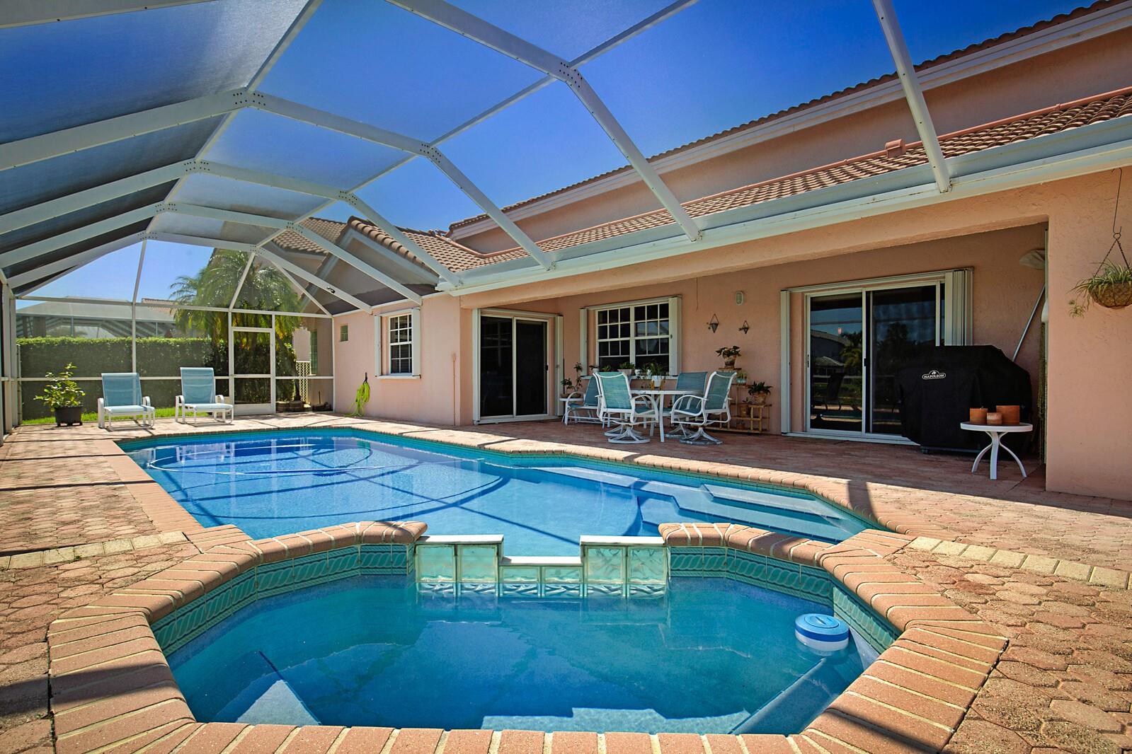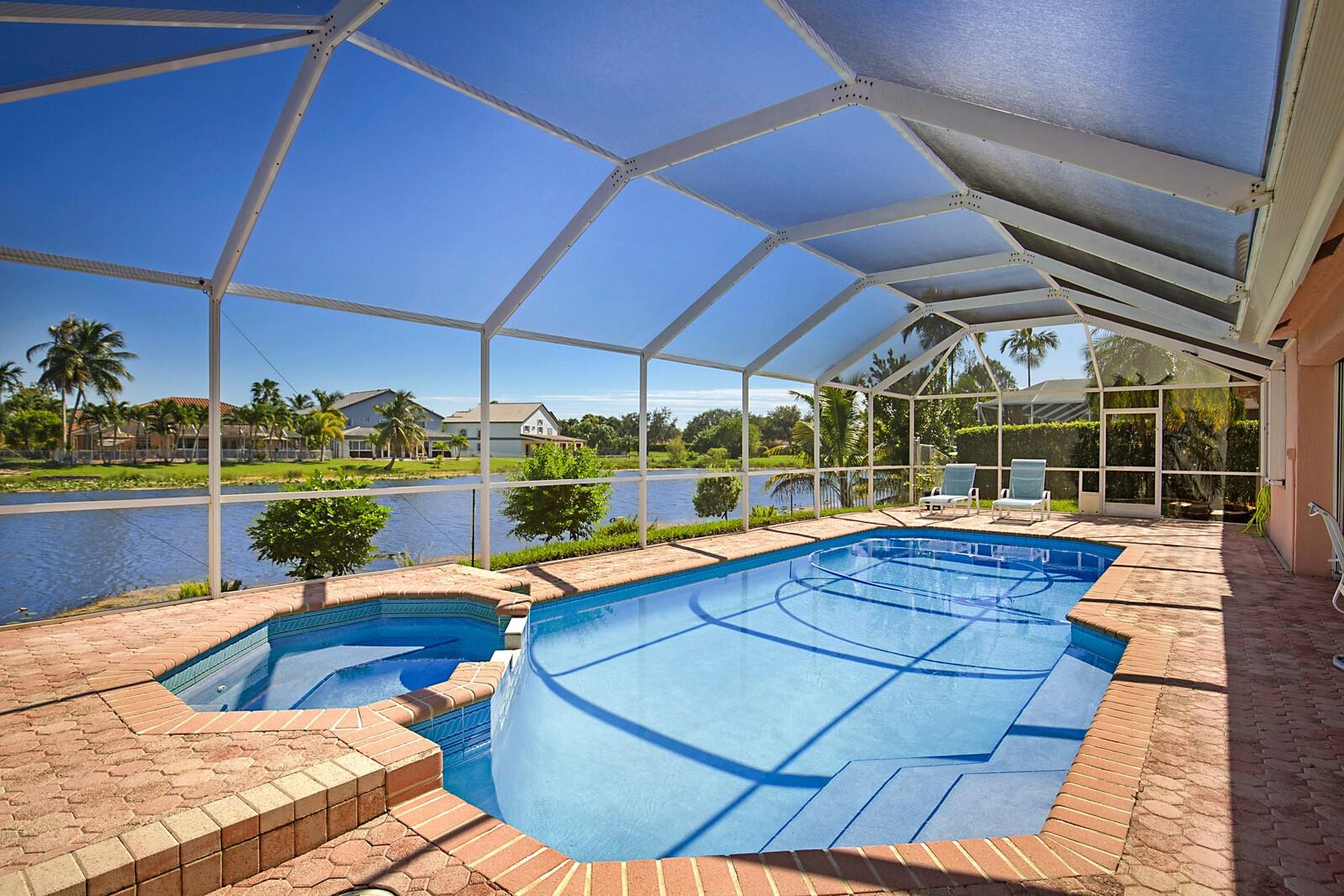 Rare opportunity in The Preserves at Chapel Trail. Spacious single story 4/3 lakefront home w/ heated pool & spa. Dramatic high ceilings in this large home w/ over 3,000 sq ft gross area. Features remodeled kitchen w/ newer stainless-steel appliances, granite counter tops & elegant backsplash w/ under cabinet lighting. Split Breakfast & dining areas. Master bathroom remodeled. 3 car garage. Accordion shutters. House meticulously kept & clean. Roof replaced 12/2009. Tile flooring in living areas & laminate in bedrms. Dual A/C systems. Pool & spa enclosure & covered areas perfect for enjoyable lakeviews, BBQ & outdoor enjoyment. Lot is almost ¼ acre & fenced yard. Reverse osmosis water system. LED lighting. Access to Rose Price park & highly rates schools of West Pines.