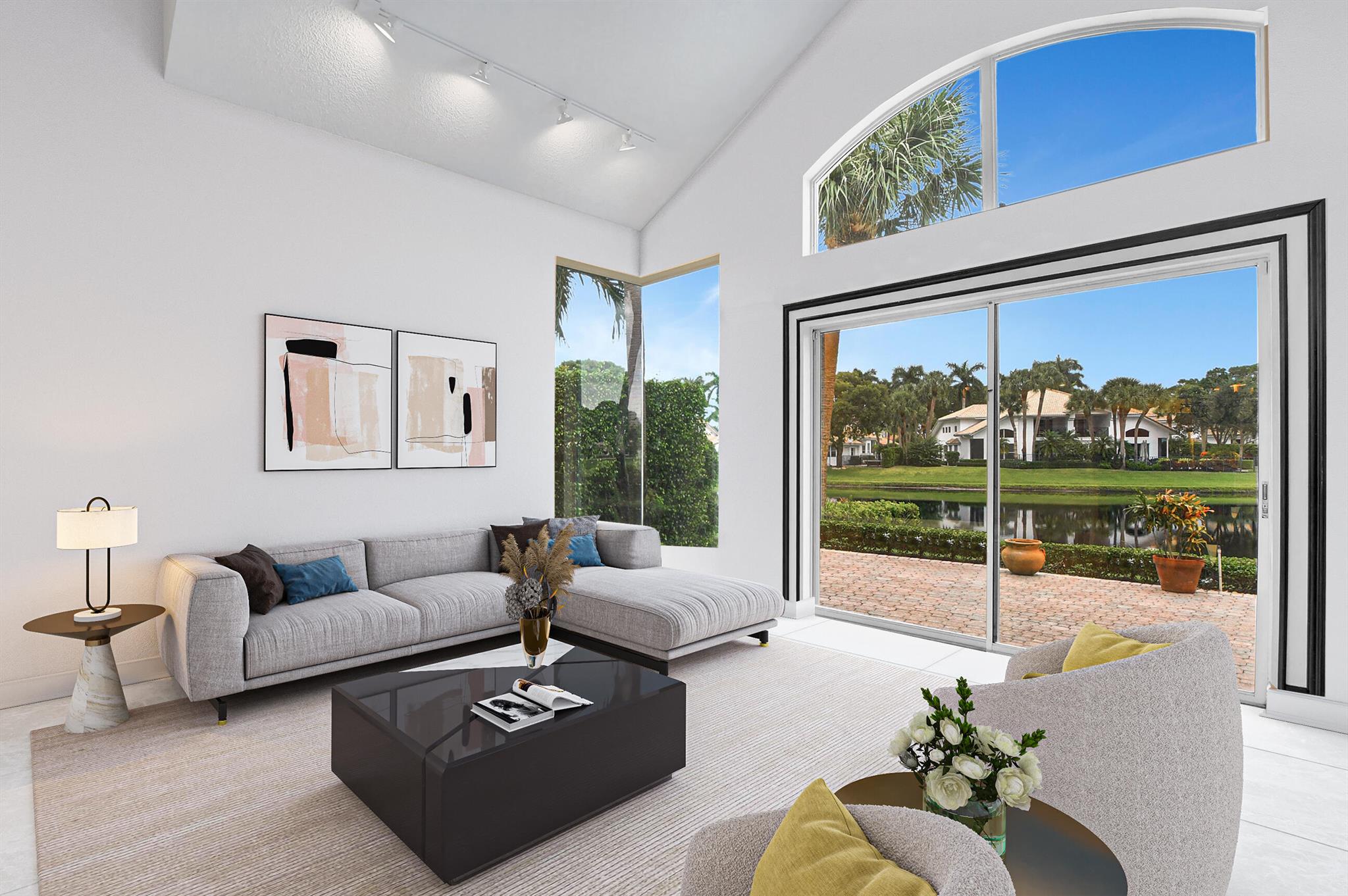 This 3-bedroom, 2.5-bath + loft, 2220 sq ft townhome, facing the lake, offers million-dollar views at the most attractive price. The primary suite is on the ground level with sliders to the patio and views of the lake. The additional 2 spacious bedrooms are upstairs with a loft for office/study/or play area. Double height ceilings in the main living dining area create an inviting atmosphere, filled with light, space and views. The thoughtful floor plan maximizes flow and functionality. Also enjoy stunning views from the upstairs balcony. A perfect family home in Broken Sound Country Club. Membership in Broken Sound Club is mandatory.