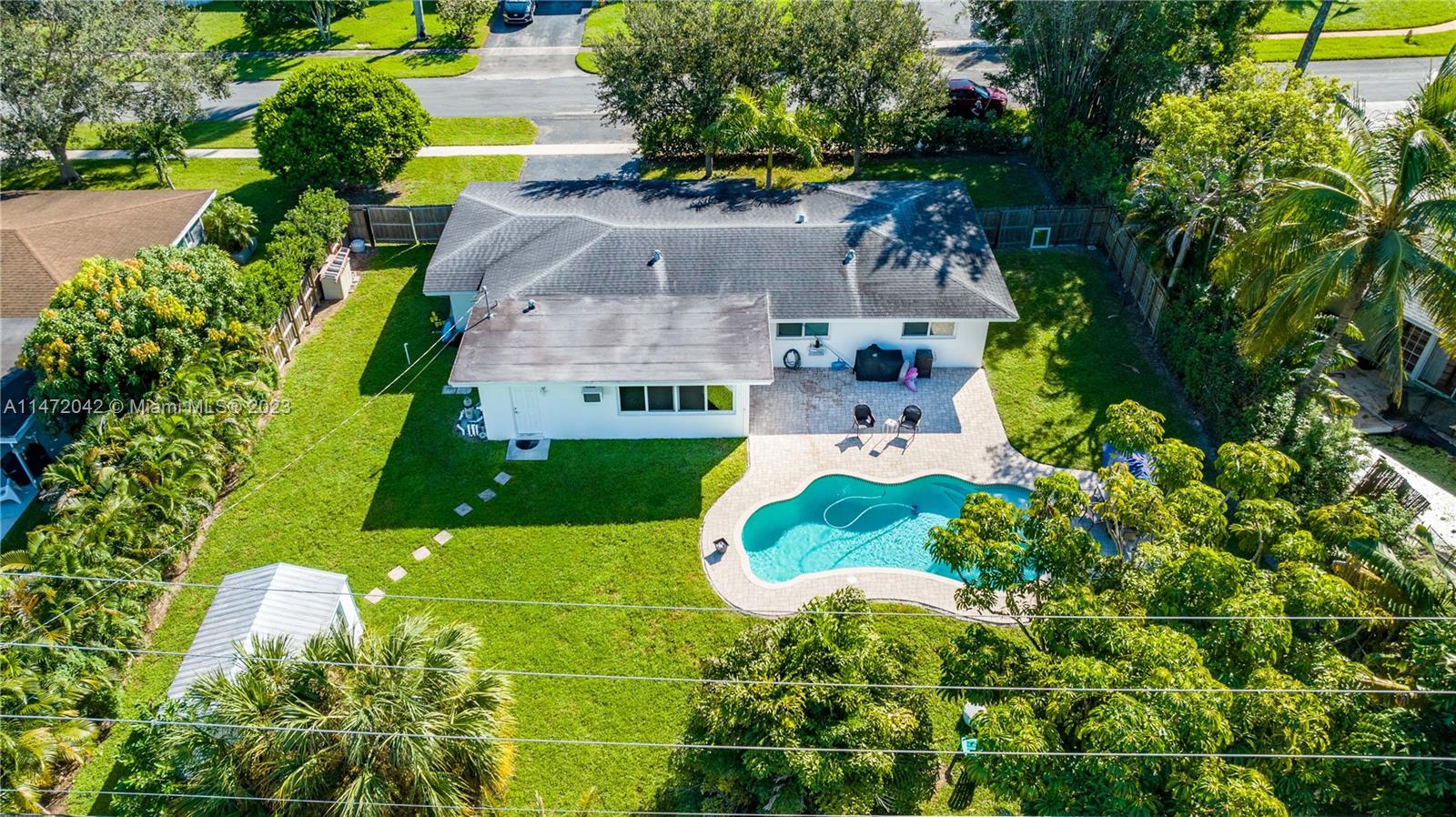 Fantastic 3 bedroom 2 bath pool home in Plantation Park! Oversized, 13,000' sq ft lot located on dead end street! Impact windows & doors. Shingle & flat roof (2016). Beautiful free form pool w/ paver patio. Completely fenced in yard w/ double gates, great for RV & boat storage. Outdoor shed functioning as a home office equipped with electric & AC. Electric car charging station in the 2 car garage. Indoor laundry room. GE electrical panel. AC compressor (2022). Water heater (2012). Tile flooring throughout interior of the home. Renovated bathrooms. Home is wired for generator input in a power outage! Centrally located, close to 595, Downtown Ft Lauderdale, airport, beaches & so much more. No HOA!!
