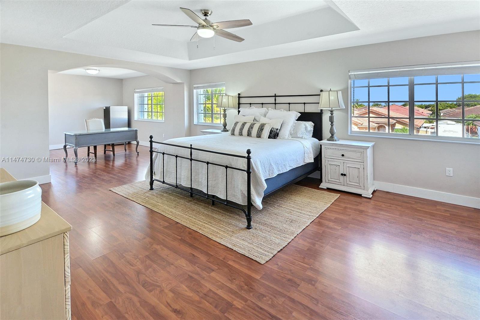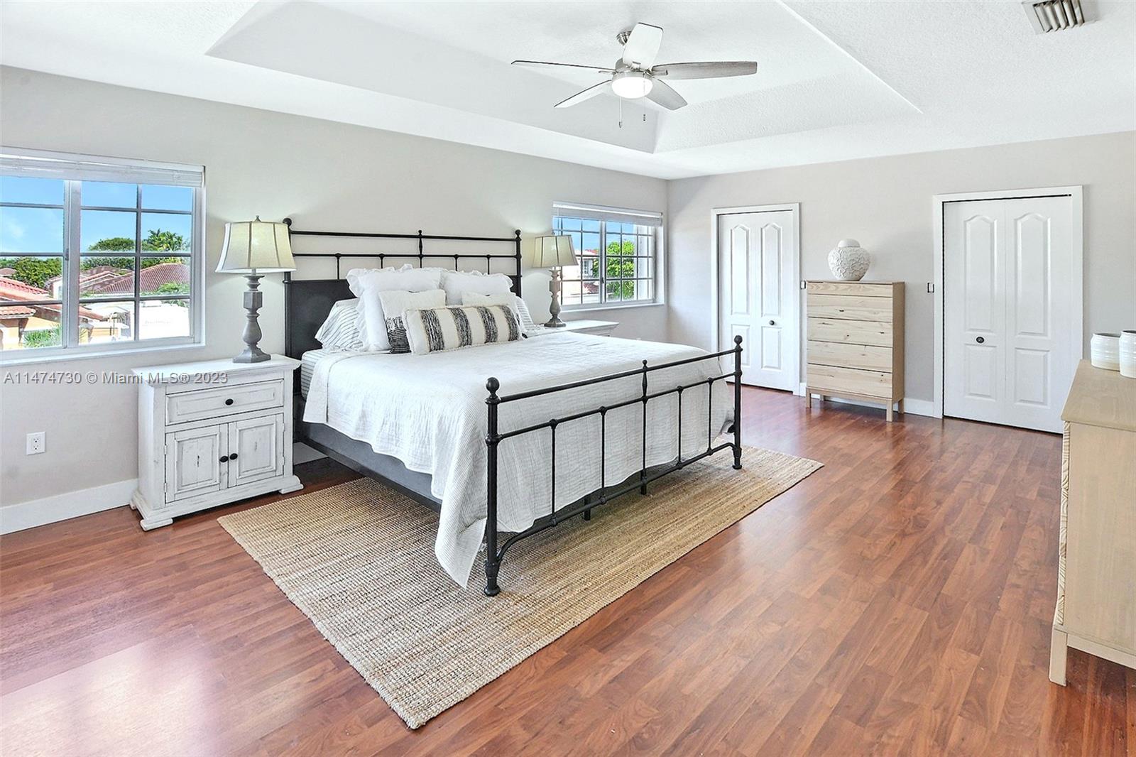 EXQUISITE 4 BED, 2.5 BATH SINGLE FAMILY HOME IN SPANISH LAKES COMMUNITY OF HIALEAH OFFERS 2,780 SQ FT OF LIVING. UPON ARRIVAL BE GREETED BY AN ELEGANT CIRCULAR DRIVEWAY WINDING AROUND TASTEFUL LANDSCAPING. INTERIOR DESIGN ENTHUSIASTS WILL SWOON AT THE ONE OF A KIND, HIGH END DECOR ELEMENTS FOUND THROUGHOUT THIS SPECTACULAR HOME INCLUDING, BOARD & BATTEN ACCENT WALLS, NICHES, & ARCHES. THE KITCHEN THAT DREAMS ARE MADE OF HAS IN DEMAND CAFE SERIES APPLIANCES, BRICK ALCOVE, & TWO TONED CABINETRY TOPPED W/ QUARTZ. A GRAND PRIMARY SUITE HAS A TRAY CEILING & SITTING ROOM GREAT FOR AN OFFICE OR NURSERY. THE STUNNING ENSUITE BATH HAS WRAPAROUND BLUE SHAKER CABINETRY, ROMAN TUB, & SEPARATE SHOWER. PERFECT FOR ENJOYING INDOOR/OUTDOOR LIVING, A WALL OF GLASS DOORS OPEN TO THE SPACIOUS PATIO & YARD.