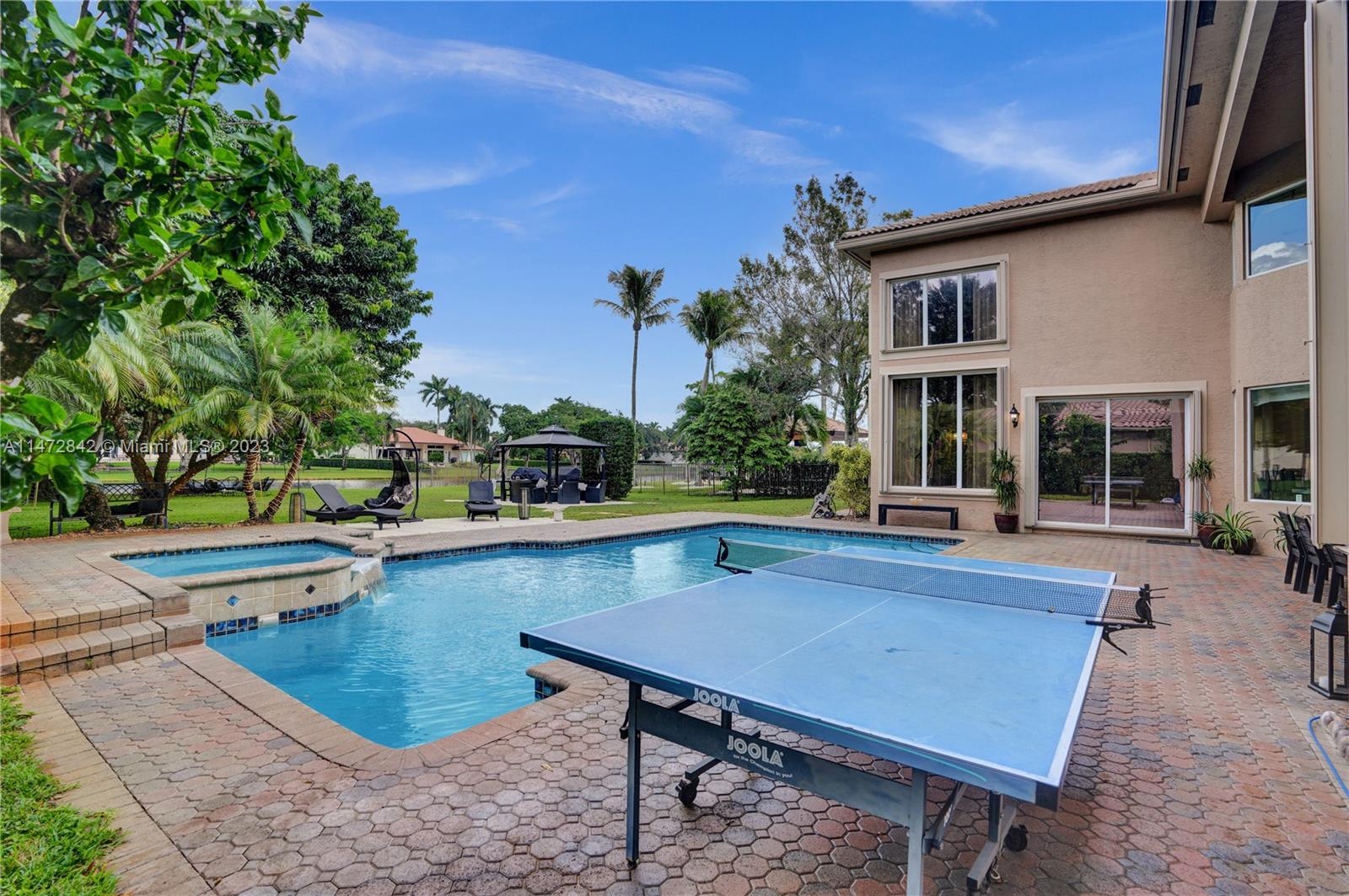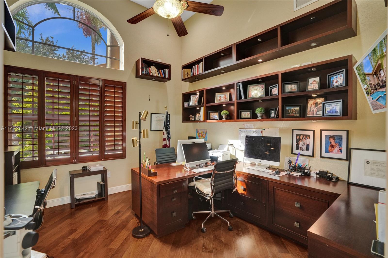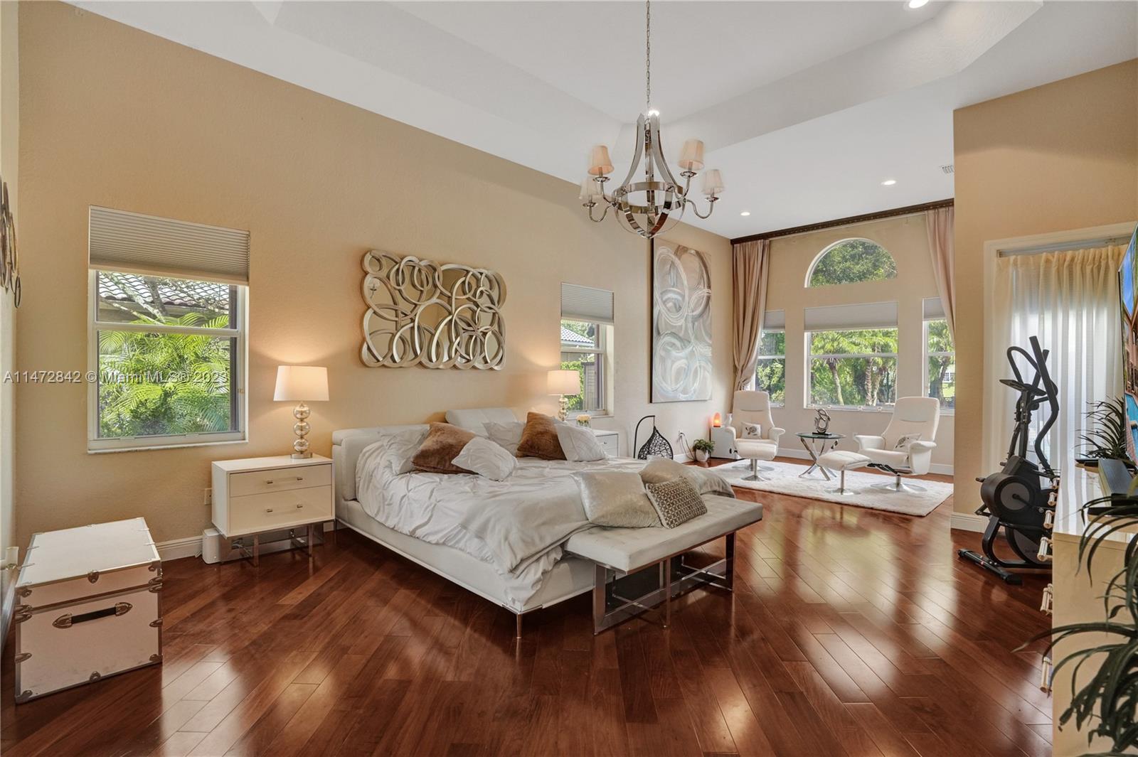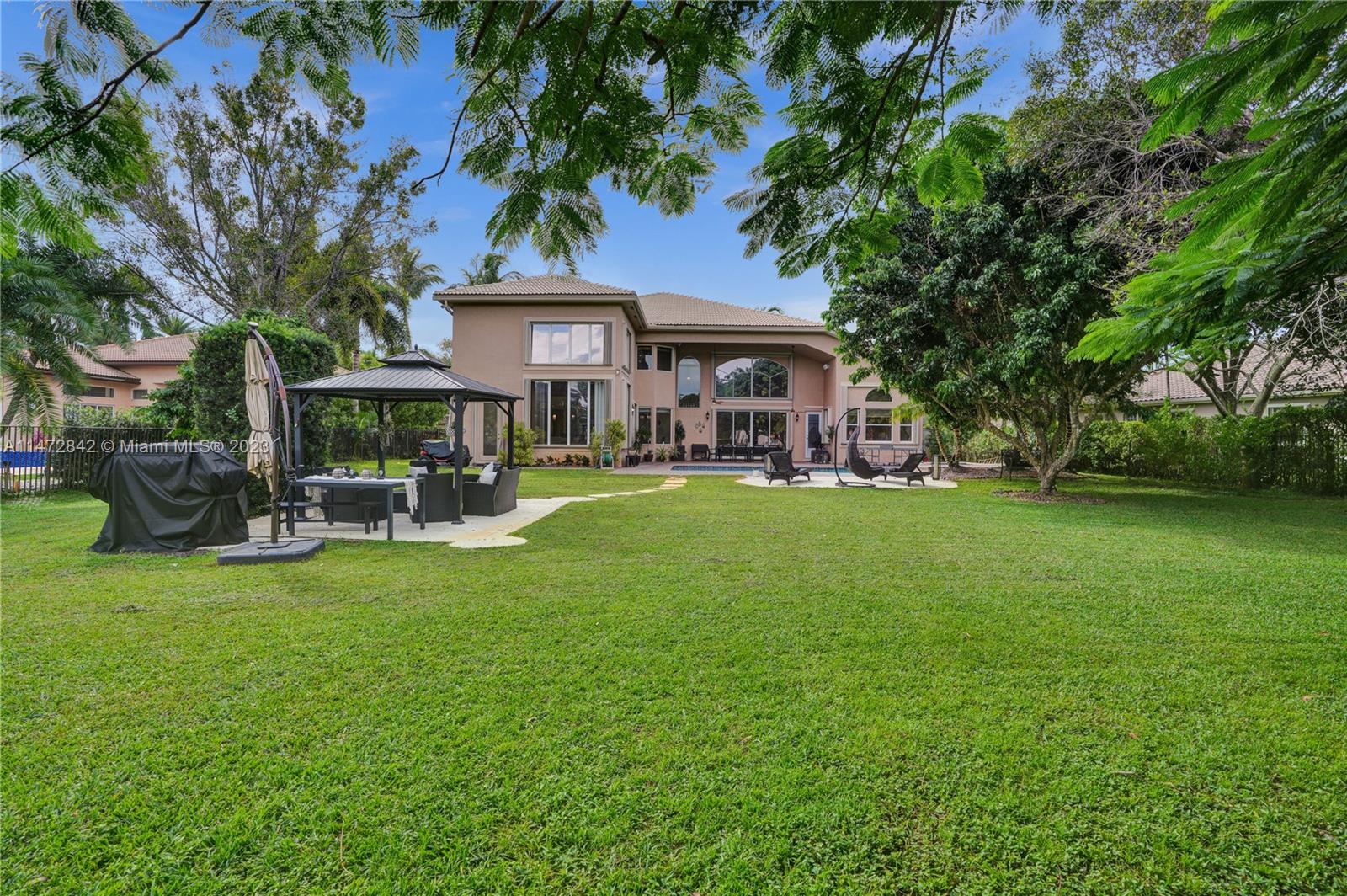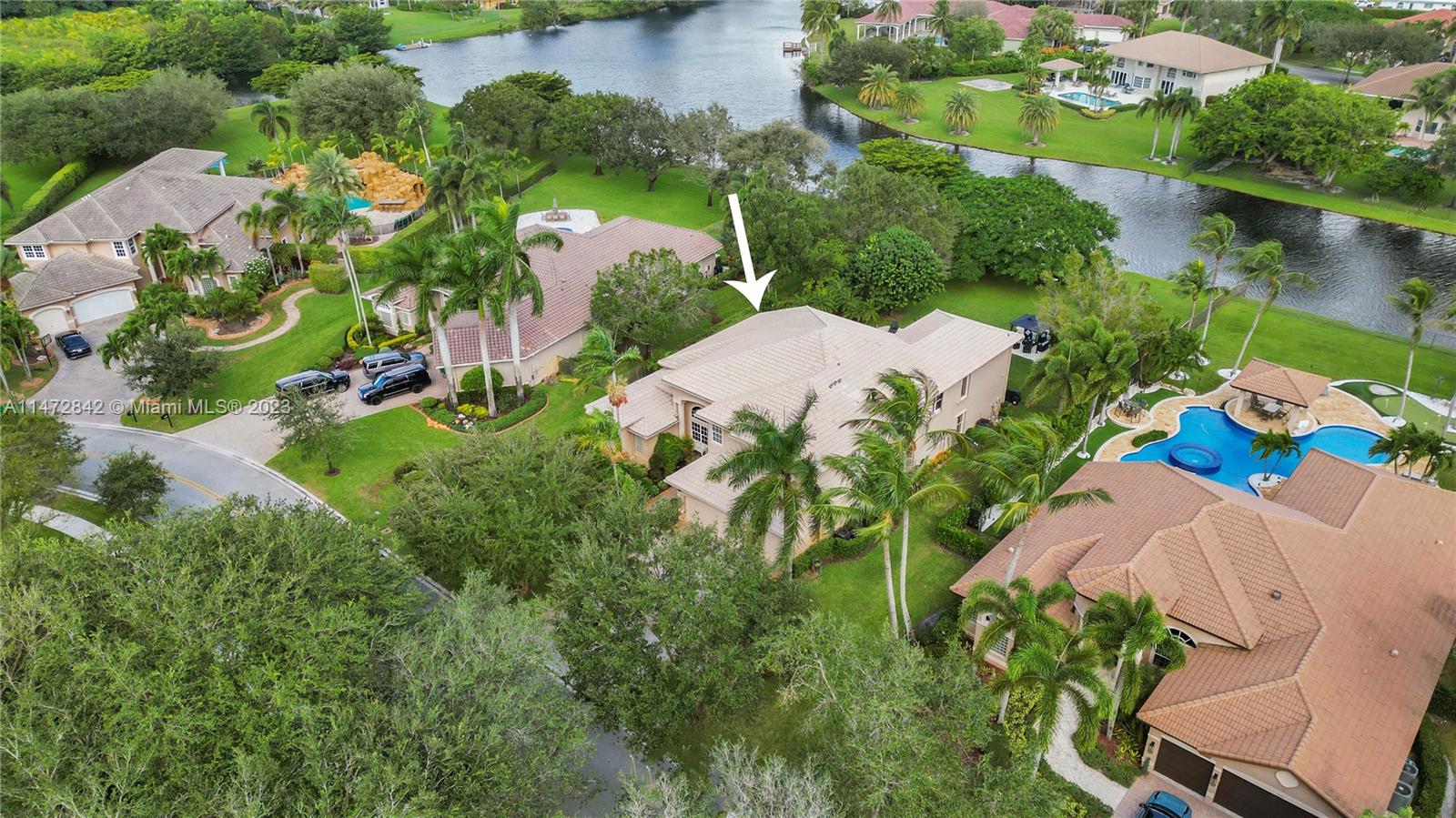 Exquisite lake home situated in the prestigious gated community of Long Lake Estates. Breathtaking views of the lake where you can enjoy waterskiing, this 5 bedroom 4.5 bath plus a dedicated office space complete with stylish built-in furniture, showcases soaring tray ceilings throughout the living spaces, elegant marble floors, situated in an oversized lot. This beautiful turnkey home offers a host of luxury elements including a grand entrance, a newly renovated kitchen with white quartz countertops and high-end stainless-steel appliances, a luxurious main bedroom, impact-resistant windows and doors, and a three-car garage. Outdoor Florida living with a resort style heated pool. The community features a tennis court and basketball court. ONLY NAVIGABLE LAKE/CANAL IN TOWN.
