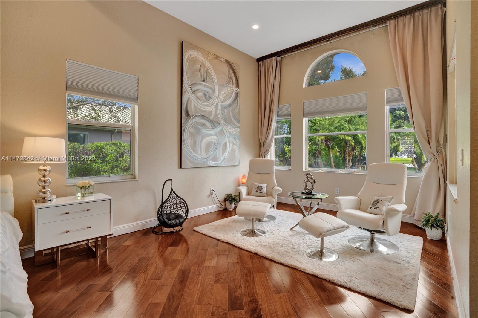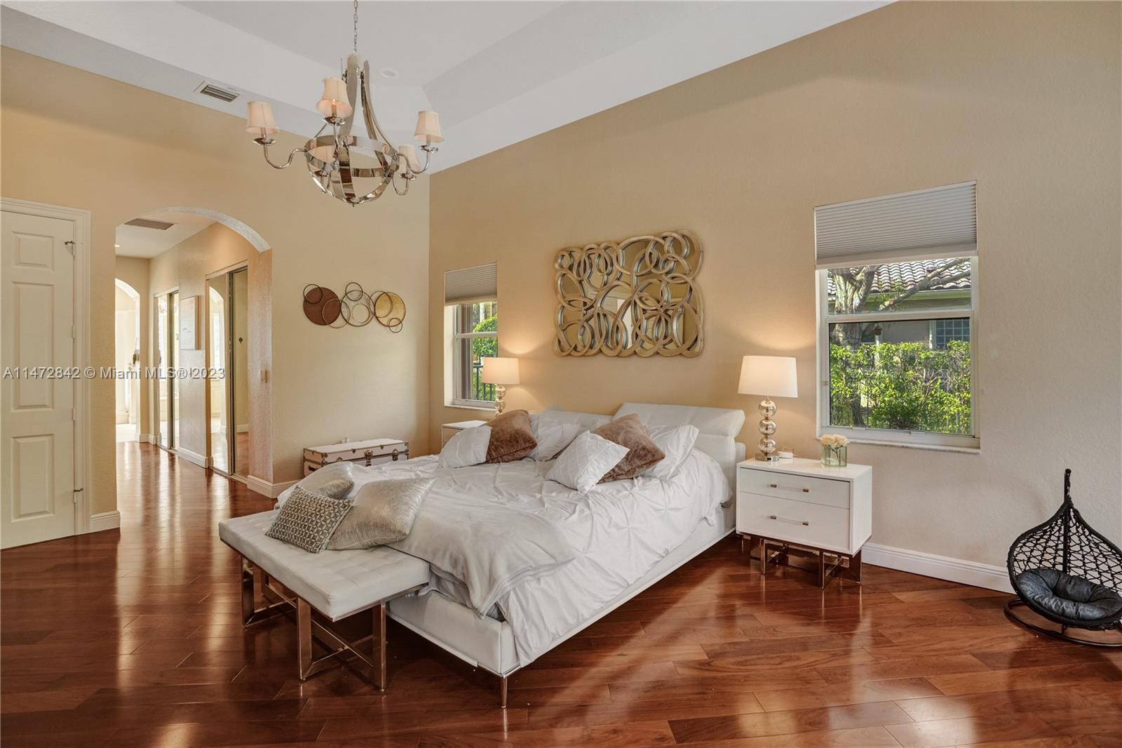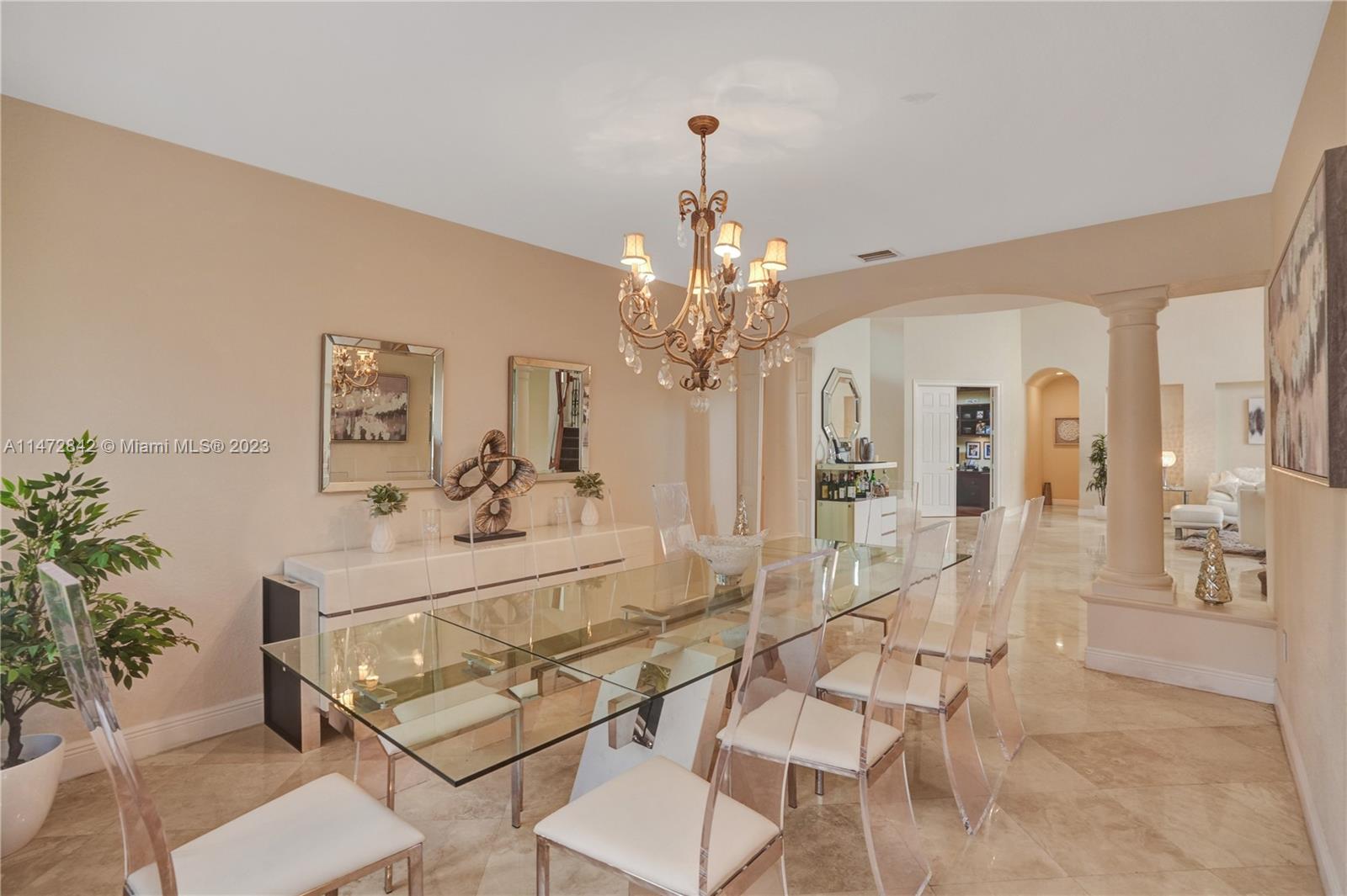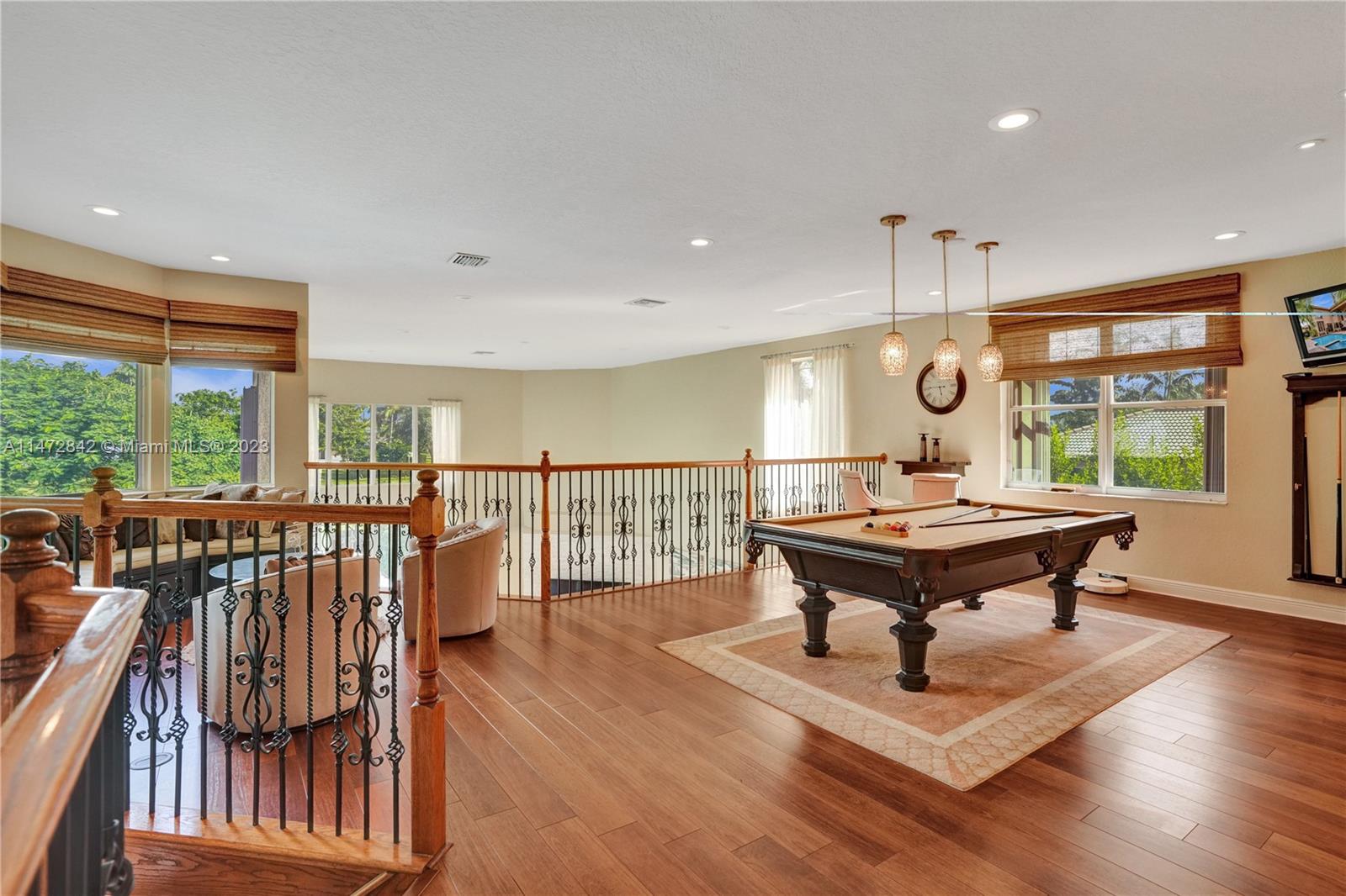 Exquisite lake home situated in the prestigious gated community of Long Lake Estates. Breathtaking views of the lake where you can enjoy waterskiing, this 5 bedroom 4.5 bath plus a dedicated office space complete with stylish built-in furniture, showcases soaring tray ceilings throughout the living spaces, elegant marble floors, situated in an oversized lot. This beautiful turnkey home offers a host of luxury elements including a grand entrance, a newly renovated kitchen with white quartz countertops and high-end stainless-steel appliances, a luxurious main bedroom, impact-resistant windows and doors, and a three-car garage. Outdoor Florida living with a resort style heated pool. The community features a tennis court and basketball court. ONLY NAVIGABLE LAKE/CANAL IN TOWN.