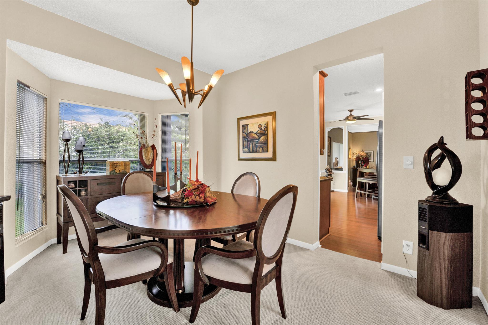 This spacious residence features 4 bedrooms, 2 full baths, 1 half bath, and a welcoming family room with a cozy fireplace. With a blend of laminate wood and carpeted floors, built-in walk-in closets, high ceilings, and a convenient roll-out kitchen. The kitchen and bathrooms are updated. Situated in the remarkable Boca Winds Community, which is close to the upstanding schools in the county, it has a resort style pool and clubhouse, tennis courts. This is also very close from the best parks in Palm Beach. Close to shopping centers, colleges, restaurants, galleries, beaches and a lot more! This will not last!