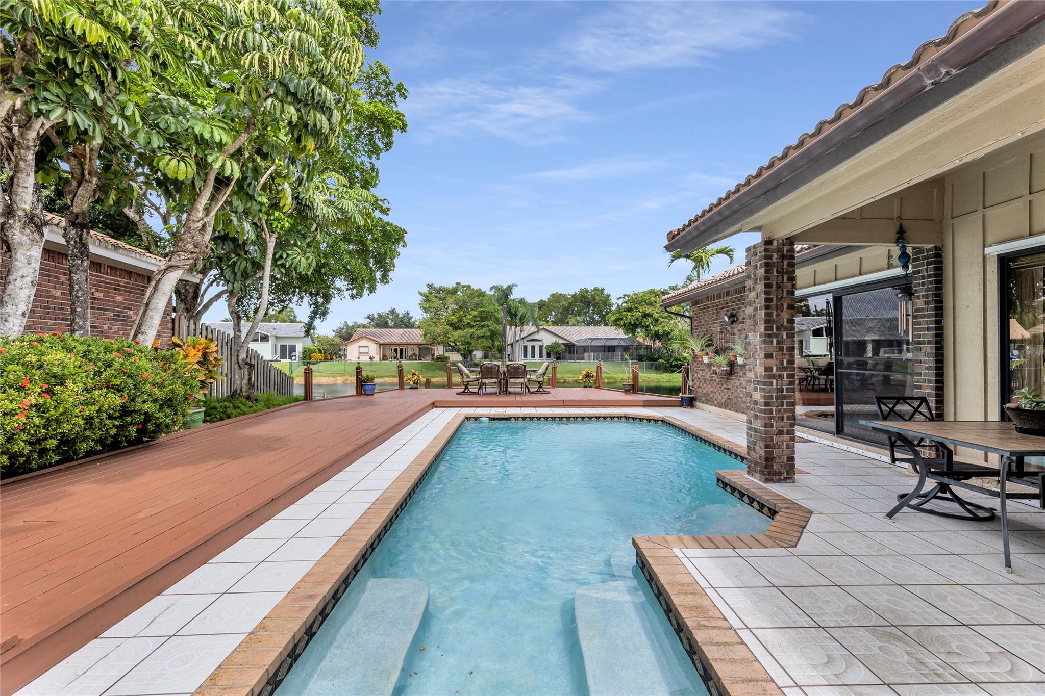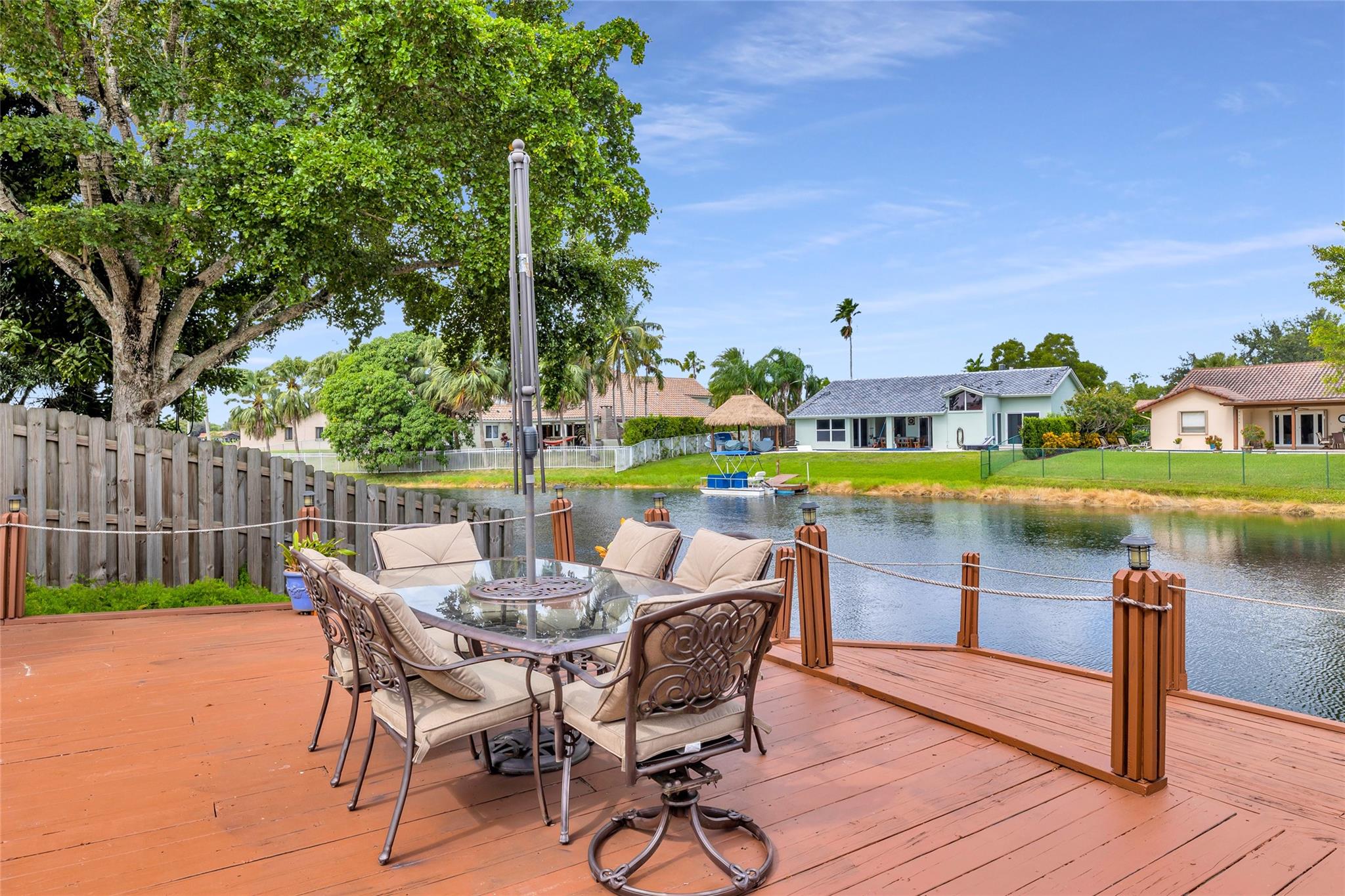 Welcome to the highly sought-after community of ROCK CREEK in Cooper City. This splendid lake-front residence boasts 3 bedrooms, 2 bathrooms, living room, dining area, and a beautifully updated kitchen with eat-in area. The 2-car garage has been converted into a spacious and well-appointed family room and can easily be converted back. Step outside, and you'll be transported to your very own backyard paradise. Whether you're hosting a family barbecue, an evening with friends, or just unwinding by the pool, this inviting outdoor space with direct access to the lake will become your sanctuary. This pet-friendly community is known for its relaxed atmosphere with regular social events, and proximity to top-rated schools, shopping and dining. Very low HOA fees, no approval needed. Call today!