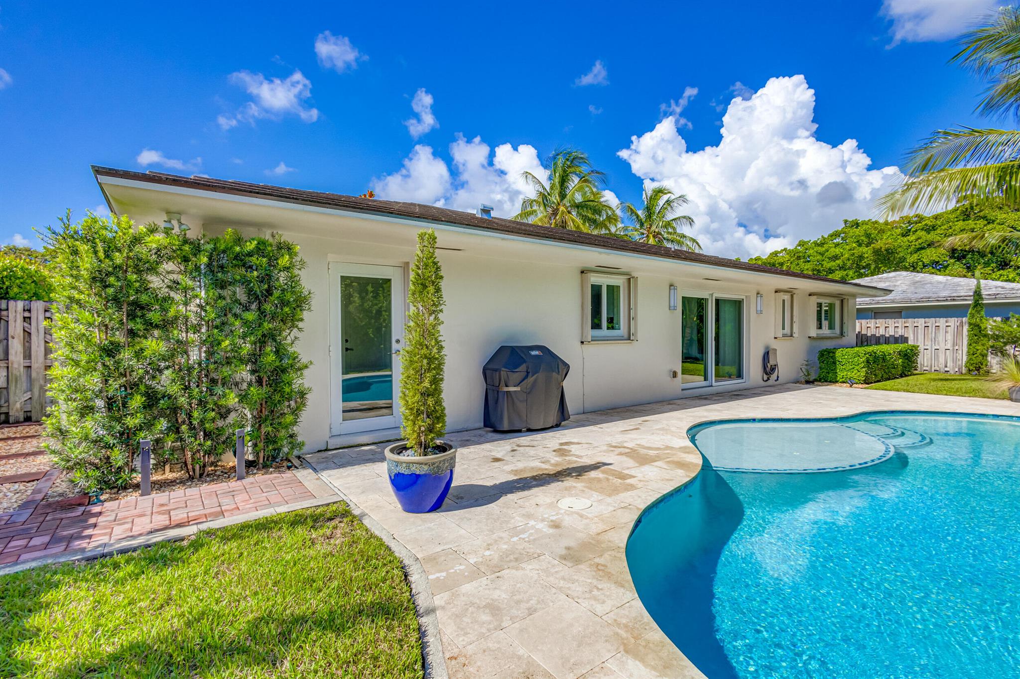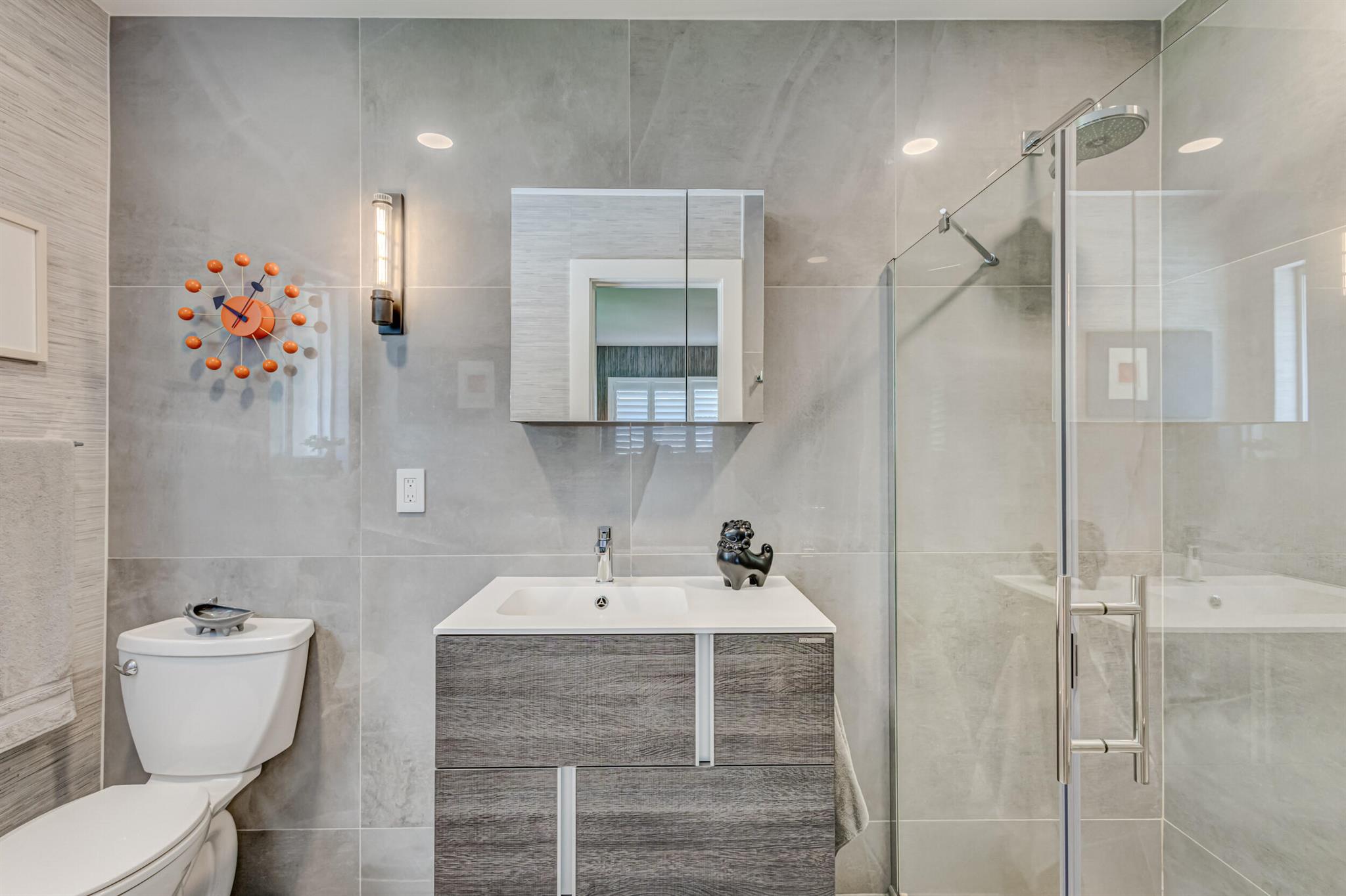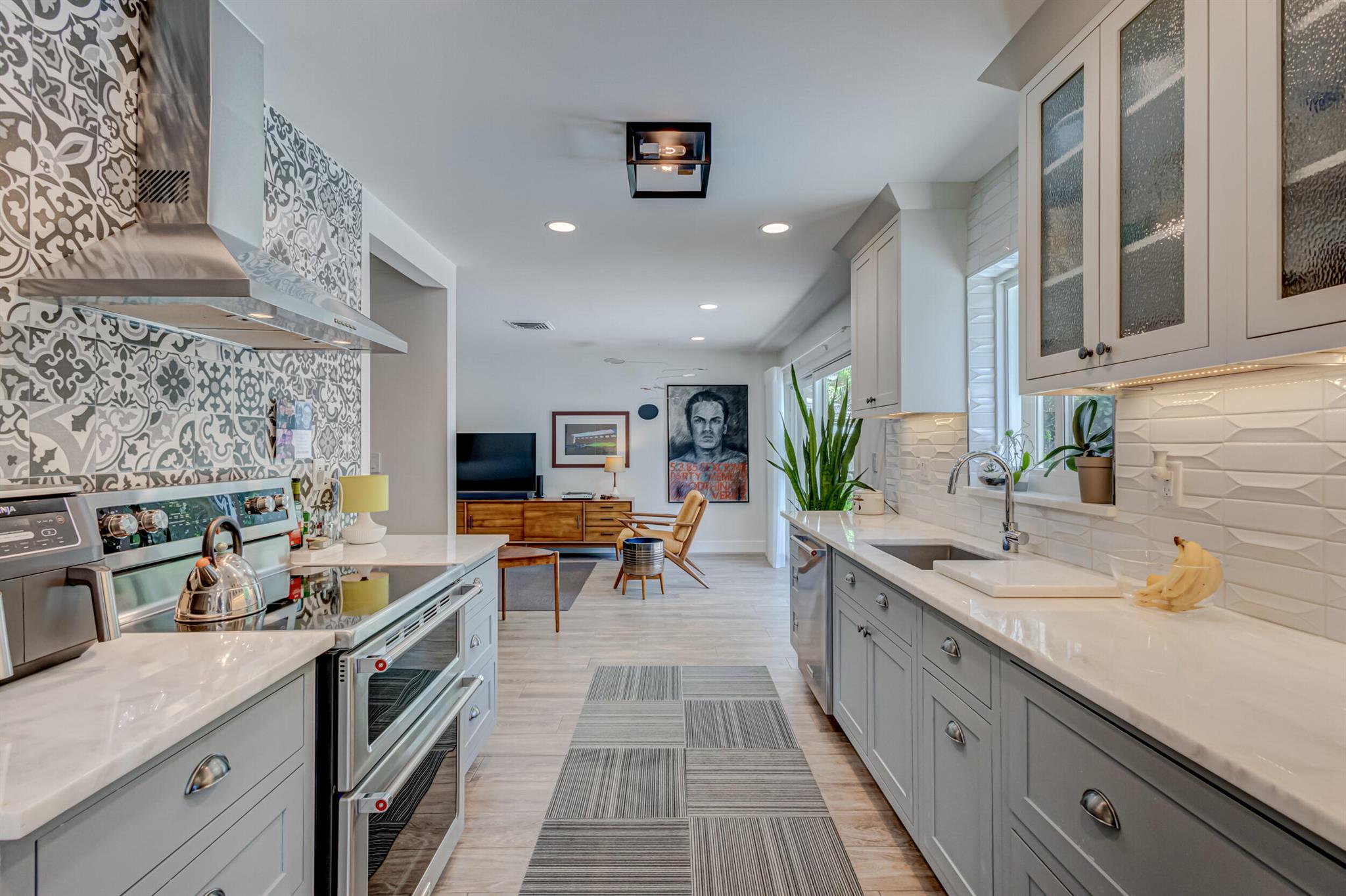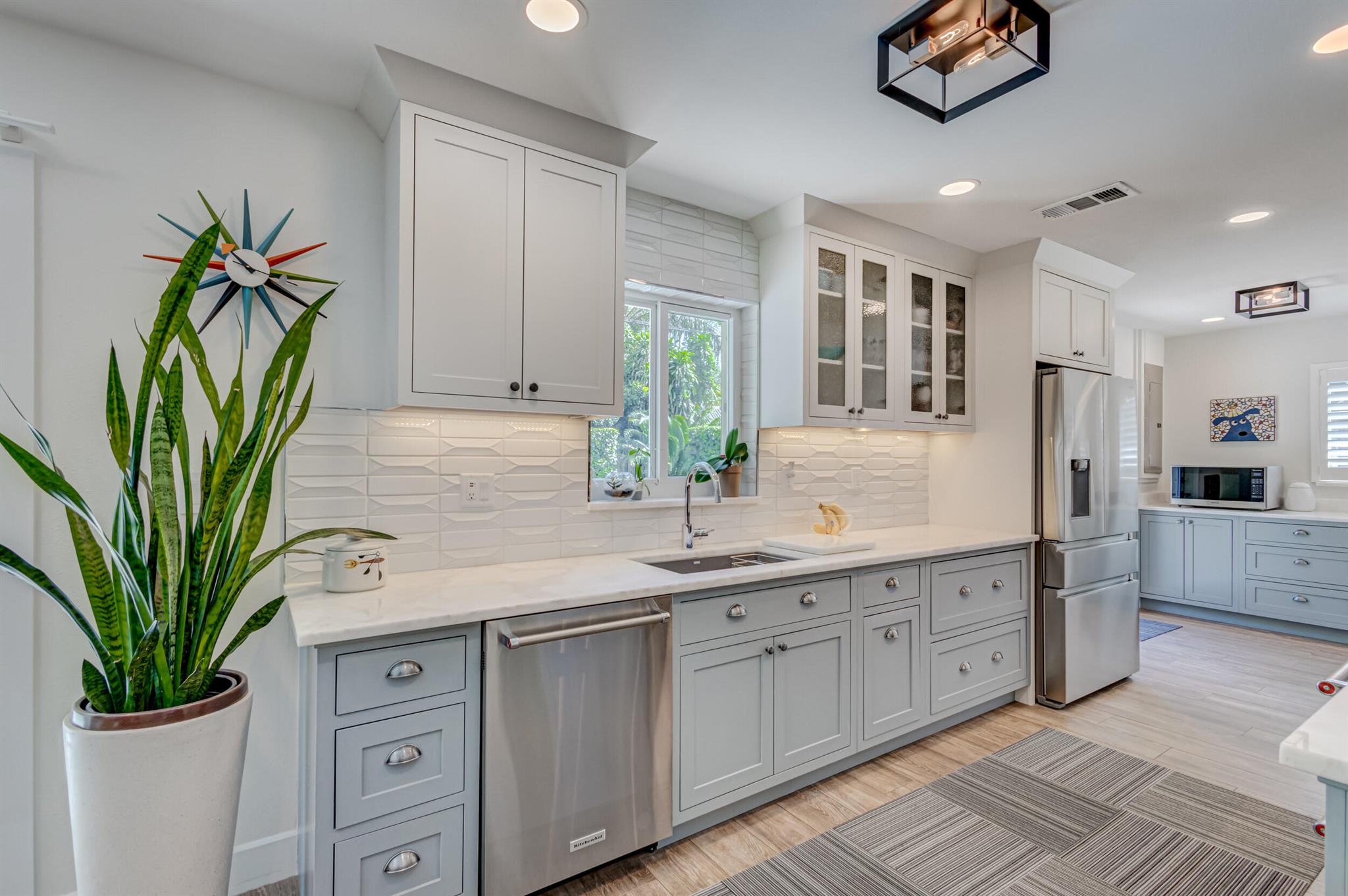 Newly renovated and superbly maintained 2-bedroom, 2-bath home in the highly desirable Hillcrest-Vedado Historic District in West Palm Beach. This home features luxury upgrades and features, including solid maple cabinetry and marble countertops in the kitchen, KitchenAid and Samsung appliances, modern baths with floor-to-ceiling tile, wood plank tile flooring throughout, solid wood shaker-style interior doors, designer lighting throughout, plantation shutters and custom window treatment, custom closet systems. Impact windows, plumbing, and electric were upgraded in 2017, concrete title roof installed in 2020, louver style clad garage door installed in 2021. A/C condenser and air handler replaced in 2023.