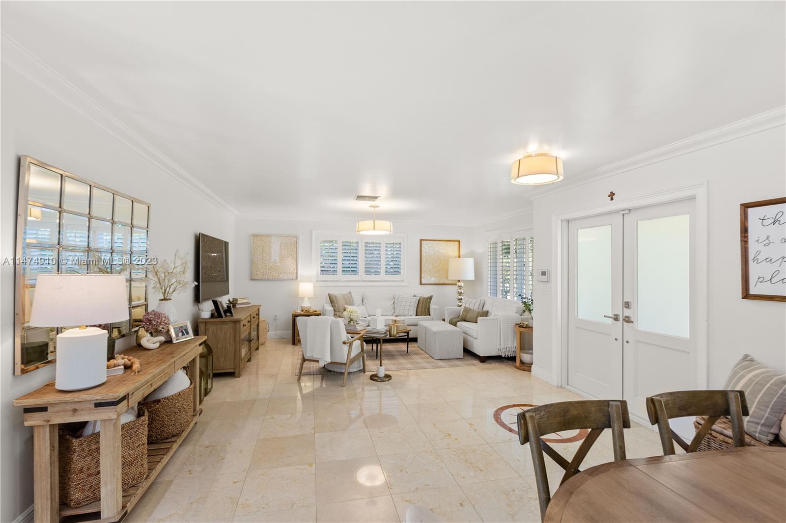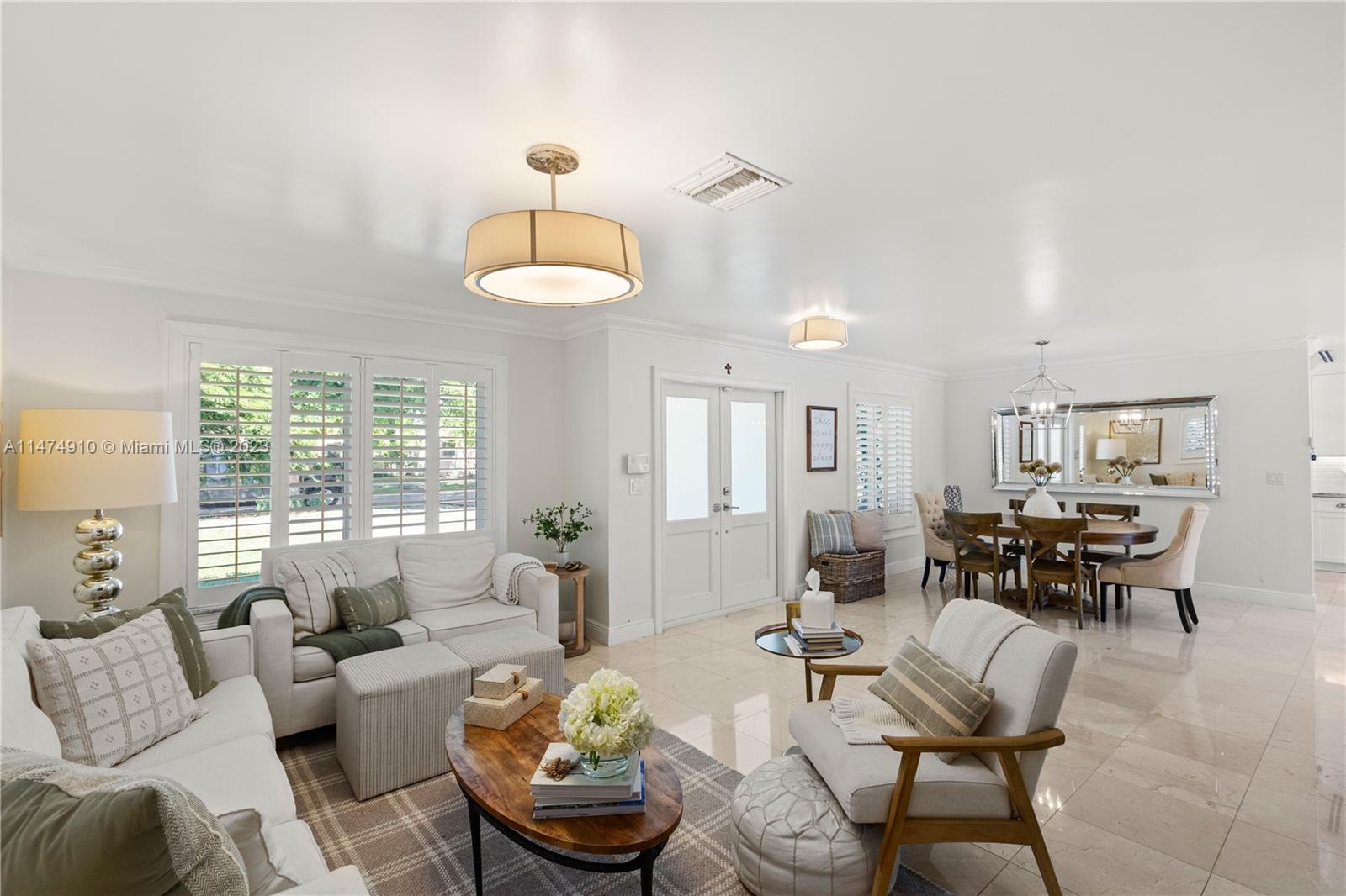 Beautiful 3-bedroom, 3-bath, updated Gables home w/amazing curb appeal. Open floor plan with dining room and living within view of the large kitchen with island. Large Master and bath, marble floors and plenty of natural light. This is a very inviting and comfortable home with a beautiful heated pool and plenty of room to entertain. It has a one car garage, indoor laundry and and impact windows and doors throughout. Centrally located in the heart of the Gables.