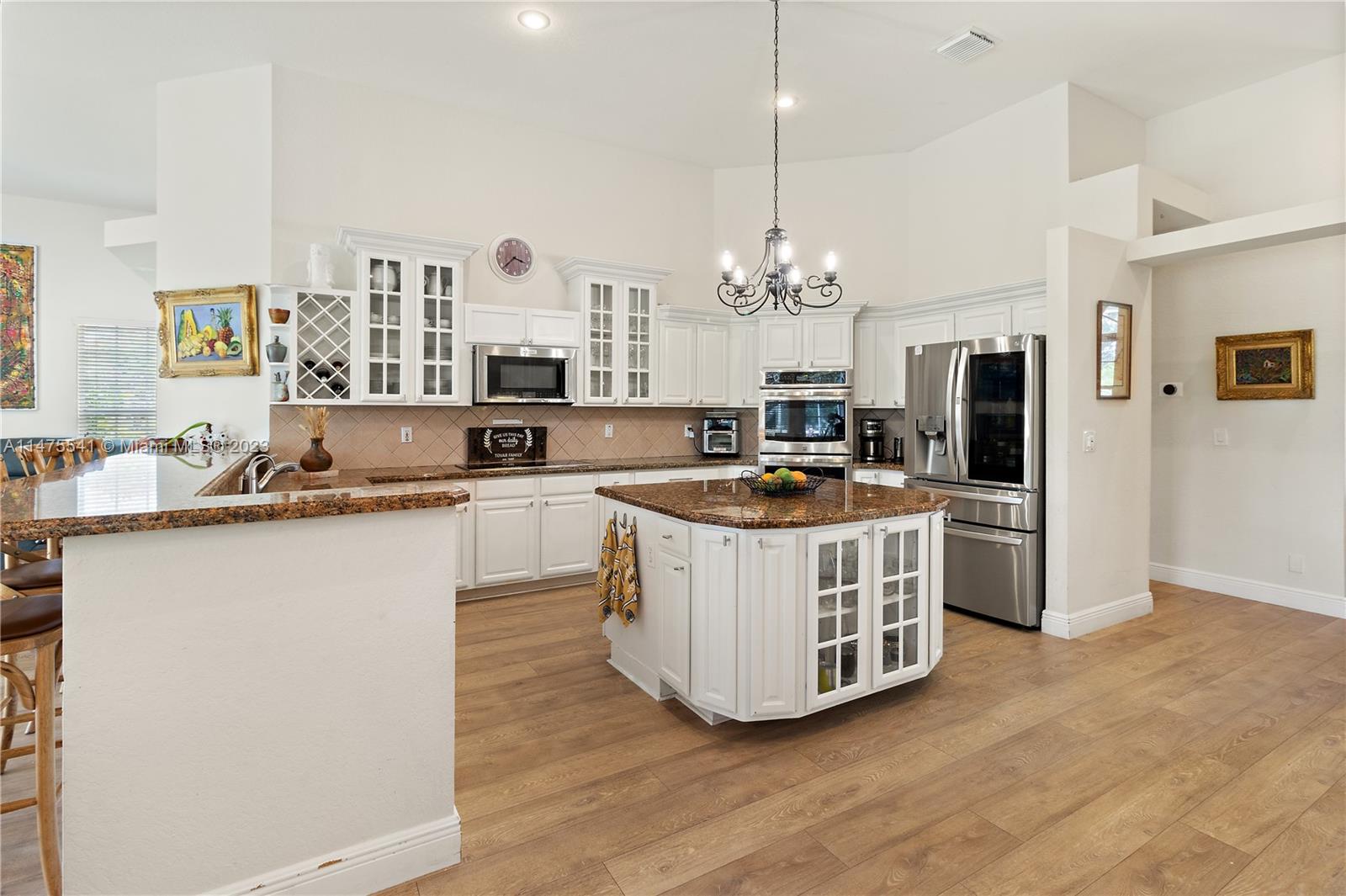 One of a kind property in the exclusive TRAILS of Pembroke Pines. Gorgeous upgraded Equestrian style home 4 Beds 4 Baths(incl. Jack and Jill) plus nanny/office room. Large Master Suite situated at opposite side of the house for privacy incl. deluxe bath w /jacuzzi, 2 walk-in closets & direct access to the resort style heated pool. High Ceilings, 3 separate ACs w/upgraded thermostat, central vacuum system, alarm, security cameras, French doors, wood floors large family room w/doble function chimney(gas & wood) large screened patio, eat in kitchen with walk-in pantry, doble oven, SS appliances granite countertop laundry room. 3 car garage w/plenty storage. Is nestled on an elevated private-pie shaped lot at the end of a cul-de-sac. Close to shipping, dinning and highways