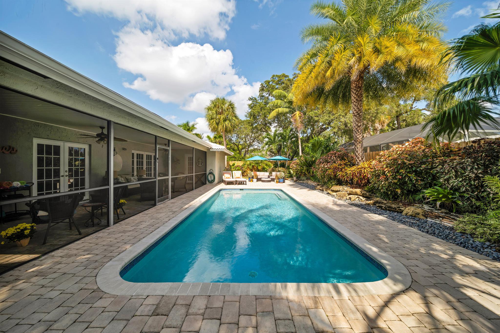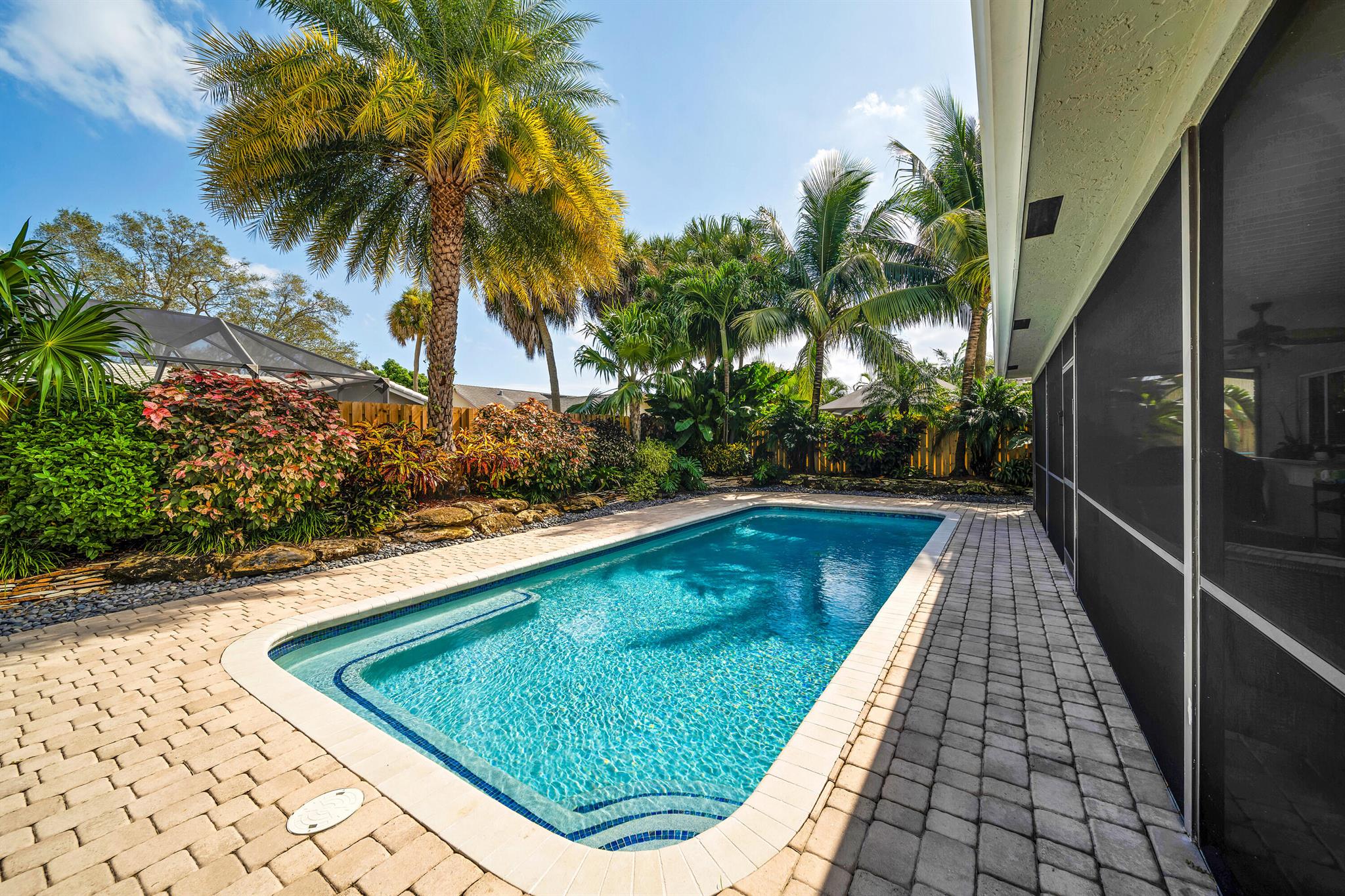 This 3/2 corner lot provides a slice of paradise in a highly sought after East Boca neighborhood. No HOA. Updated kitchen and bathrooms. New wooden fence encloses lush, tropical landscaping which surrounds the open air pool. Washer and Dryer inside. 2 car garage. Crown molding, tile throughout. Double oven in kitchen. Close proximity to I 95, Beach, great schools, and Sugar Sand Park. Chandelier in Primary Bedroom does not convey.