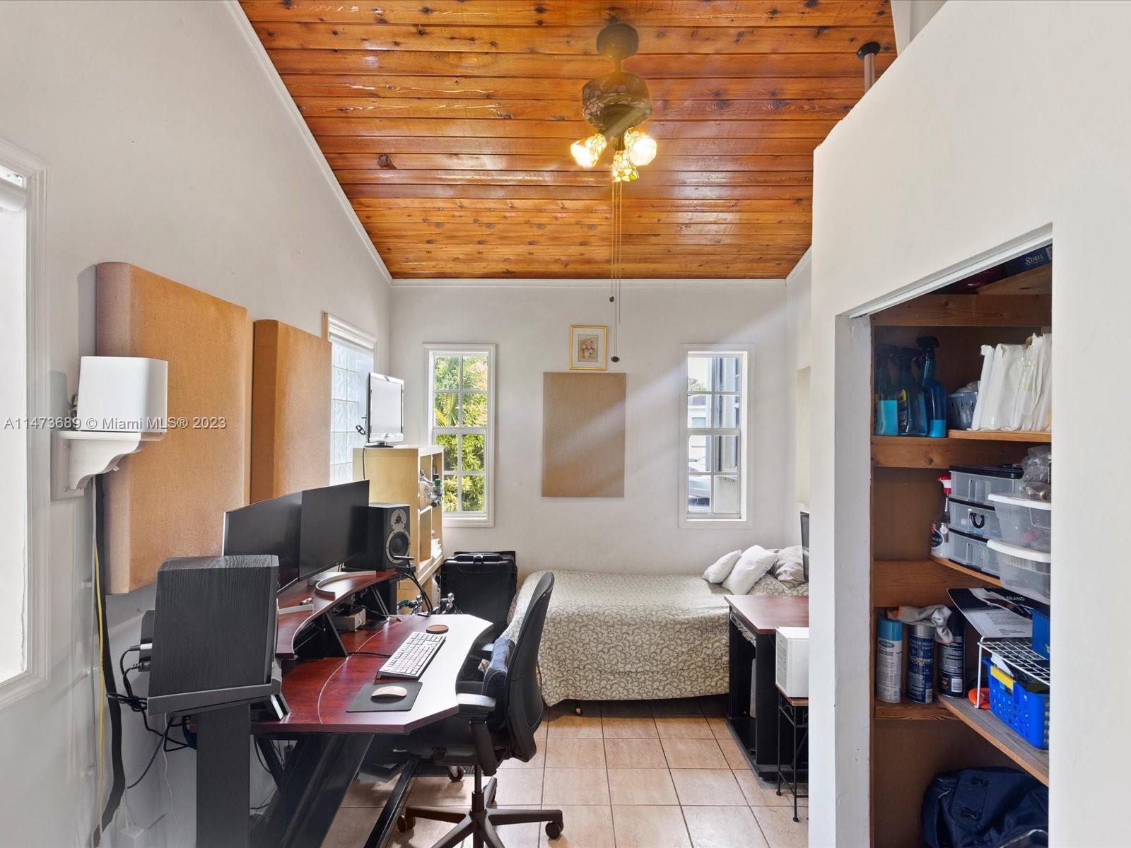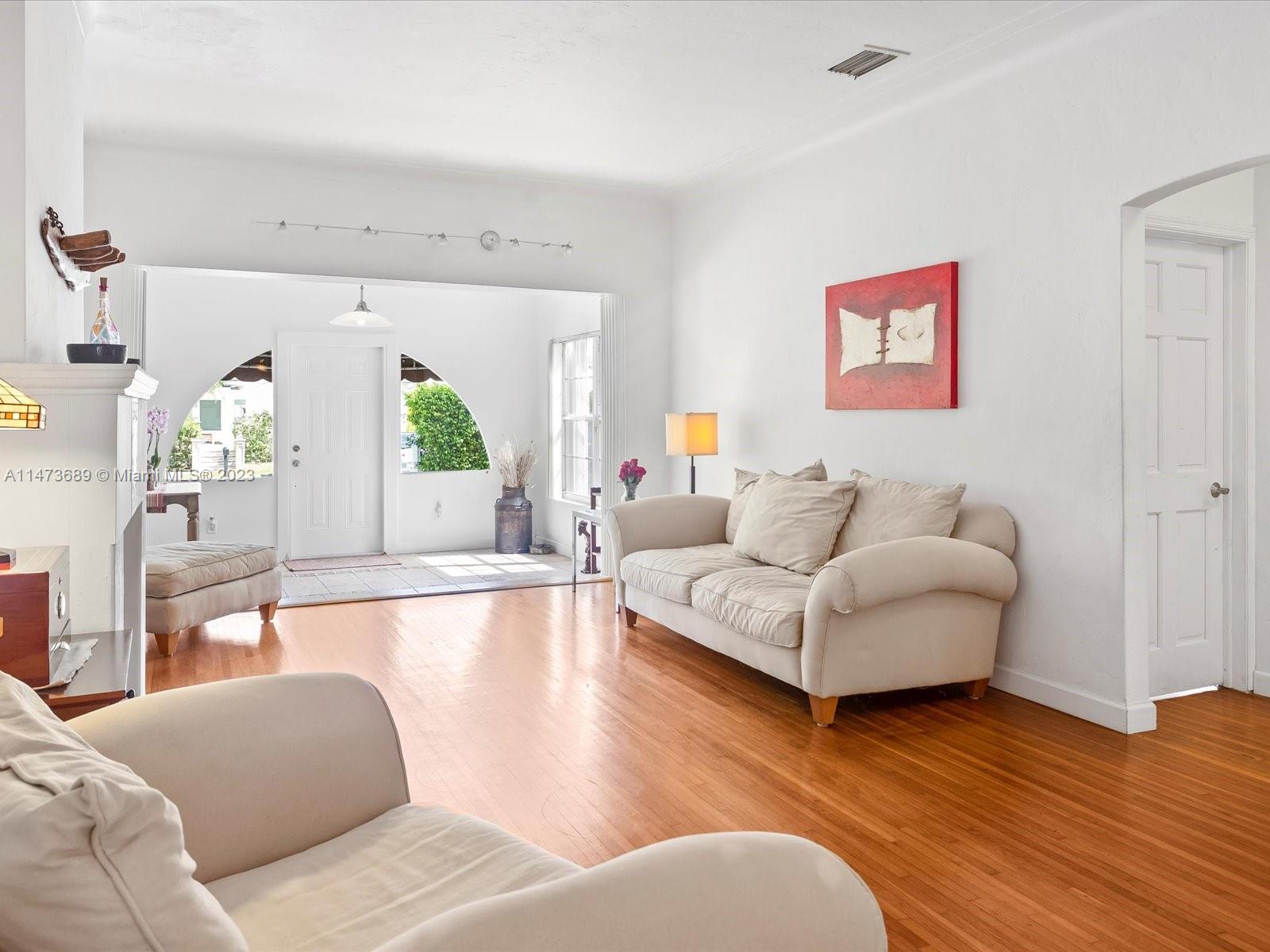 This architecturally unique gem is sure to captivate you from the moment you enter the sunlit foyer. Located in the Town of Surfside, this expansive home showcases a timeless charm with an original art deco fireplace, custom archways, high ceilings & original wood floors. There are 3 bedrooms, 2 bathrooms, an office that could be a 4th bedroom & a huge family room. The kitchen has a gas stove & granite counters. The aluminum/metal roof was installed in 2019 & all windows/doors have hurricane shutters. The private, fenced backyard has a large covered patio. Many renovations have been completed since 2005, including electrical, plumbing, gas water heater, both bathrooms & more. Walk to the beach, community center/pool, Bal Harbour Shops, dining, tennis. Zoned for A-rated Bay Harbor schools.