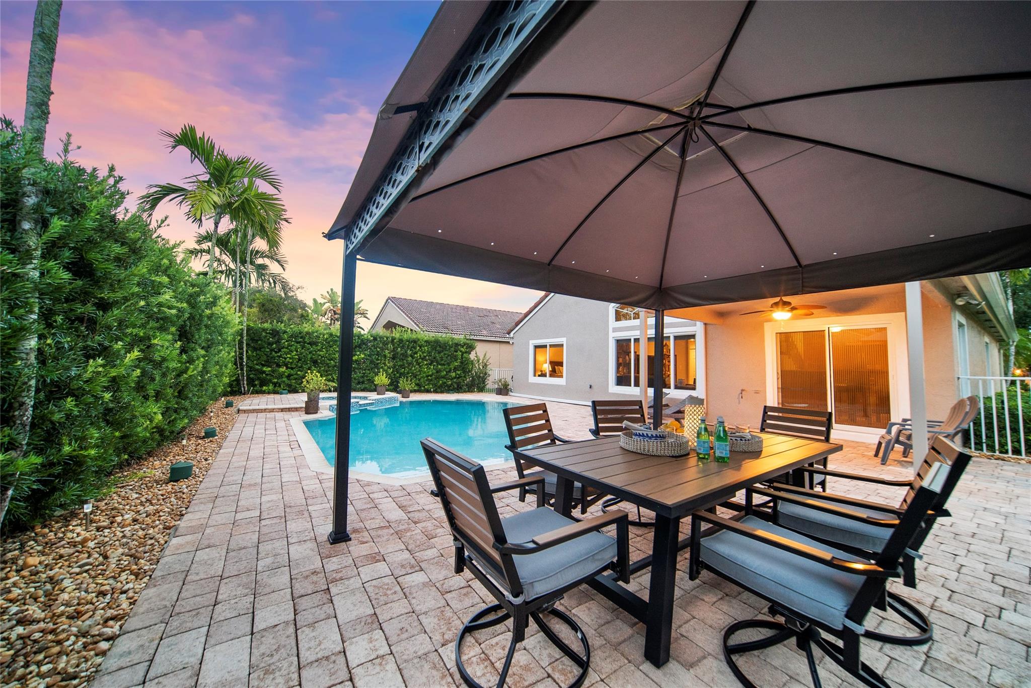 SPECTACULAR 4 BED, 2.5 BATH PEMBROKE FALLS POOL HOME. THIS OVERSIZED PREMIUM LOT IS BEAUTIFULLY LANDSCAPED W/GORGEOUS CURB APPEAL. FEATURES INCLUDE ALL IMPACT WINDOWS AND DOORS, 2018 ROOF, 2018 AC, NEW POOL HEATER, SOARING CEILINGS. UPDATED KITCHEN W WOOD CABINETS, GRANITE COUNTER TOPS, STAINLESS STEEL APPLIANCES & ISLAND, RENOVATED BATHROOMS, UPGRADED STAIR RAIL, PRIMARY ROOM ON 1ST FLOOR W REMODELED SPA-LIKE BATH. COMPLETELY PRIVATE FENCED IN BACKYARD W PERGOLA, REFRESHING POOL & SPA. & GAS GENERATOR HOOKUP. MOVE RIGHT IN! THIS HOME HAS IT ALL PEMBROKE FALLS HAS 4 MANNED GATES, GORGEOUS CLUBHOUSE, EVENT ROOM, LARGE POOL W LAP SECTION, SPA, GYM, DANCE STUDIO, TOT LOT, TENNIS COURTS. HOA FEE COVERS CABLE & HIGH SPEED INTERNET. GREAT LOCATION W EASY ACCESS TO 75 & SHOPS AT PEMBROKE GARDENS.
