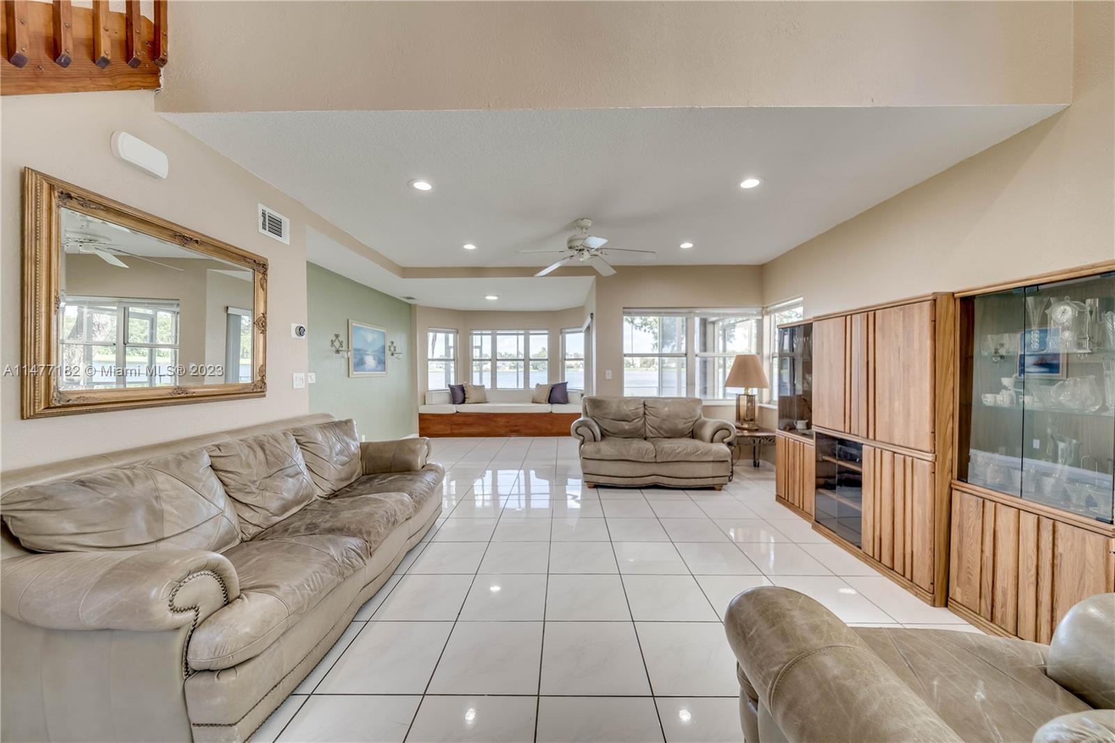 Enjoy sunsets over the water... South Florida is calling. Tranquil water views from this lakefront home set the tone for the relaxing lifestyle you seek. With three spacious bedrooms and a fourth to be used as loft or office space. Relax on the 12x40 lanai with soft breezes and lighted fans to enjoy sunsets by the water Lush backyard boasts a lake-fed sprinkler system for tropical green grass and landscaping. In addition, this property offers a monitored alarm system, perimeter security lights and motion detecting lighting. The roof is just five years old and the property offers a hurricane rated front door, as well as a hurricane rated insulated garage door, storm panels and hardware. The exterior of this home has been recently painted and the interior has been freshened up as well.