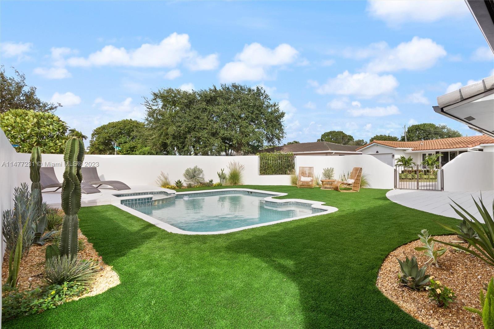 Palm Desert mid-century modern oasis! Built from the shell in 2023, this immaculate home boasts a 4 bedrooms / 3 bathrooms split layout floor plan. Step inside and be greeted by the spacious living areas, flooded with natural light and adorned with sleek finishes. The heart of this home is the chef's kitchen, featuring top-of-the-line appliances and an abundance of storage space, making it a dream come true for culinary enthusiasts. Indulge in outdoor living at its finest with a pool and hot tub gracing the front yard, creating an idyllic setting for relaxation and entertaining guests. Located within walking distance to some of the best schools in the state, this home offers an ideal setting for families seeking a quality education for their children.