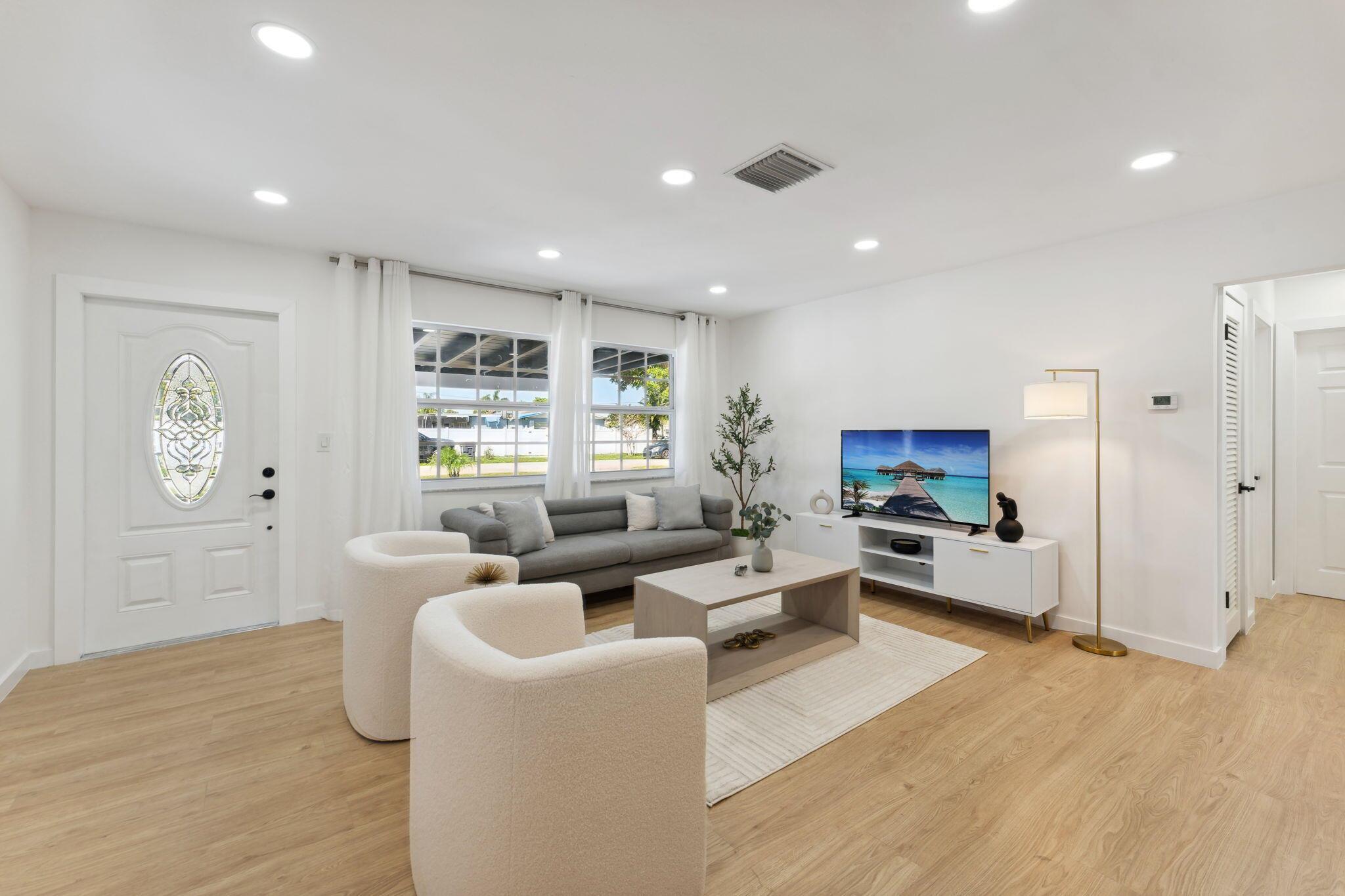 Discover modern comfort in this fully remodeled 4-bedroom, 3-bathroom haven in the coveted LAKE CLARKE SHORES area. Located just 15 MINUTES FROM THE BEACH, this property boasts all-new equipment, from AC units to stainless steel appliances, ensuring you can move in hassle-free. It has 2 MASTER SUITES, whether you're seeking an AIRBNB INVESTMENT or a family residence, this home offers versatility and style. The existing BRAND-NEW FURNITURE is negotiable. You'll enjoy the freedom of NO HOA and the convenience of TOP-RATED SCHOOLS in close proximity. Just 10 MINUTES from Palm Beach International Airport. It offers ample space for your recreational needs. Whether you dream of a POOL, own an RV, boat, or want to build an efficiency for EXTRA INCOME, this property provides endless possibilities