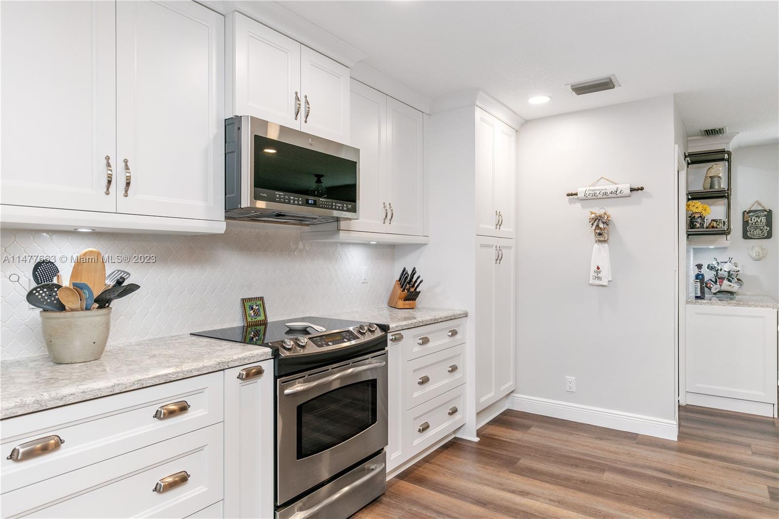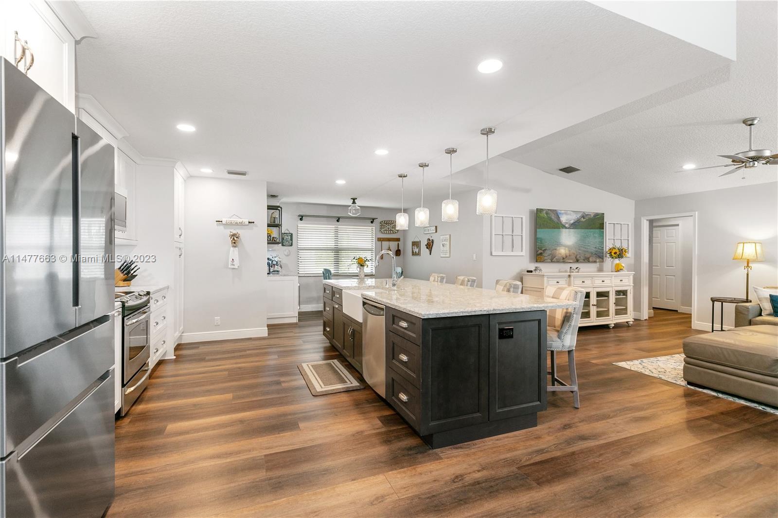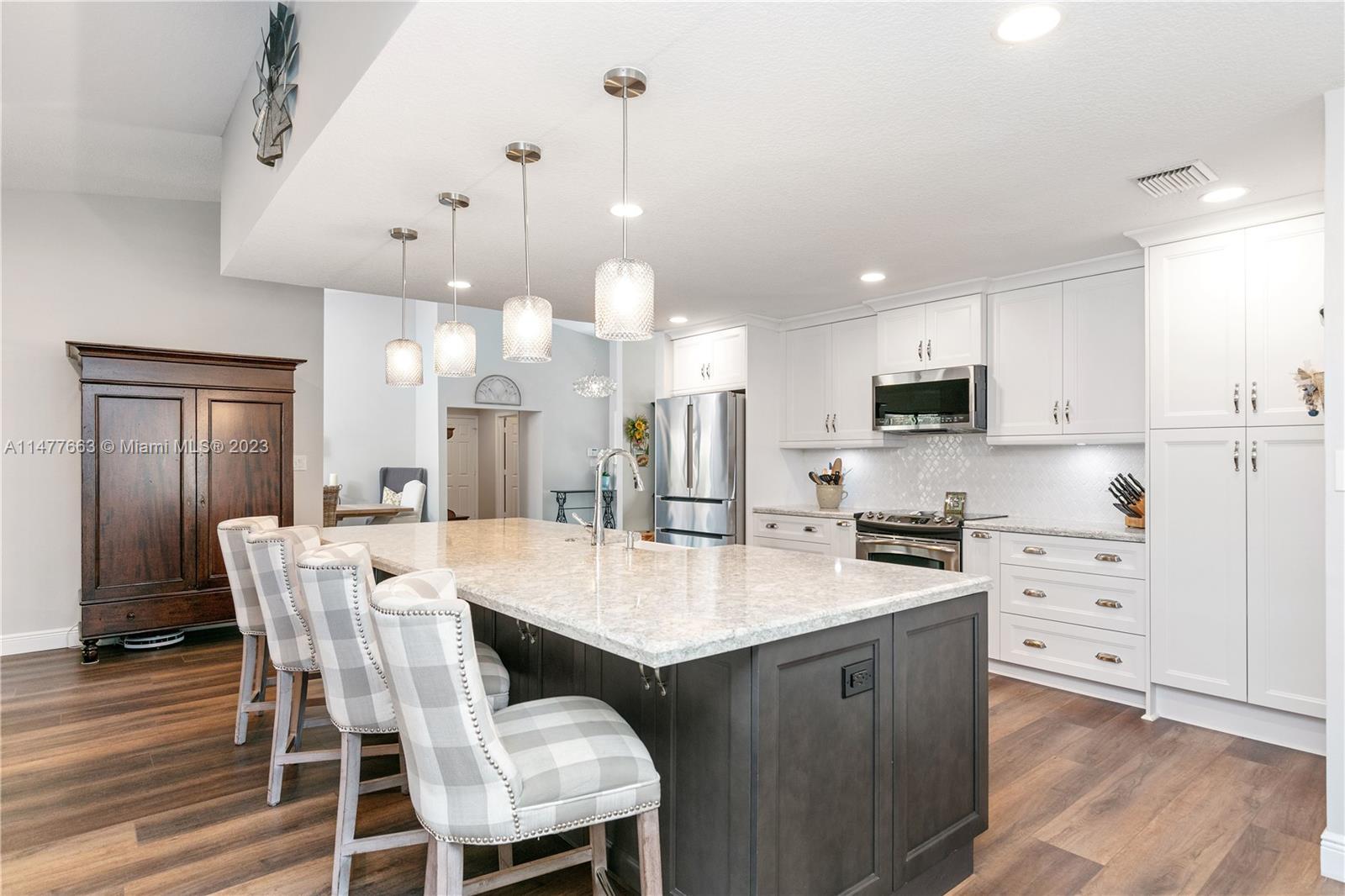 Just reduced!! Coral Springs-desirable West Glen home. Large 4/2.5 with a 2 car garage and circular driveway. Fully renovated after 2019. Redesigned and remodeled kitchen, white cabinets, quartz counters with a 10 foot island and room for 4+ chairs!! Custom built separate wine and coffee station located by the breakfast area. Gorgeous new primary bathroom with extra storage and custom details. NO popcorn ceilings, luxurious vinyl plank flooring with new 5" baseboards. Lush comfort carpet in the primary bedroom. Almost new AC, microwave, washer and dryer. Hurricane shutters and hurricane impact glass covering the whole house for a discount on your Insurance. New lighting w/ new electrical. Located on over a 1/4 acre lot, new fence & pretty canal. Coral Springs schools. It's a must see!!