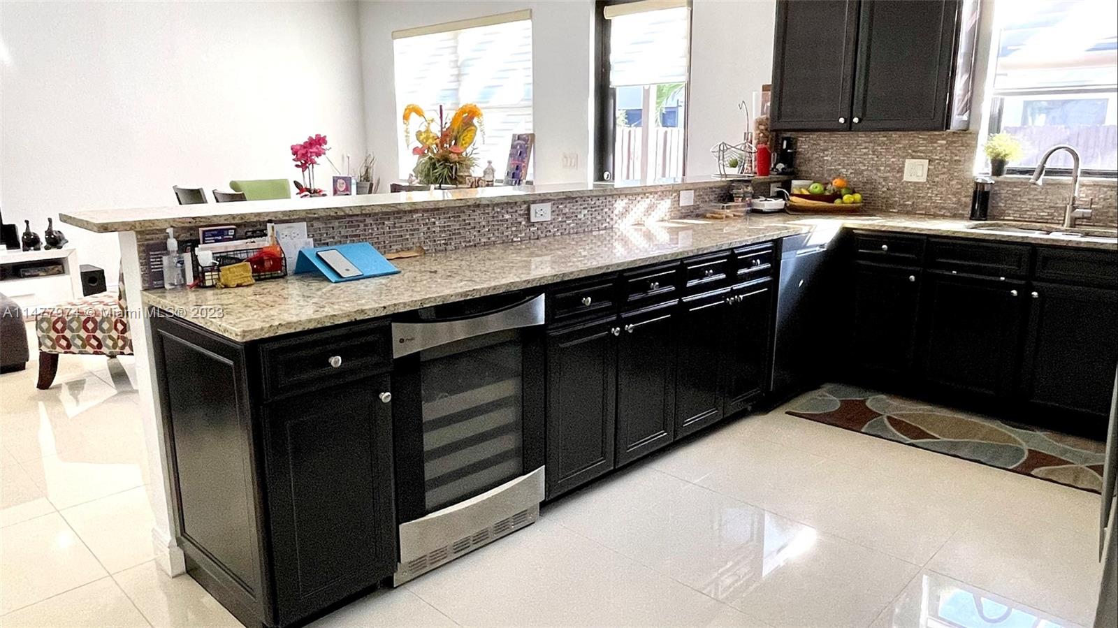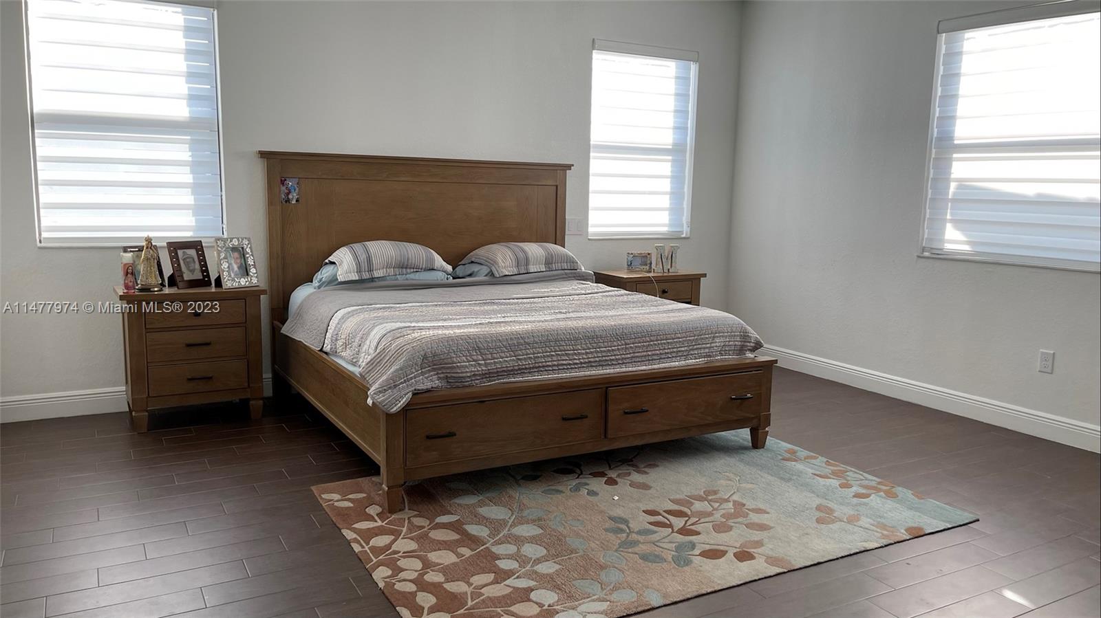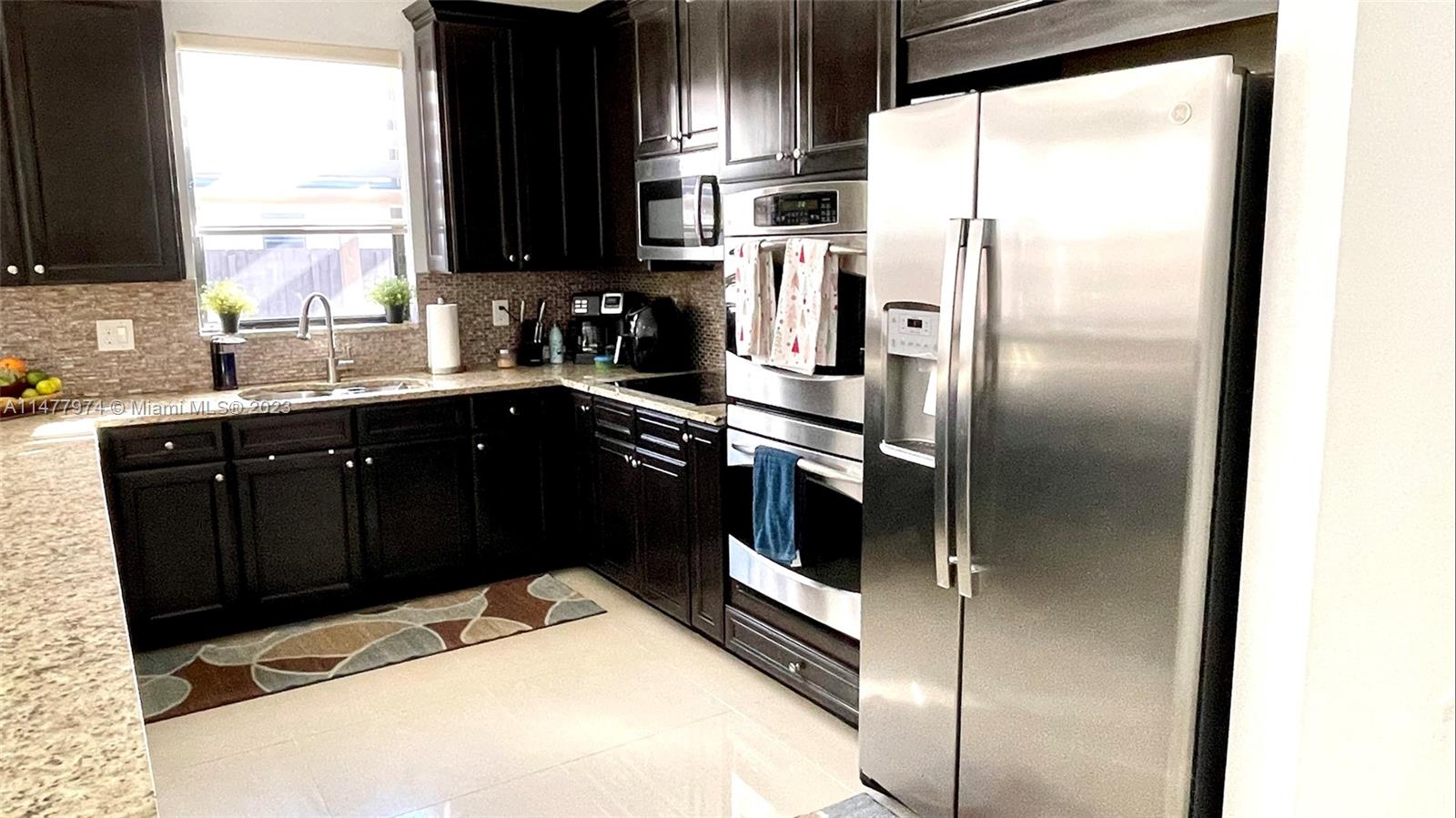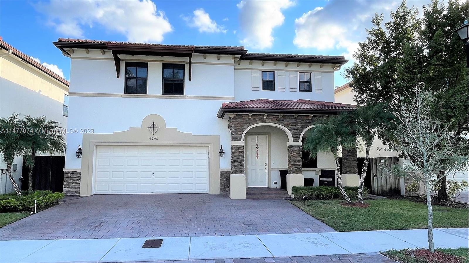 Welcome your family to this elegant and cozy 4-beds, 3.5 baths home in the family-oriented Grand Bay Presidential Estates, a top-three best-kept community in Doral. Experience spacious yet easy-to-maintain living, with a generous kitchen and family room, ss appliances, and granite countertops. Enjoy a formal dining area that can be transformed into a fifth bedroom, kids' playroom, or stunning home office. Porcelanato flooring and wood-style tiles on the upper level. The 5,000 Sqft lot provides a spacious terrace/patio with room for a pool. All beds are sizeable, with an indulgent Grand Master Suite. Delight in the tranquil sights and sounds of the lakefront porch's water fountain. 2 car covered garage, driveway parking for 5 vehicles, and abundant guest parking in the front.