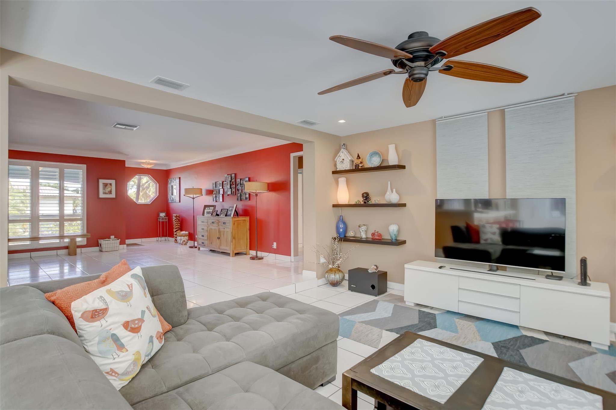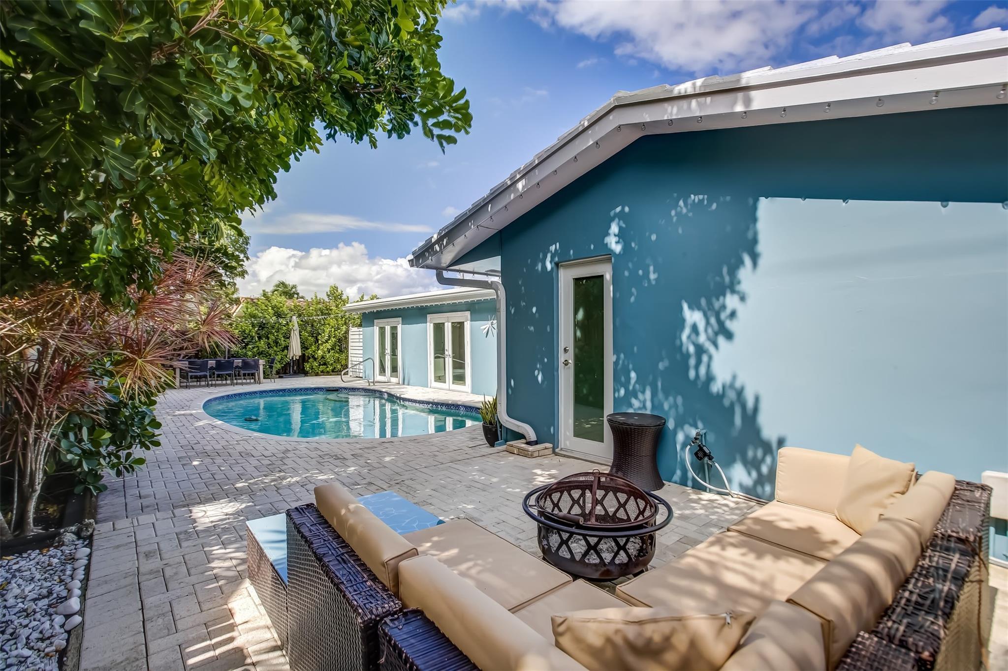 Charming family home in the heart of Imperial Point. Spacious open floor plan with 3 bedrooms and 2 baths. Perfect for entertaining with over 2,100 sq ft with multiple living areas, formal dining area & 500+ sq ft Florida Room. Kitchen offers updated cabinetry, stainless steel appliances & large serving counter & bar. Two sets of French doors offer an abundance of natural light & lead to your tropical oasis of pool area & backyard with lush landscaping offering privacy. Master suite with cabana bath. All impact windows & doors throughout. Large circular brick paver driveway. Oversized corner lot within 2 miles to the beach. Prime location with sidewalk lined street perfect for kids. Highly rated McNab elementary district & very close proximity to Pine Crest, Westminster & Cardinal Gibbons.