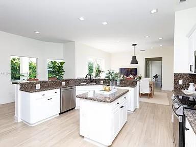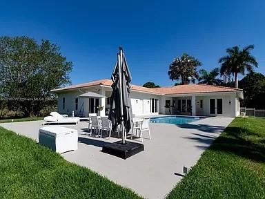 Must see! Modern urban ranch with pool. Fully renovated, no expense spared. 4/3.5 with family room. Large bonus room would make a 5th BR, game room, gym, theater or large office. Looks like a model home. No neighbors, lake on one side and field on other side. One-acre with eight Mango and one Lychee Nut tree. 35 minutes from Miami. Private road with only two homes. Private gate entry an option. Excellent sought-after school. Restaurants, Wholefoods, Publix, Home Depot are within 10 minutes. Close to Pembroke Pines, Weston and Broward College. Master en-suite has it all. Large electrical tailored window coverings, two large closets, luxury bath artistic tub, separate toilet + bidet and Italian Carrara marble shower and floors. Amazing floor plan, open.