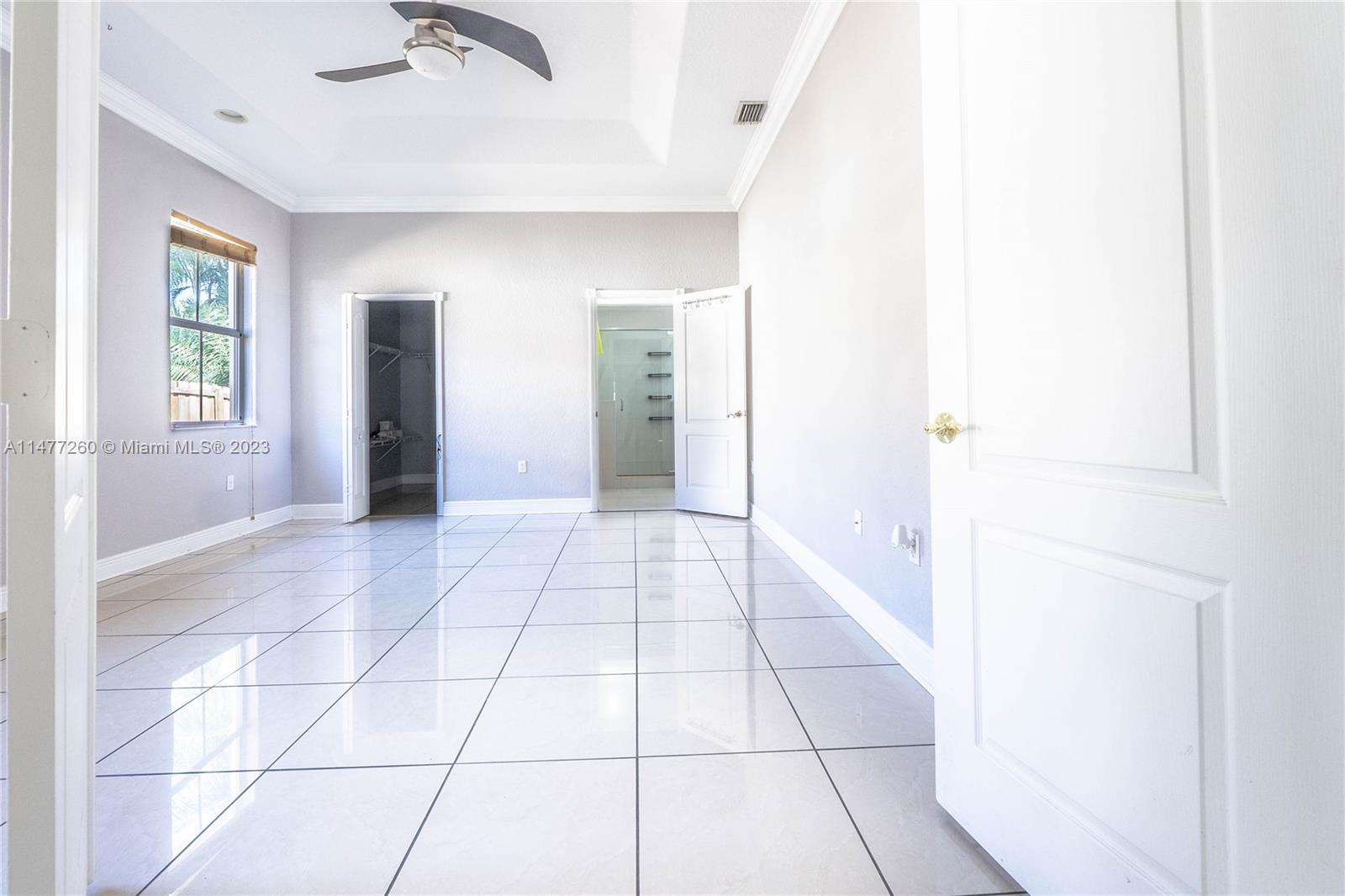 Remarkable single family home featuring 3 bedrooms,2 bathrooms,2 car garage and pool in the highly sought after community of West Lakes Estates in Miami Lakes.Large lot of over 8000 sq ft and space to store a boat or recreational vehicle. Large beautiful yard that boast a large pool, lush landscaping and beautiful palm trees. Interior offers tiled floors throughout, recent paint job, crown molding, large kitchen with stainless steel appliances, large master bedroom with large master bathroom and even a cabana bathroom. Community offers a beautiful lakefront park with great views of lakefront homes while resting on park benches. Very low yearly HOA fee with few restrictions. Very close to great charter and public schools, highways and shopping centers. Aggressive pricing for a quick sale!