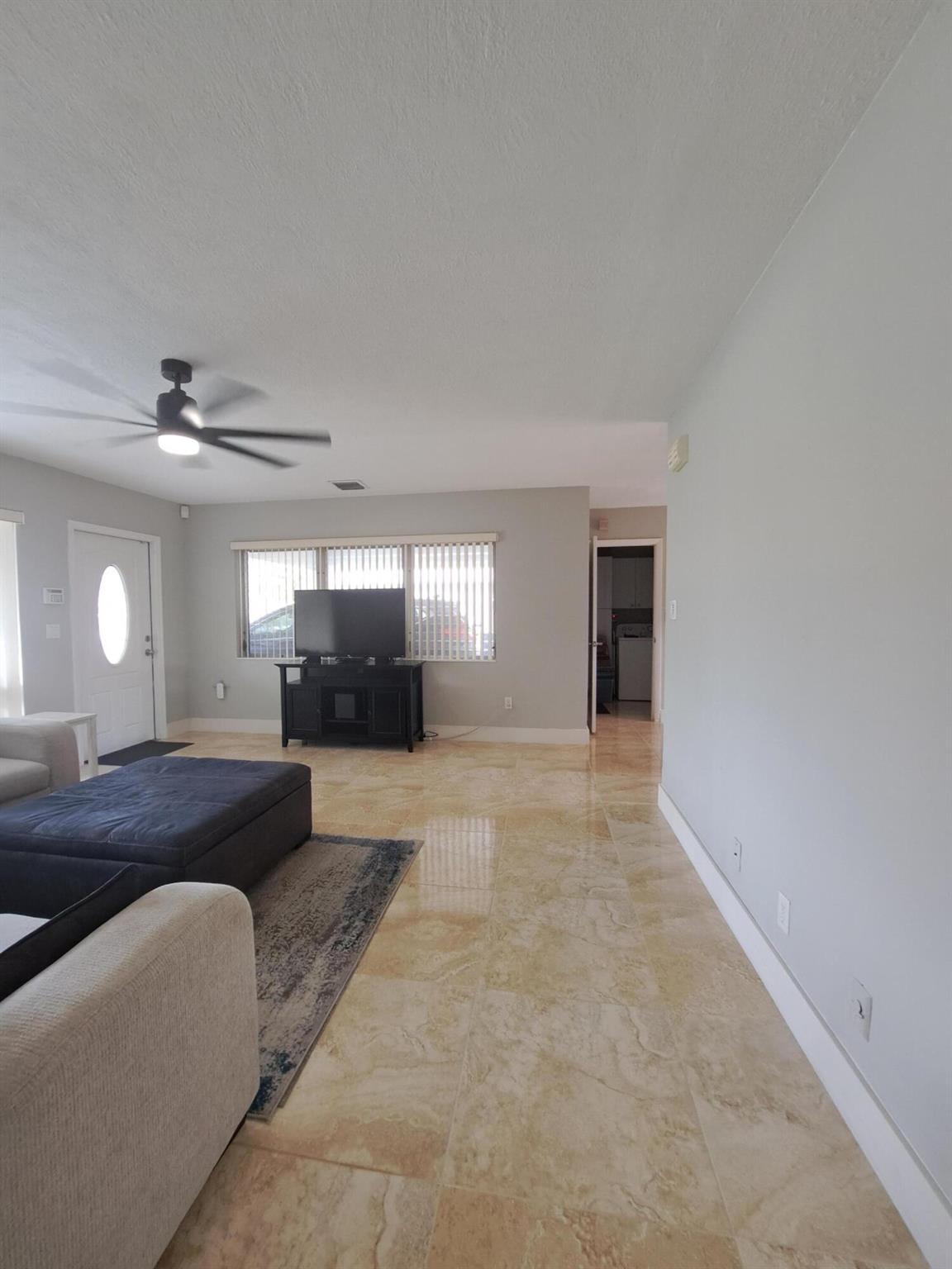 Garden Isles is a wonderful East Pompano waterfront neighborhood.2 miles to the beach.Close to shopping, restaurants and 95.Brand new 24 inch porcelain tile throughout.Kitchen boasts granite counters and stainless steel appliances with a brand new french door refrigerator.New Ceiling fans in bedrooms and living room.New clothes dryer and a brand new tankless Gas water heater.