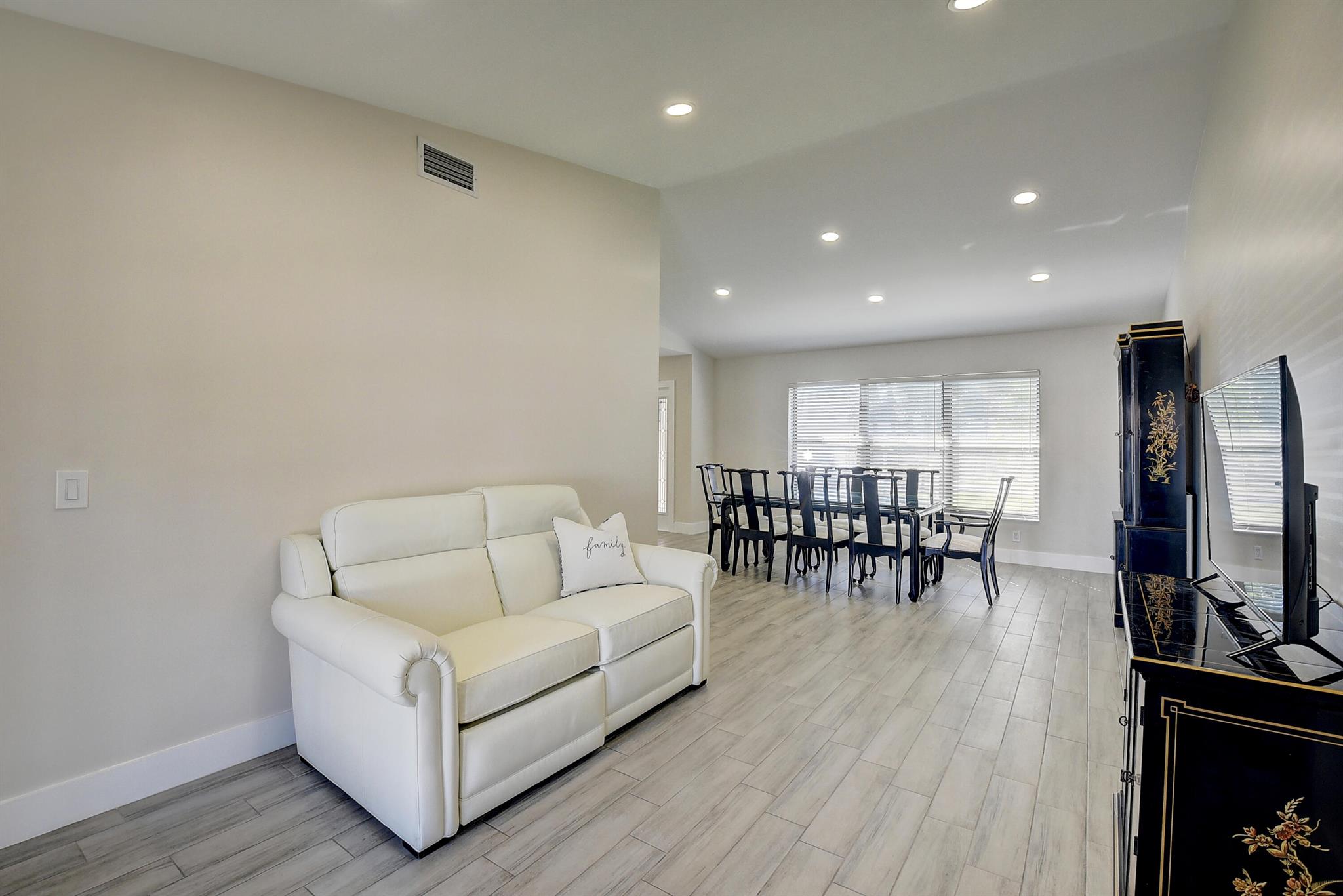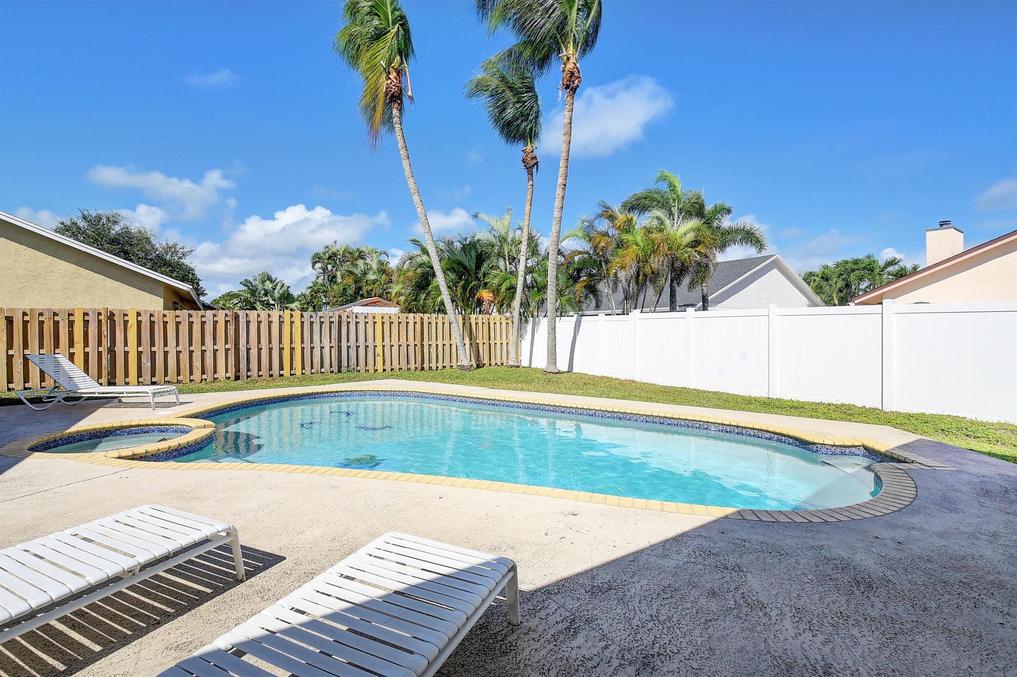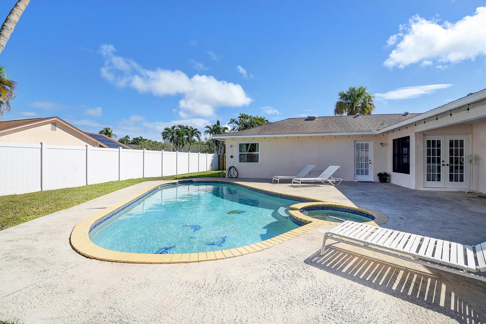 Beautiful 4/2 POOL/SPA home in highly desirable Pheasant Walk. Recently remodeled kitchen with white shaker cabinets, quartz countertops and 9ft island open to family room with beautiful electric fireplace feature. Floors recently redone with modern tile, new trim and baseboards. Three of four bedrooms have walk-in-closets, no popcorn ceiling. Formal dining and living room feature vaulted ceilings with new recessed LED lighting throughout home. Split floor plan, cabana bathroom. Spacious patio with pool, perfect for a relaxing family evening, or entertaining friends. Great family neighborhood, No membership fees, very low HOA fees, A-rated schools, A MUST SEE. This home is designed for comfortable family living. With plenty of space for both indoor and outdoor activities.