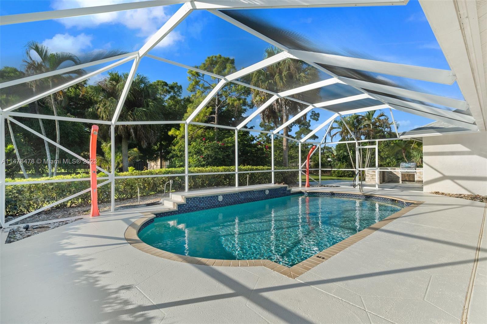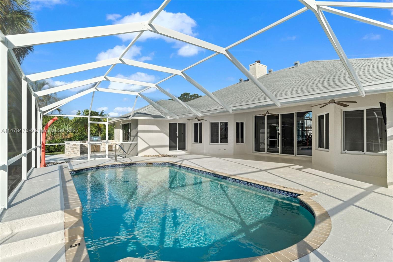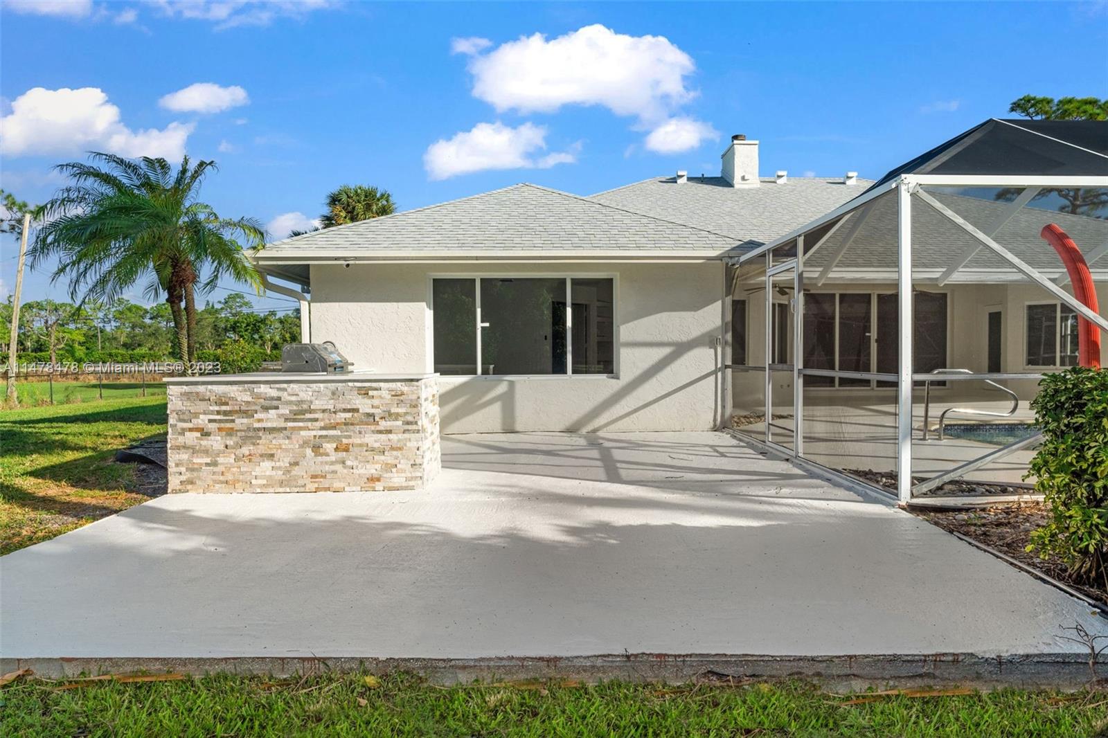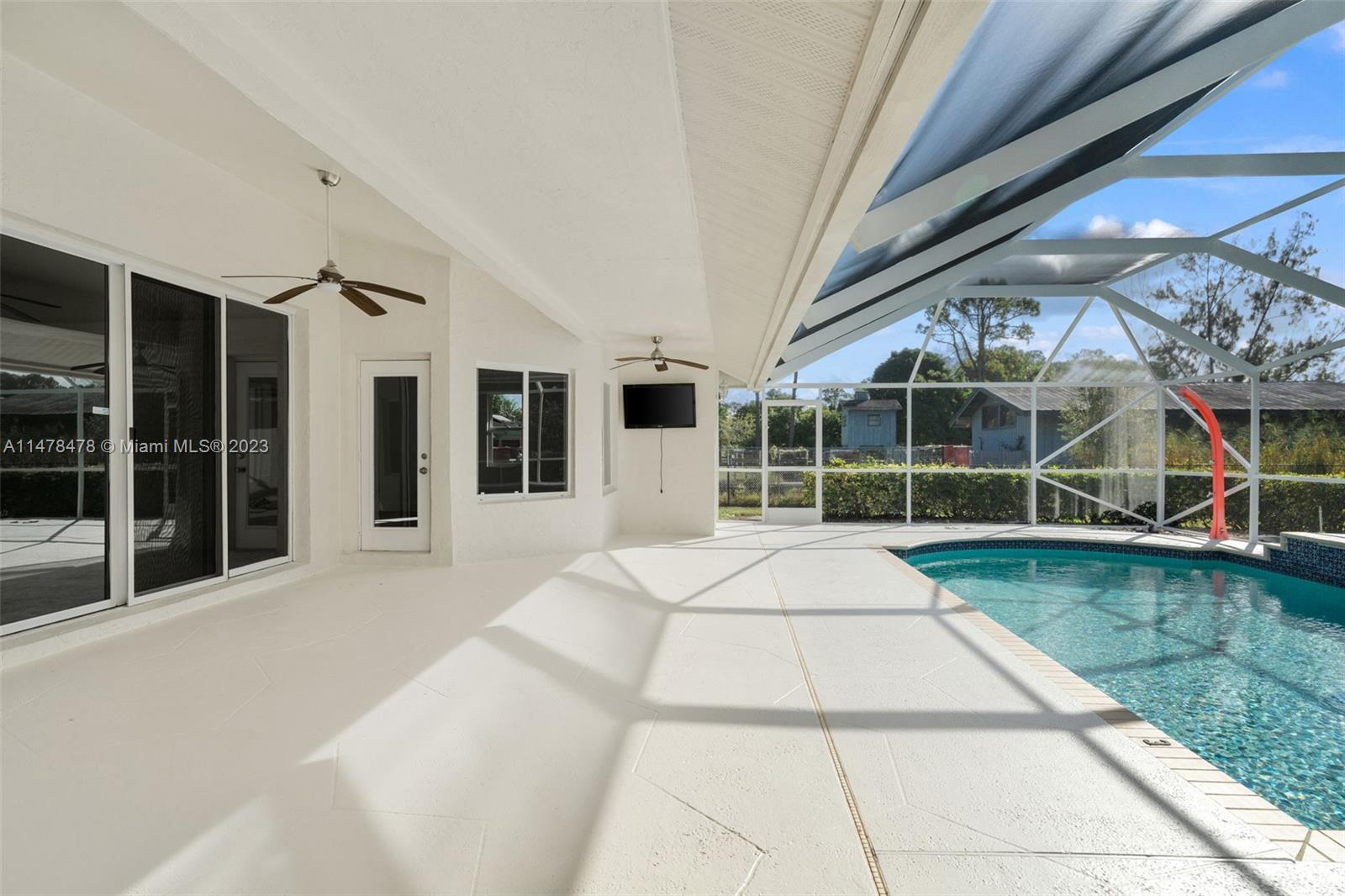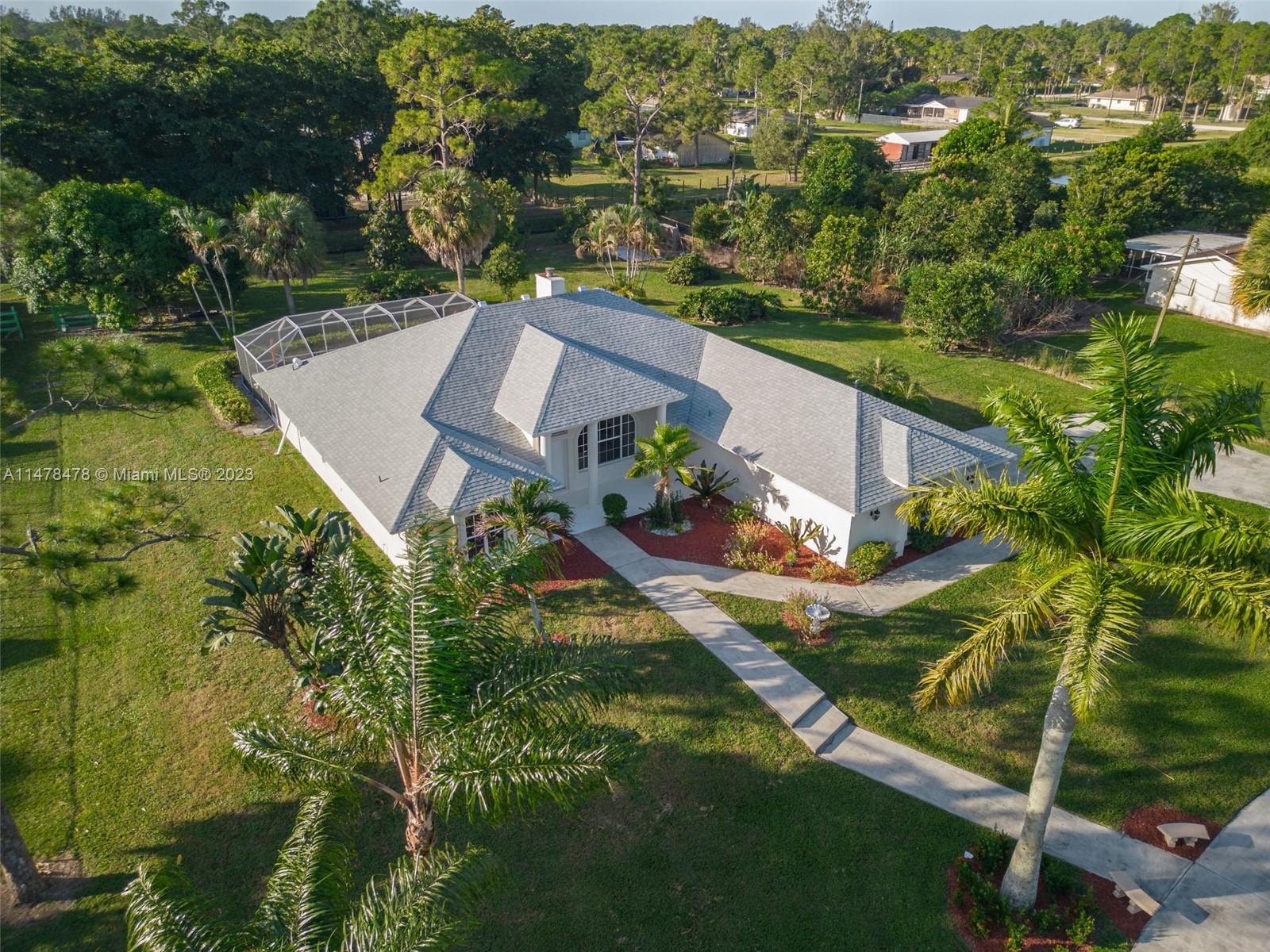 ALL NEW! This fully renovated home has everything NEW: NEW roof, NEW floors, NEW kitchen, NEW countertops, NEW stainless steel appliances, NEW bathroom cabinets, NEW mirrors, NEW flooring, NEW light fixtures, NEW garage doors! Freshly painted inside-out. Built in 1997 this one-story home sits on a fully fenced 1.25-acre lot with two motorized gates and offers a great floor plan with 3 bedrooms, a bonus den/office, 2 1/2 bathrooms, formal dining room with fireplace, living room, family room, private pool with an enclosed screen and 2 car garage. Long circular driveway, lots of room for parking cars, boats, and RV's.