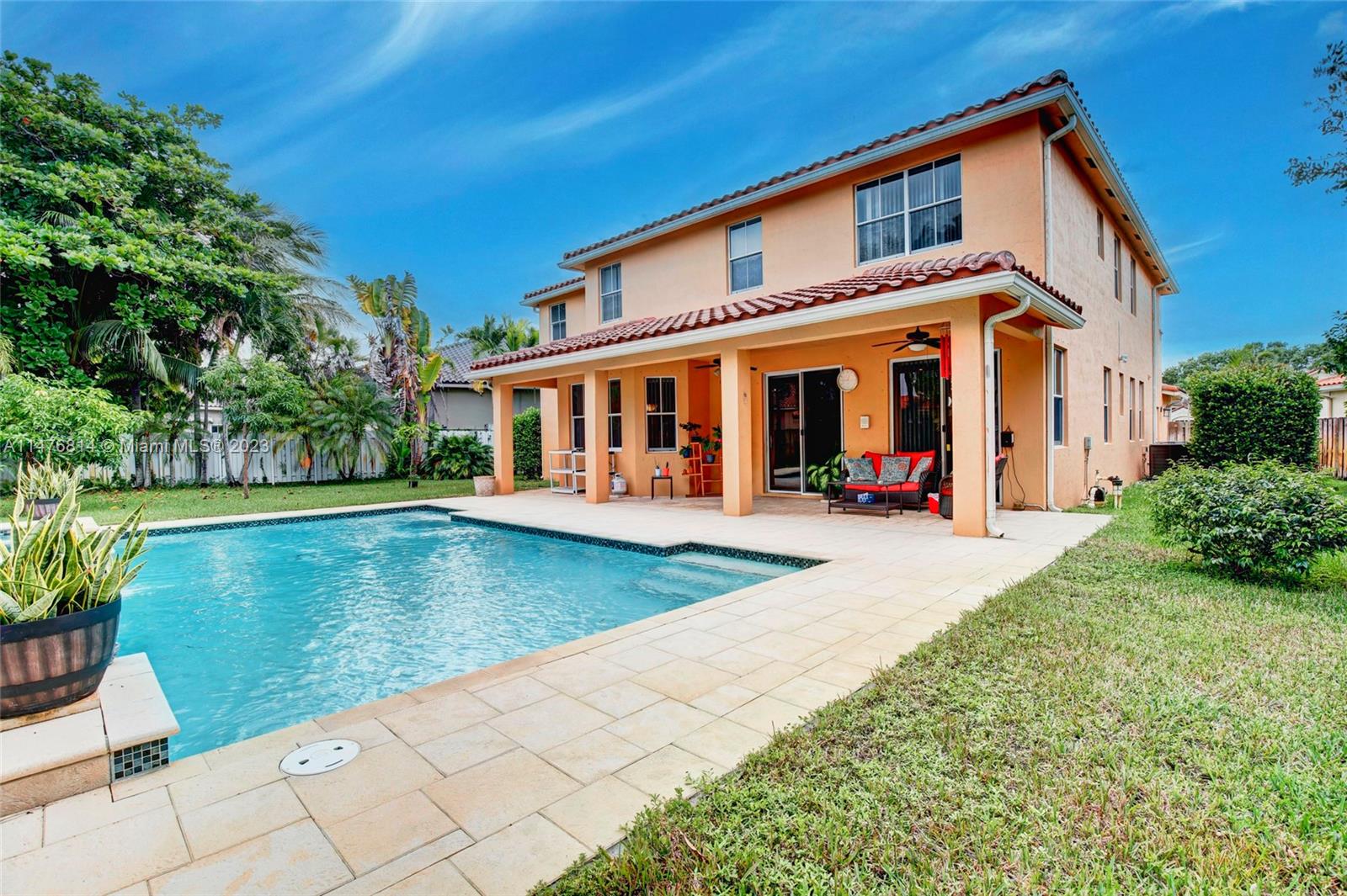 Beautiful 5 bedroom 4 bath home w/ almost 3700' sq ft under air in guard gated community of Nautica! Premier oversized pie shaped lot located on a cul-de-sac! Kitchen features dark wood cabinetry, granite counters & SS appliances. Marble flooring throughout the first floor living area. Ornate woodwork w/ crown molding, chair rail & deep baseboards. Stunning heated salt water pool/spa w/ stone patio deck built in 2017! ALL bathrooms have been renovated. Two AC units (2019). Water heater (2016). Newer washer/dryer & refrigerator. New sprinkler pump. Freshly painted interior/exterior. Bedroom & full bath downstairs. HOA Fee includes: mowing of the front lawn, basic cable, 24/7 Gate Security, 40hrs/week Roving Security Patrol & clubhouse, pool, tennis & basketball courts, playground.