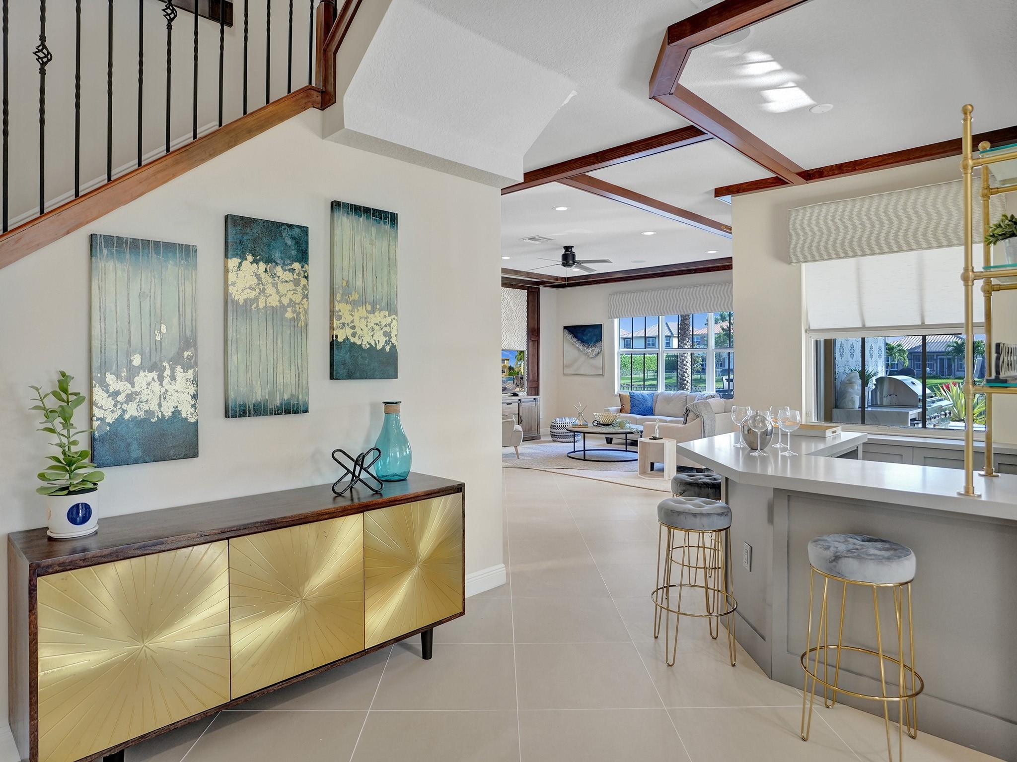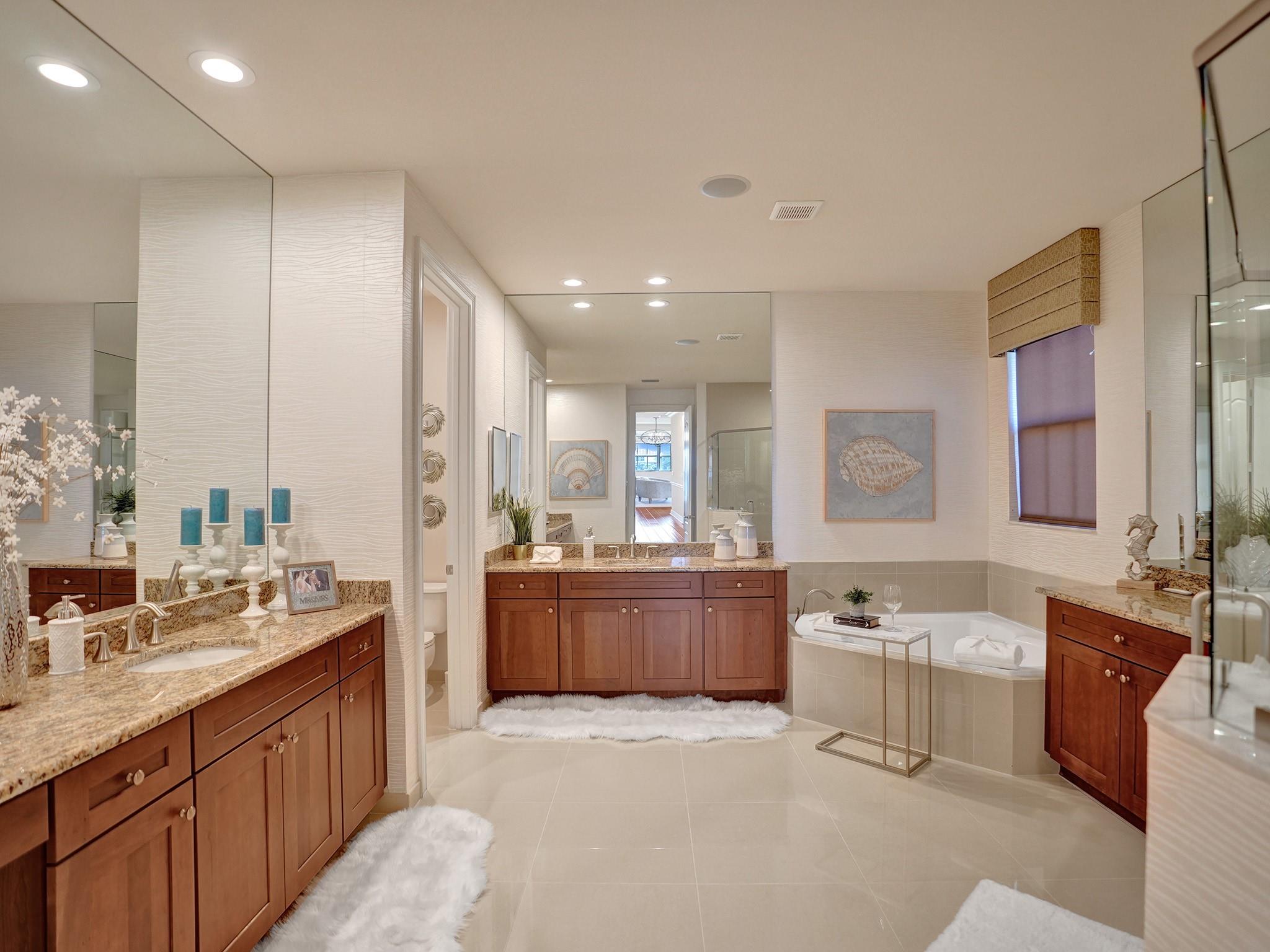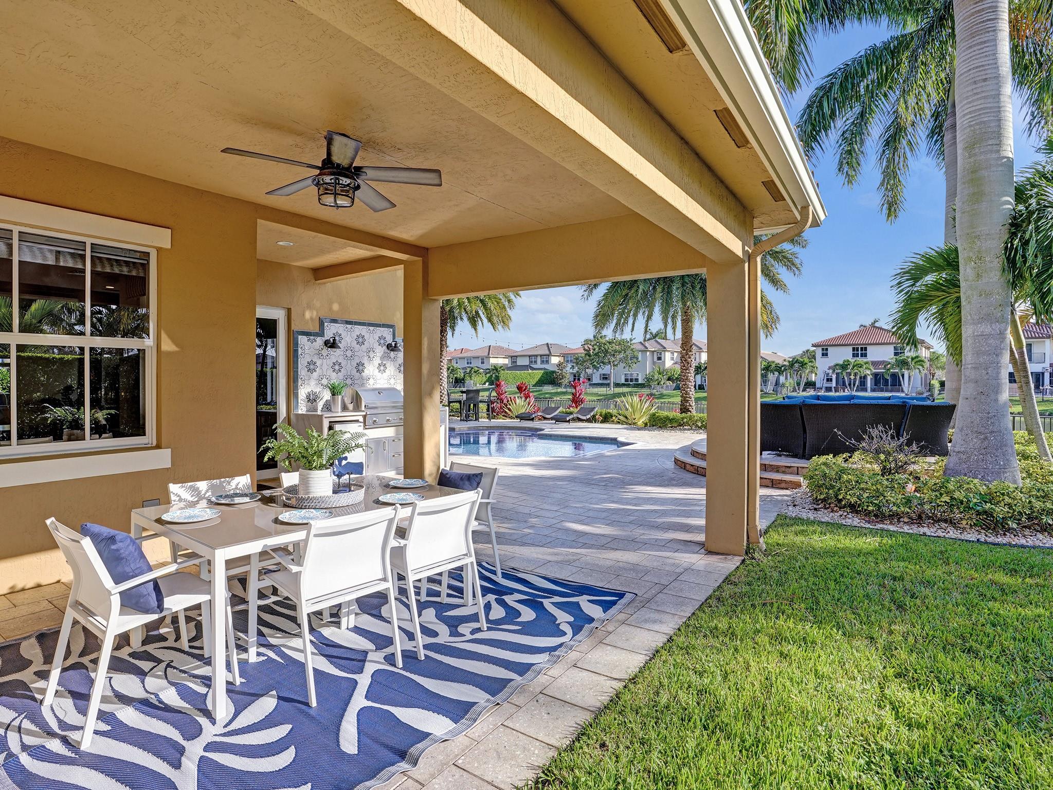 Gorgeous former stunning model! This Waterton over 4,064 square feet is largest home in the Executive collection on a point water lot on model row in beautiful MiraLago. This home is superbly upgraded with all the bells and whistles, has 5 Bedrooms (one down) and 4 full baths. Large living room, formal dining, built in bar and family room make this the perfect home for entertaining. Large primary suite with sitting area. Very generous sized upstairs game room. Enjoy sunrise and sunset in your backyard sanctuary on over 110 feet of lake frontage. Spectacular pool with separate spa and several seating areas, outdoor kitchen and green spaces. Amazing gated community; resort-style amenities, including gyms, tennis, spin room, basketball, billiards room, tot lots, kids Water Parks and ballroom.