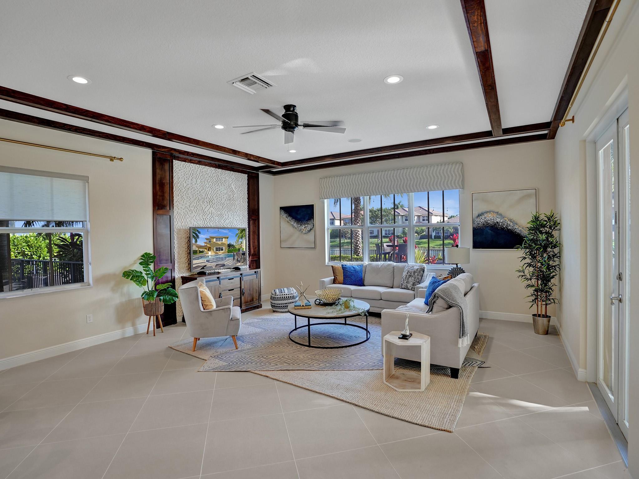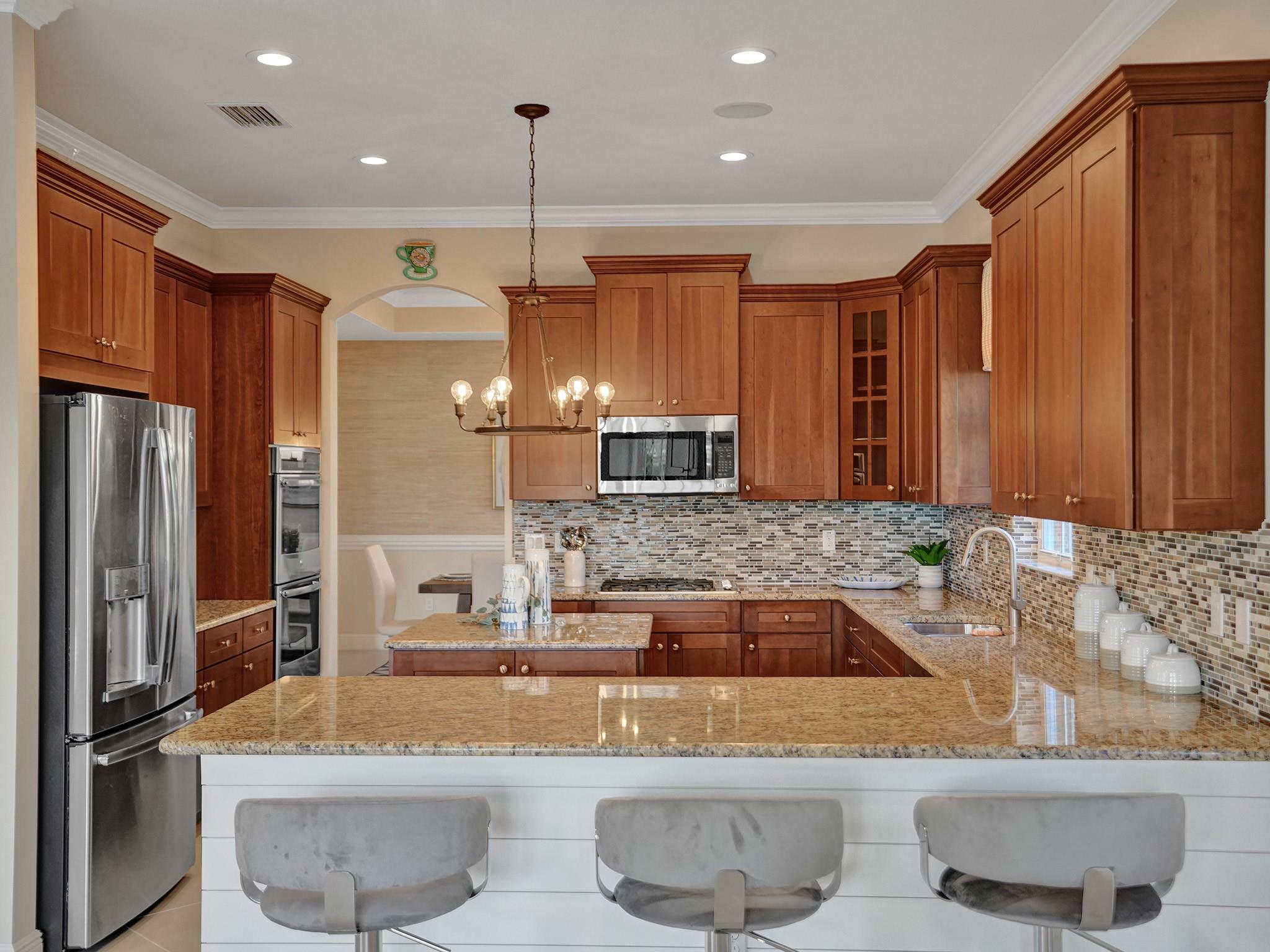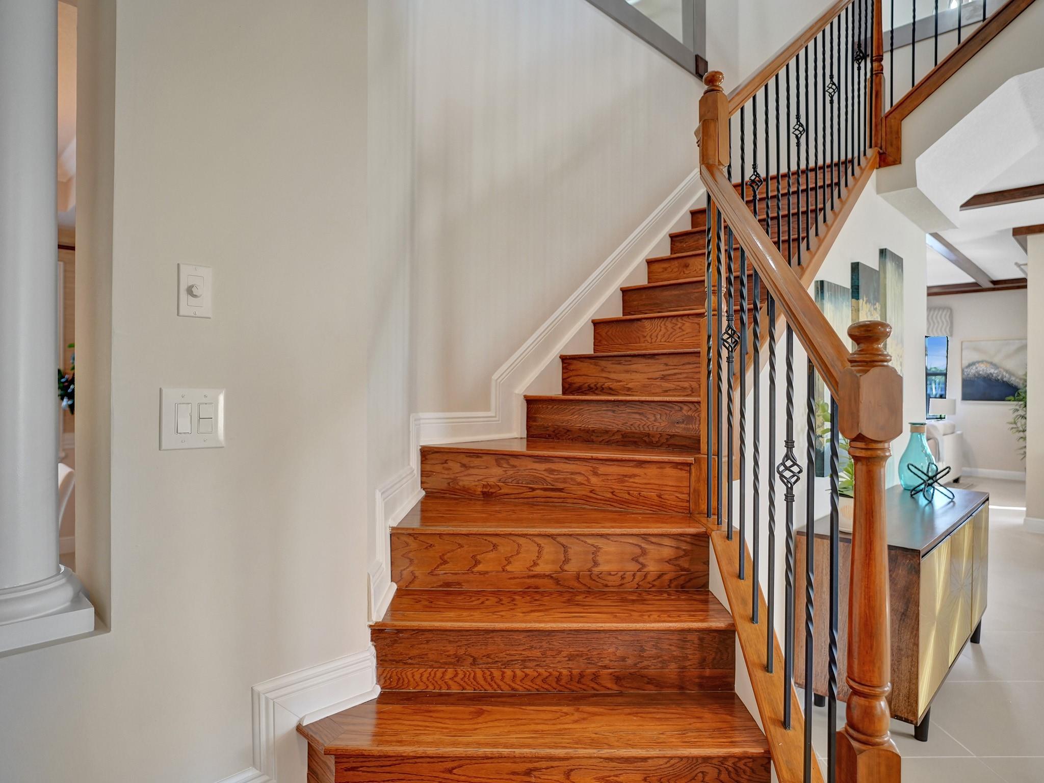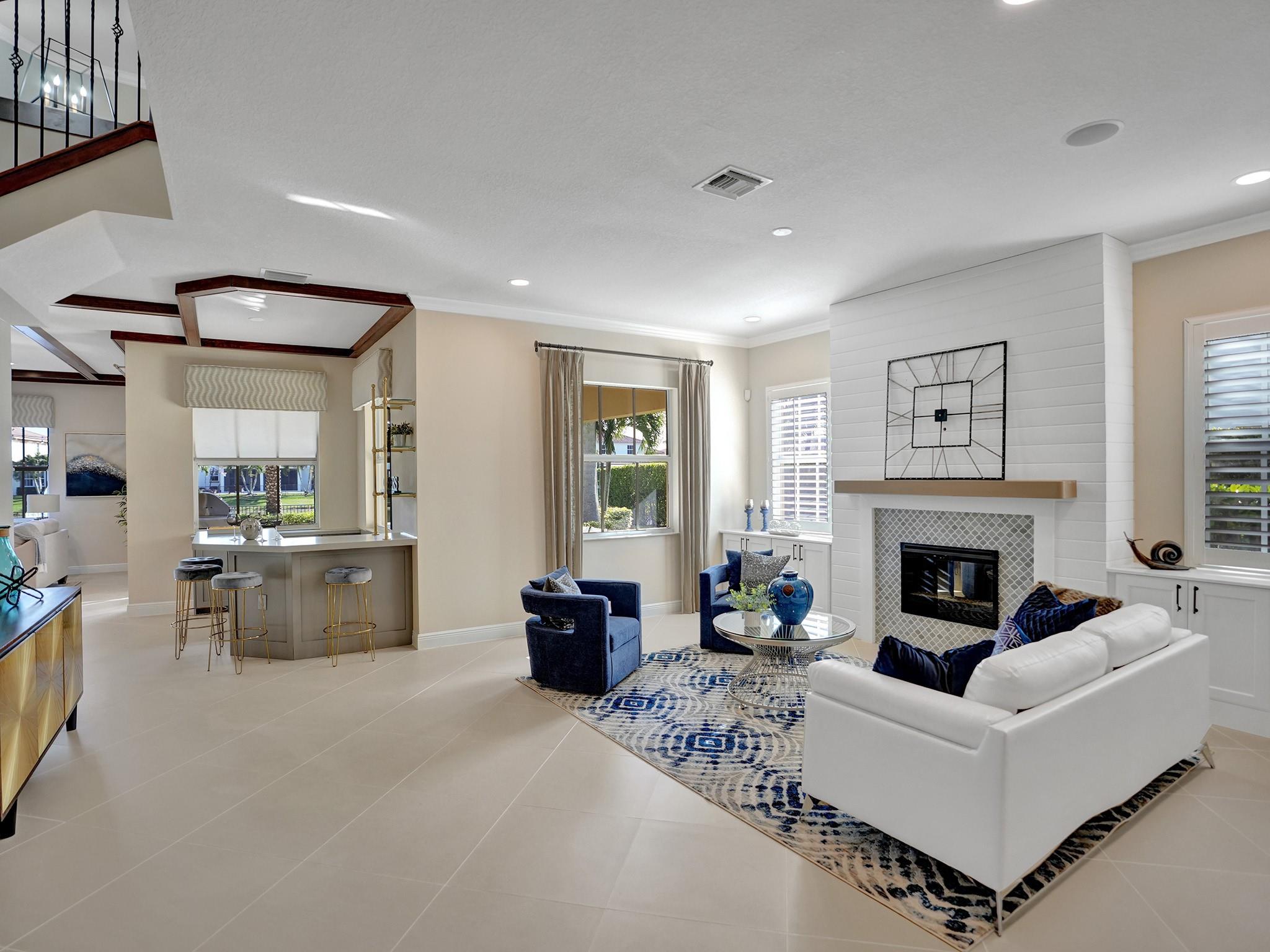 Gorgeous former stunning model! This Waterton over 4,064 square feet is largest home in the Executive collection on a point water lot on model row in beautiful MiraLago. This home is superbly upgraded with all the bells and whistles, has 5 Bedrooms (one down) and 4 full baths. Large living room, formal dining, built in bar and family room make this the perfect home for entertaining. Large primary suite with sitting area. Very generous sized upstairs game room. Enjoy sunrise and sunset in your backyard sanctuary on over 110 feet of lake frontage. Spectacular pool with separate spa and several seating areas, outdoor kitchen and green spaces. Amazing gated community; resort-style amenities, including gyms, tennis, spin room, basketball, billiards room, tot lots, kids Water Parks and ballroom.