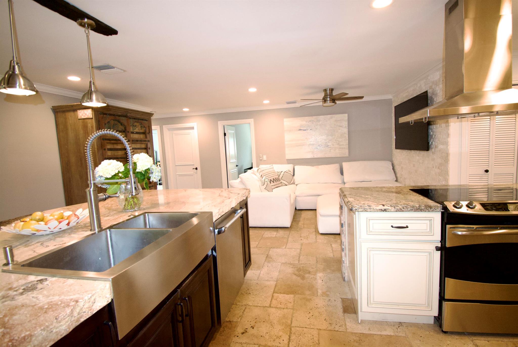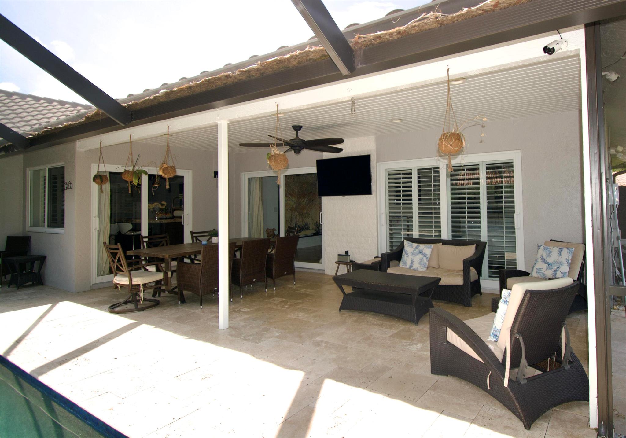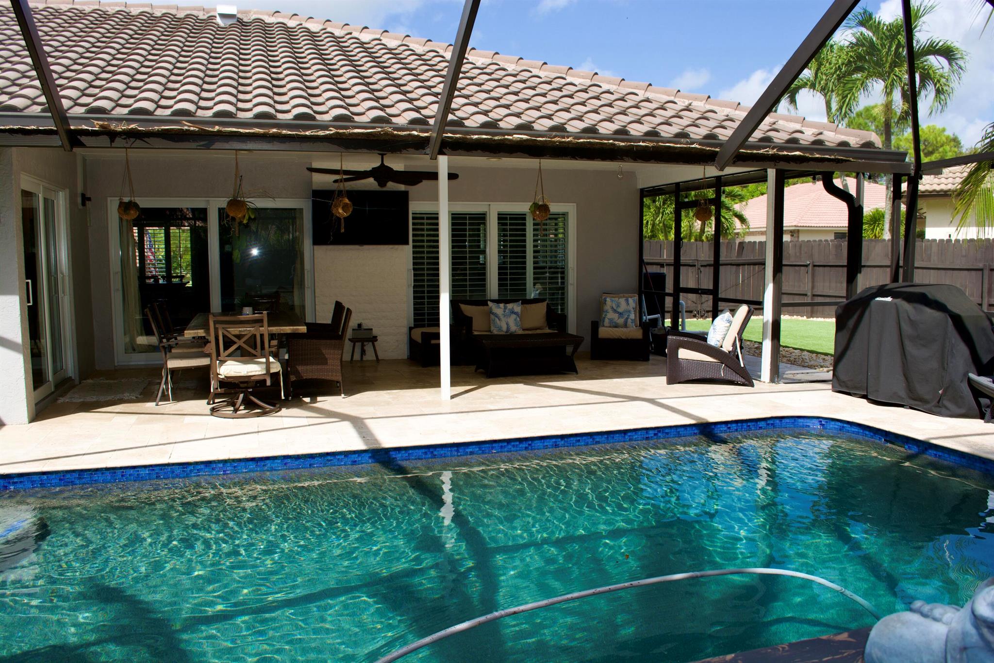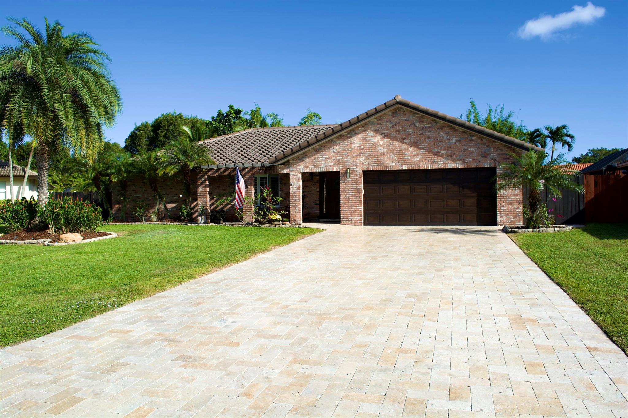 A MUST SEE!! Welcome to your very own slice of paradise in beautiful Boca Raton! With 4 spacious bedrooms and 2.5 bathrooms, move in ready home . The interior features marble and granite counter tops in the custom kitchen, and bathrooms , travertine and wood flooring, custom walk-in closets, hurricane impact doors and windows . In house laundry room . 12 security cameras around the house . The 2 car garage with vinyl flooring, custom cabinets, and lights , a wine fridge and an oversized 2nd refrigerator is also air conditioned. Newer A/C ducts thru the house and newer roof. <5 year old>