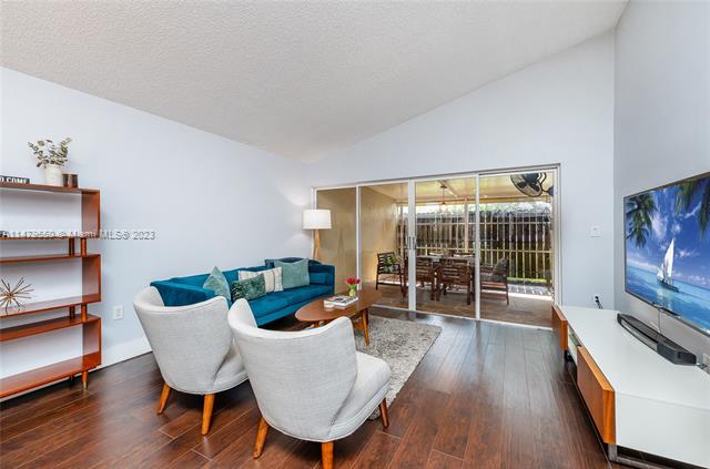 Welcome to this charming and stylish sought-after one-story townhome in the heart of Pembroke Pines. This true-of-its-kind home in the guard-gated community of Flamingo Villas features tastefully appointed laminate faux wood flooring, volume ceilings in the open-concept living area, and a beautifully updated kitchen with shaker-style wood cabinetry, quartz countertops, and stainless steel appliances. The primary bedroom features dual closets including a walk-in, and a classically updated bathroom. This lovely home also boasts an indoor laundry room/pantry combo and a storage closet within the expansive screened-in patio. Community amenities include a clubhouse, gym, pools, playground, tennis courts, roving patrol, and more. Located near hospital, parks, shopping, restaurants, and schools.