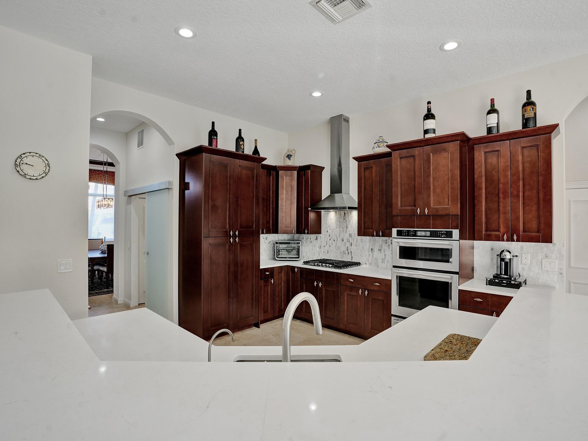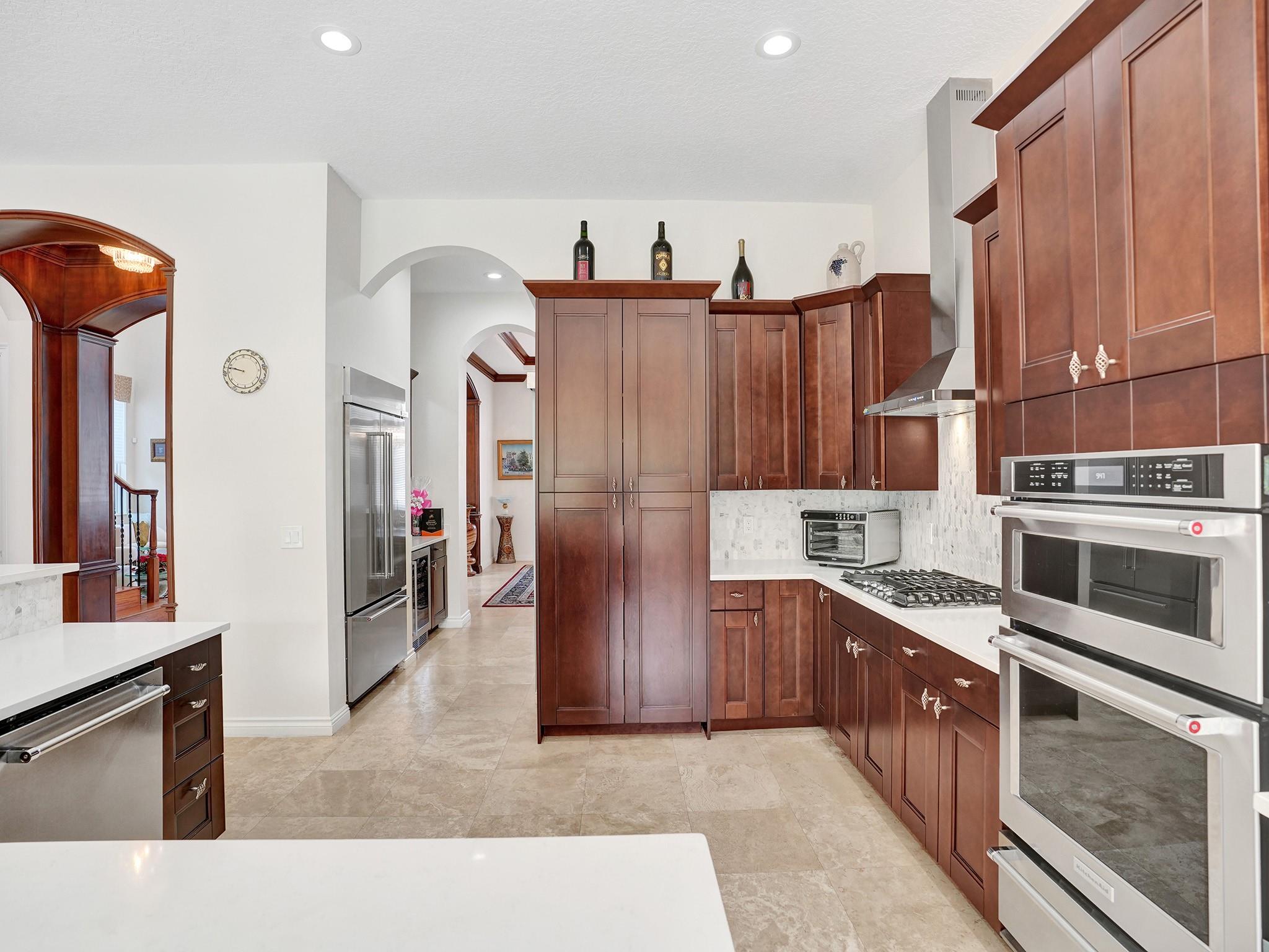 ESTATE HOME IN CENTRAL BOCA GATED COMMUNITY 'THE PRESERVE', built by Toll Brothers. This luxury residence is situated on one of the community's best lots, backing up to the pristine Preserve area with no neighbors in the rear. Covered screened patio provides all weather outdoor living space. 3 car garage. The house was extensively renovated in 2020-2023. Renovations and upgrades include: ALL HIGH IMPACT GLASS STORM WINDOWS, DOORS, FRONT and GARAGE DOORS. Gourmet kitchen w/top-of-the-line appliances and built-in 42" refrigerator; all the bathrooms; wood floors in all bedrooms, pool equipment and resurface; 2 new 4-ton AC units, NATURAL GAS generator, central VAC and authentic Finnish Sauna. The roof was inspected last month, it is in excellent condition and expected to last 5-7 more years.