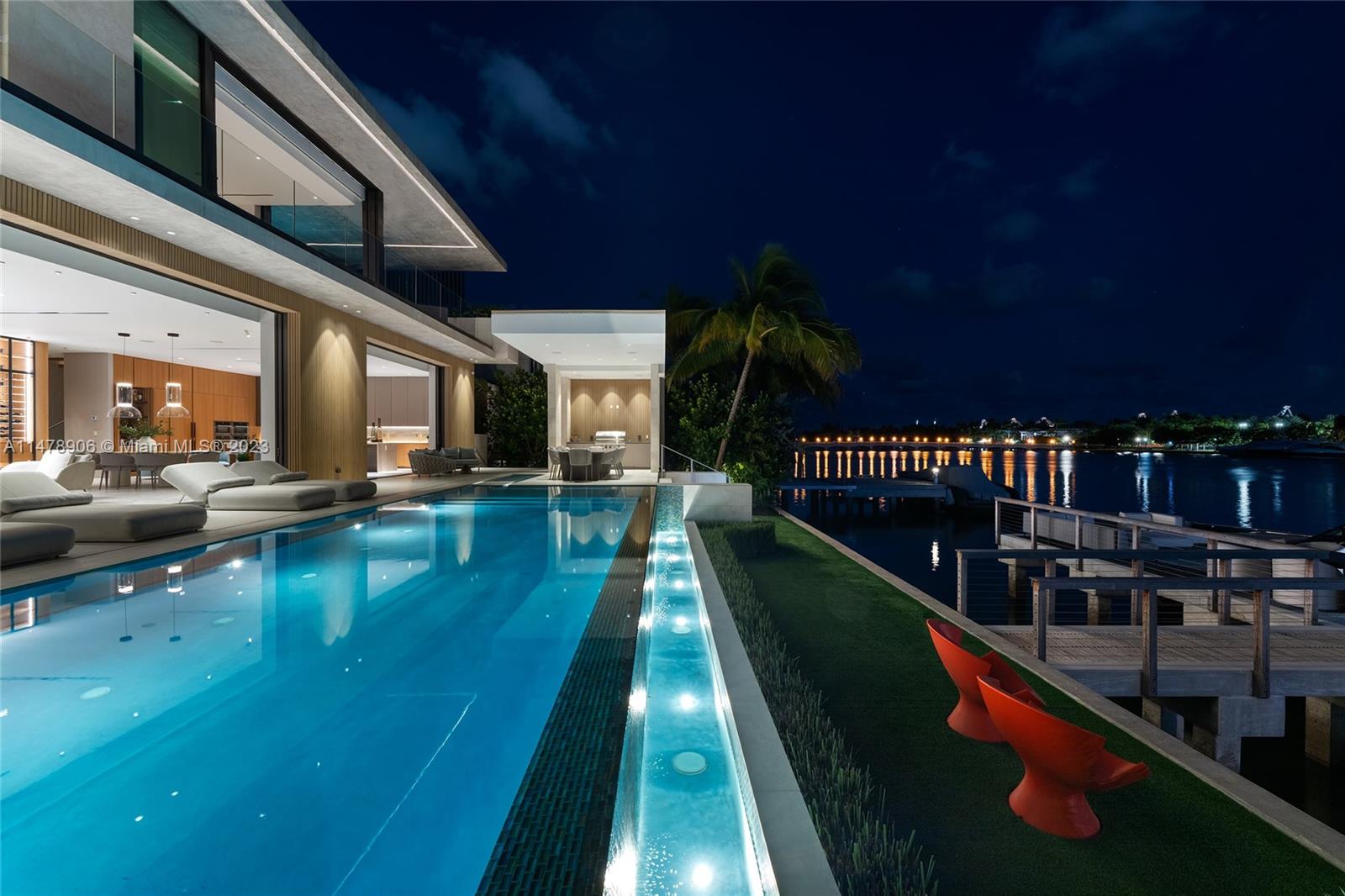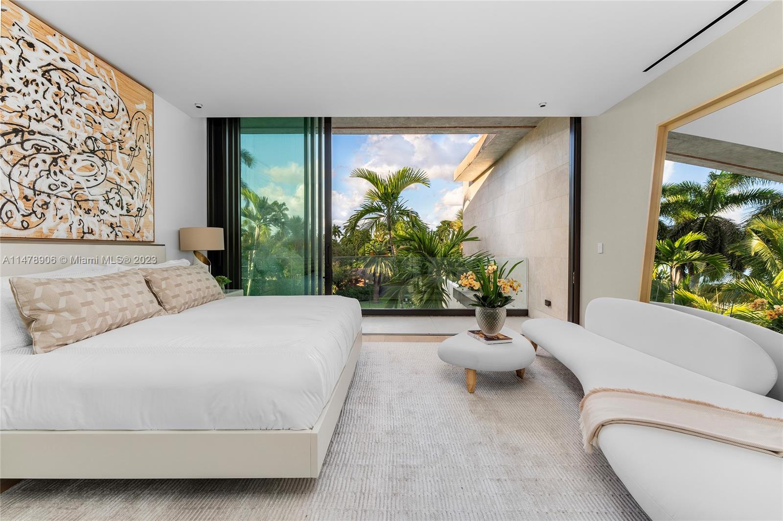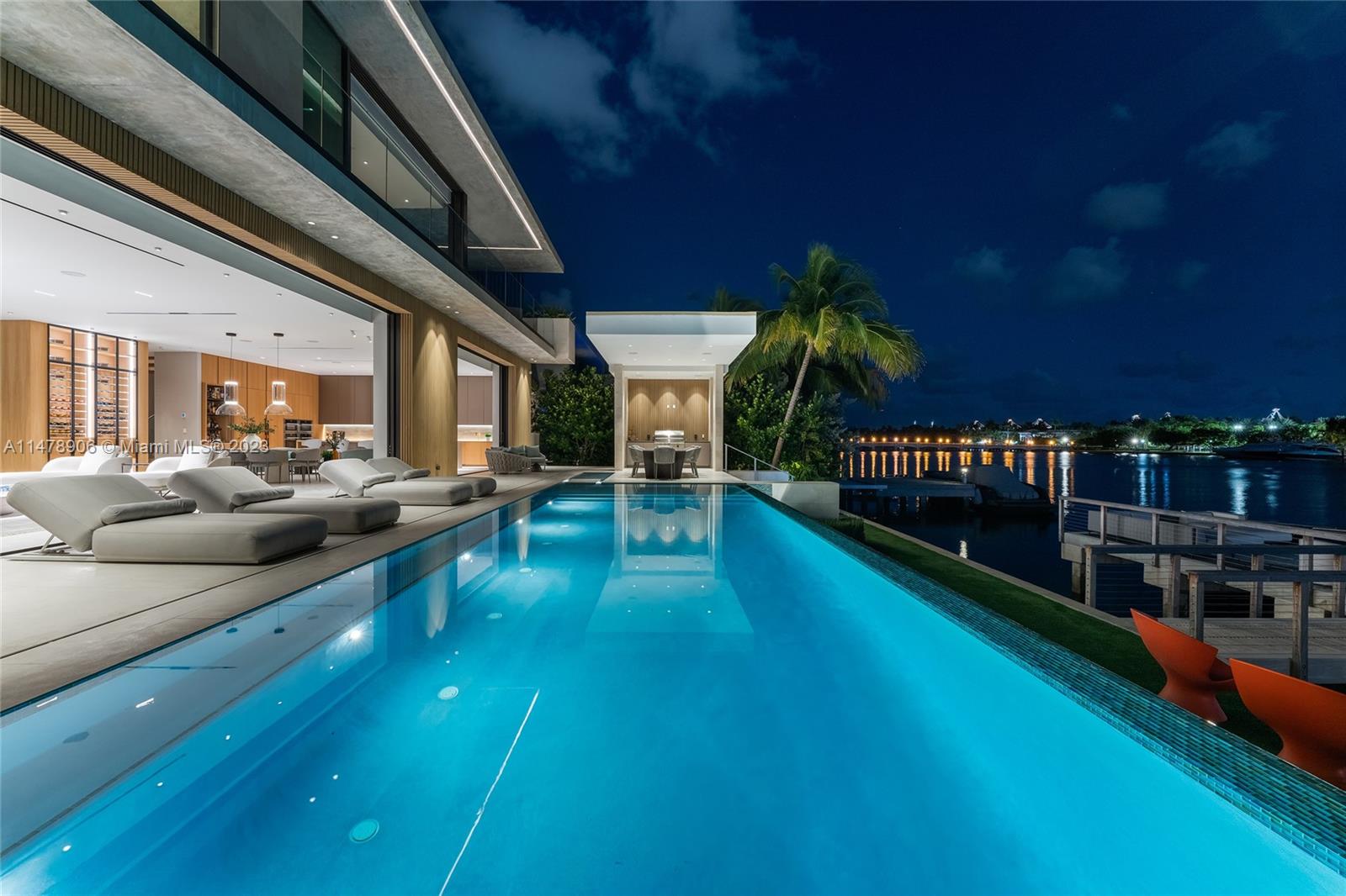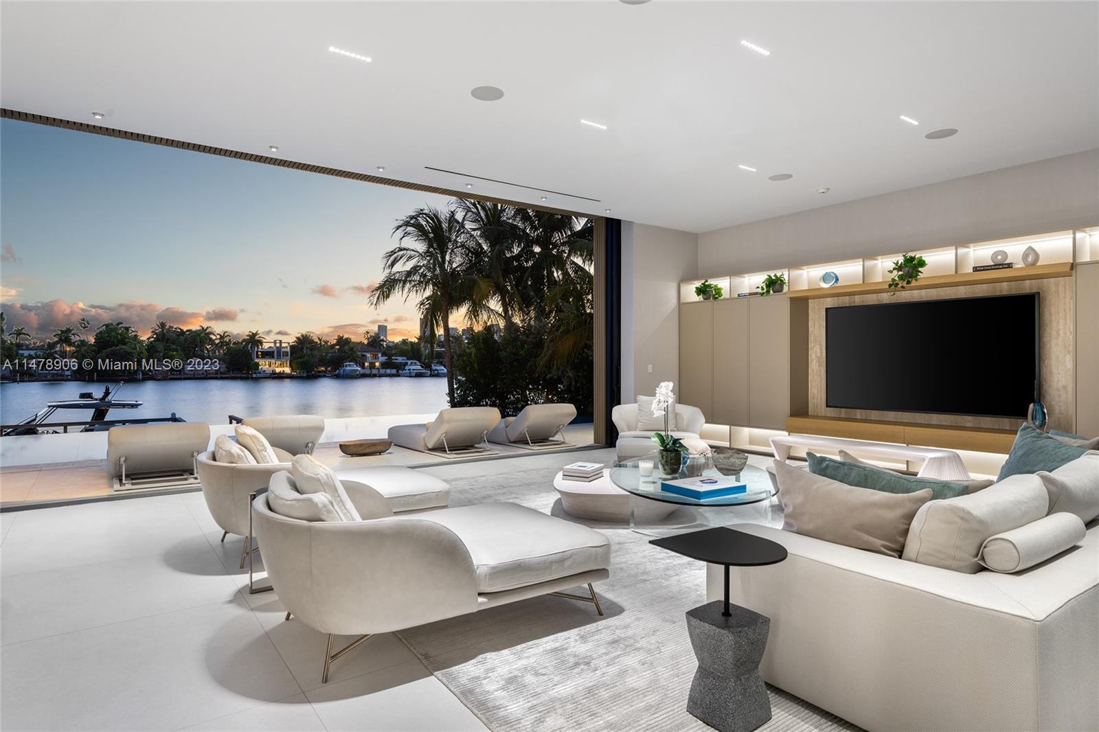 This 2-story, Ralph Choeff designed waterfront estate on guard-gated Hibiscus Island truly epitomizes luxury living in Miami Beach. Property boasts 7BR/7+1BA, sitting on a meticulously landscaped 15,750 SF lot, w/panoramic vistas of the iconic Miami skyline. Inside, the residence showcases impeccable interior design, soaring ceilings, & floor-to-ceiling telescoping glass doors that flood serene natural light while bringing the outdoors in. The expansive Great Room seamlessly integrates a family/media room, dining area, & chef's kitchen, all w/captivating water views. The 2nd story principal suite offers a terrace overlooking the waterway with city views and a beautiful plunge pool/spa. Outdoor spaces are a tropical oasis w/infinity pool, private dock for large vessels & easy ocean access.