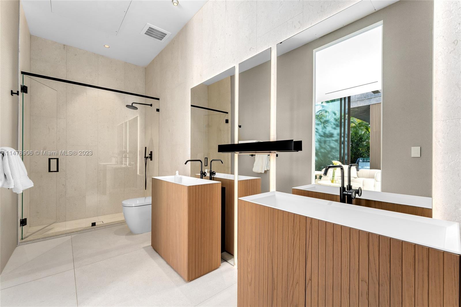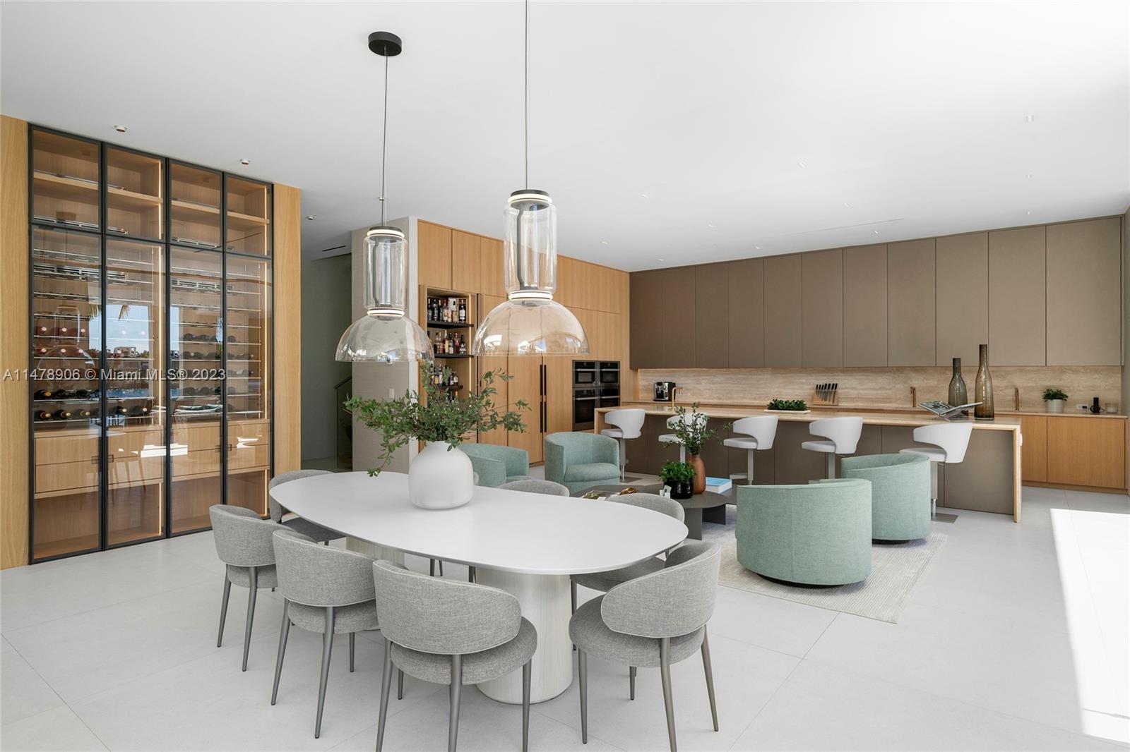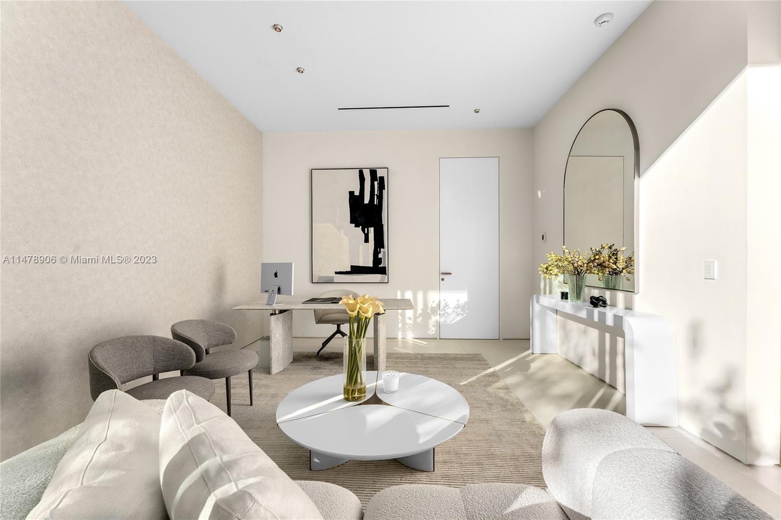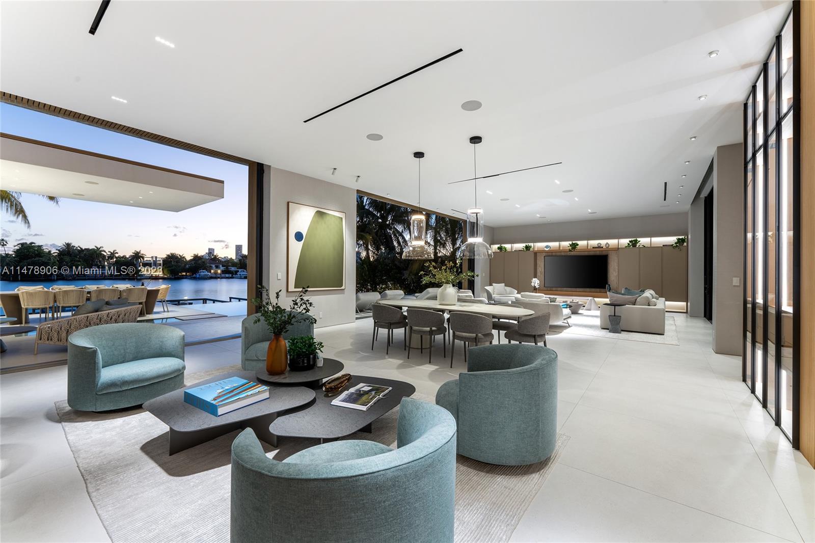 This 2-story, Ralph Choeff designed waterfront estate on guard-gated Hibiscus Island truly epitomizes luxury living in Miami Beach. Property boasts 7BR/7+1BA, sitting on a meticulously landscaped 15,750 SF lot, w/panoramic vistas of the iconic Miami skyline. Inside, the residence showcases impeccable interior design, soaring ceilings, & floor-to-ceiling telescoping glass doors that flood serene natural light while bringing the outdoors in. The expansive Great Room seamlessly integrates a family/media room, dining area, & chef's kitchen, all w/captivating water views. The 2nd story principal suite offers a terrace overlooking the waterway with city views and a beautiful plunge pool/spa. Outdoor spaces are a tropical oasis w/infinity pool, private dock for large vessels & easy ocean access.