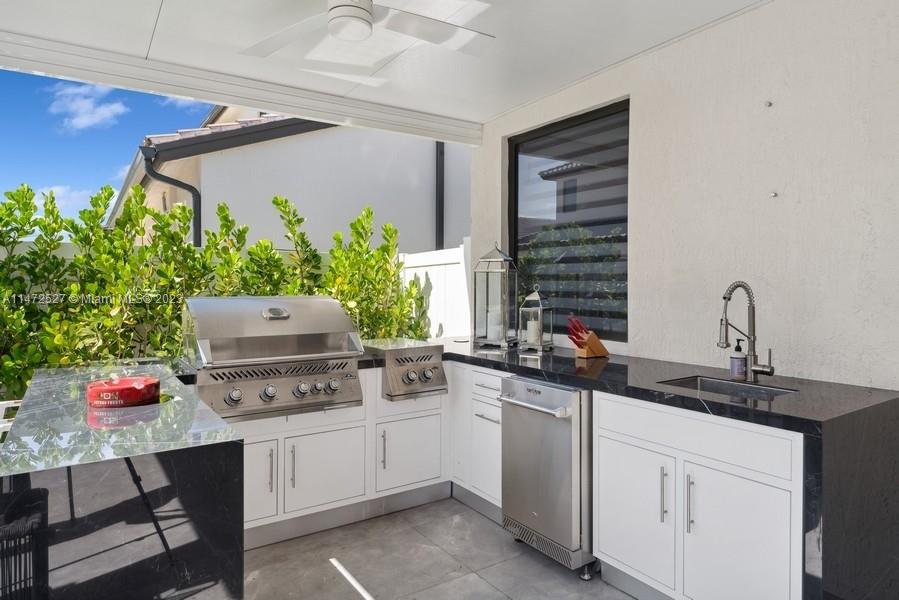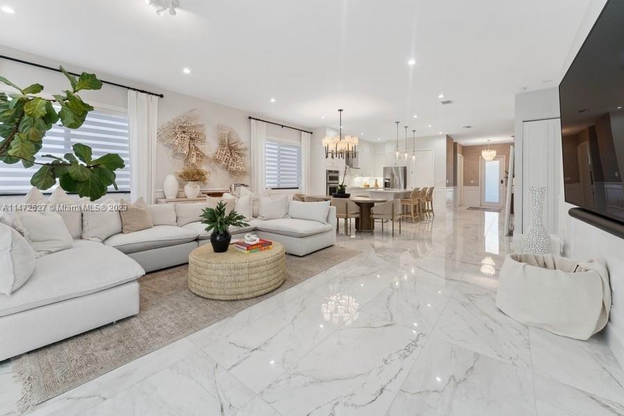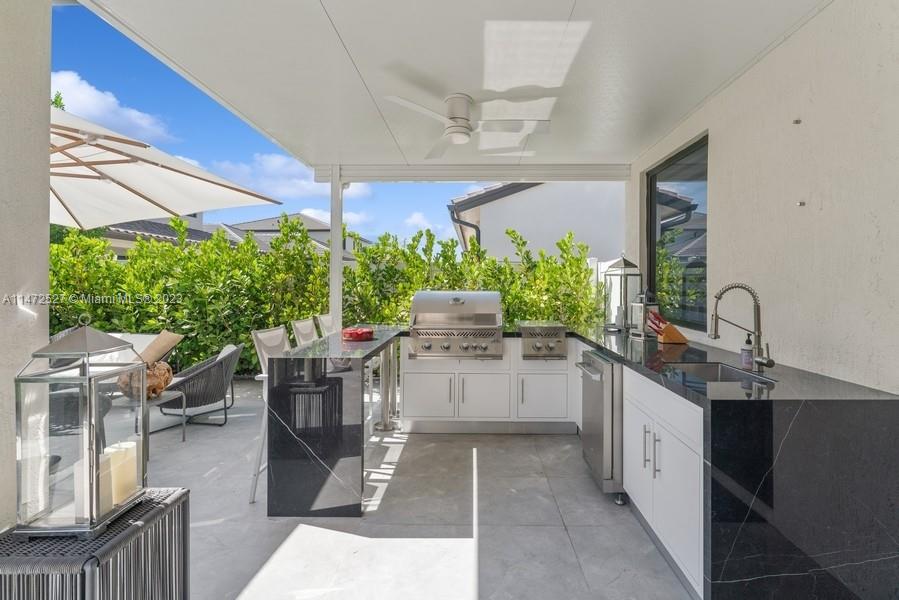 This is your dream home! Be emerged and mesmerized in luxury with all decorative touches this home offers. This TURN-KEY home has been professionally decorated. Stunning porcelain floors throughout the home exude elegance. Kitchen cabinets reach the ceiling; quartz countertops, upgraded appliances, elevate this kitchen to culinary excellence. The open concept is flooded with natural light. Dazzling drapery, exquisite millwork throughout the home. Impact door/windows, mounted TV’s, audio system everywhere. The en-suite creates a perfect retreat. From a rain shower, lighted mirrors, designs the epitome of high-quality spa. A custom summer kitchen, tiled deck, lighting, brings entertainment to another level. Upgrades to exceed $300K+. Close to trendy shopping, dining, airport, great schools.