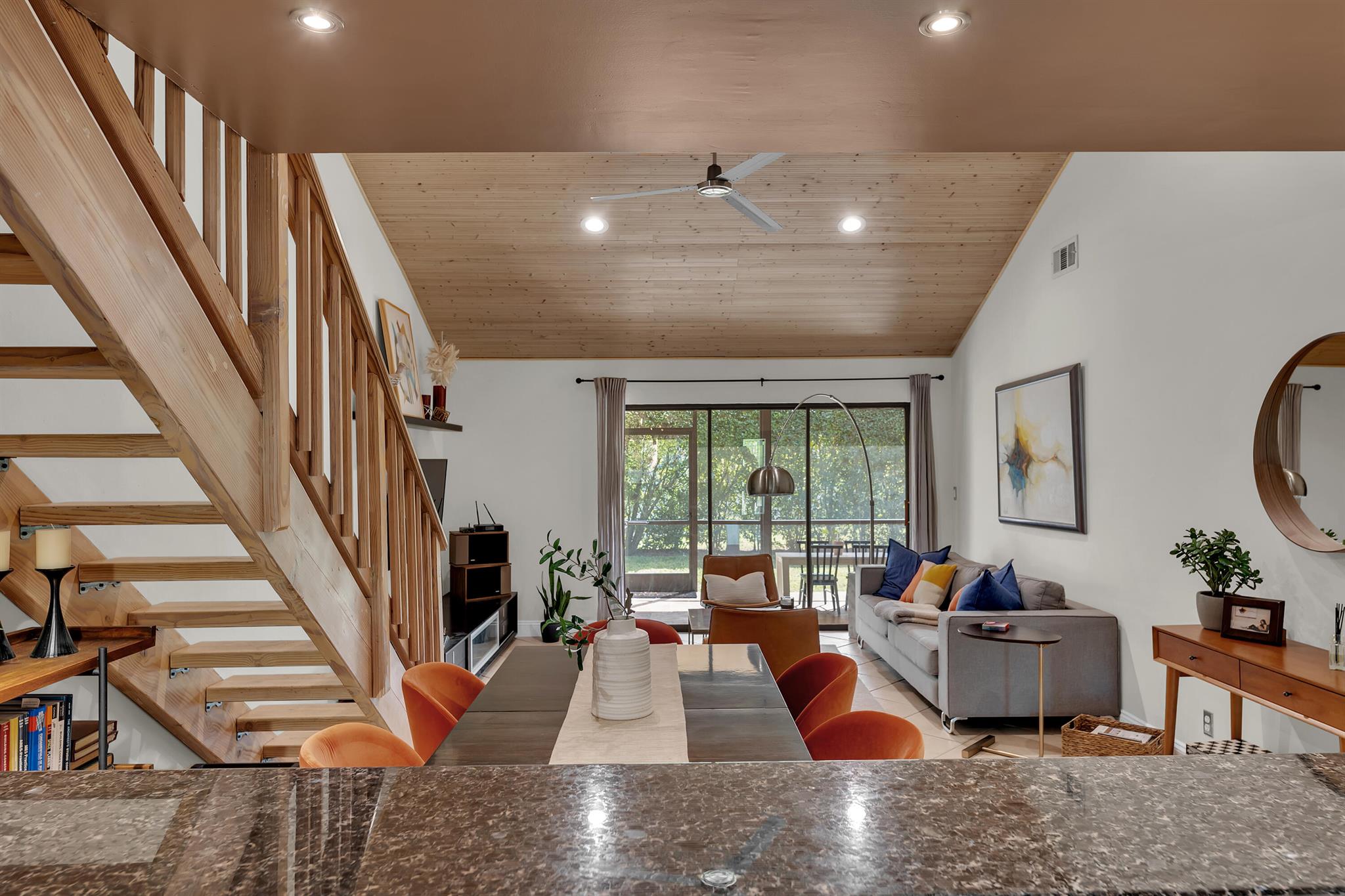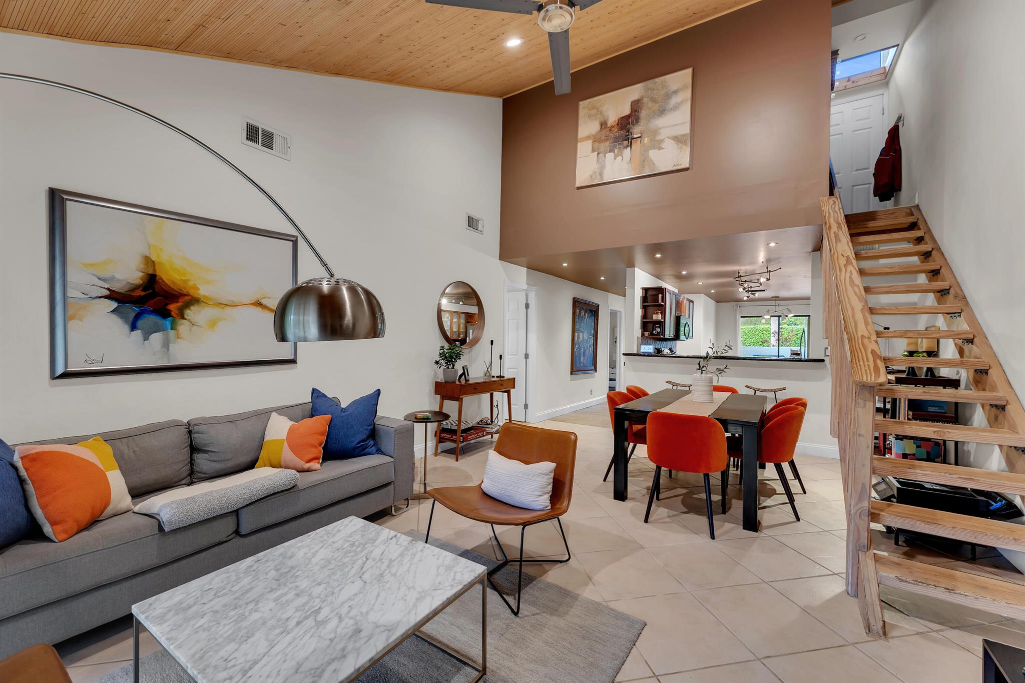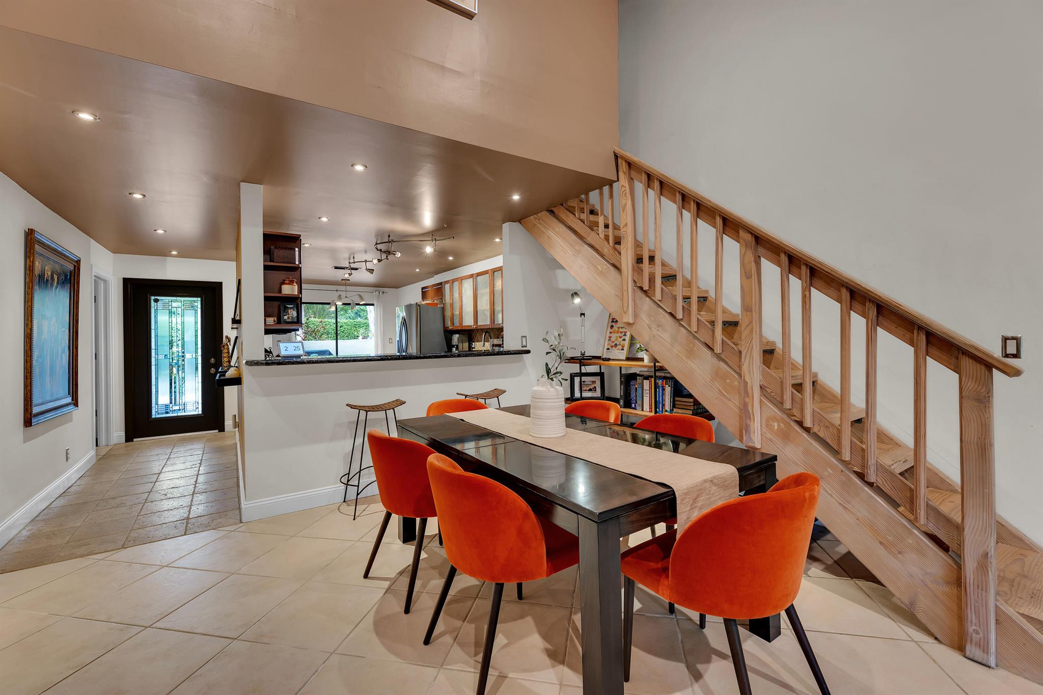 Completely updated townhome. Newer eat-in kitchen with granite counter tops, wood cabinets and stainless steel appliances. Updated bathrooms. Ceramic Tile floors in living area and kitchen. Laminate floors in the bedrooms. Upstairs loft converted to a bedroom. Large updated screened in patio. Beautiful courtyard entrance. Huge walk in attic space for additional storage. Vaulted ceilings with wood beams. Extra backyard space for privacy. Low HOA. $680.00 per quarter. Immaculate Move in condition. A/C is 2015