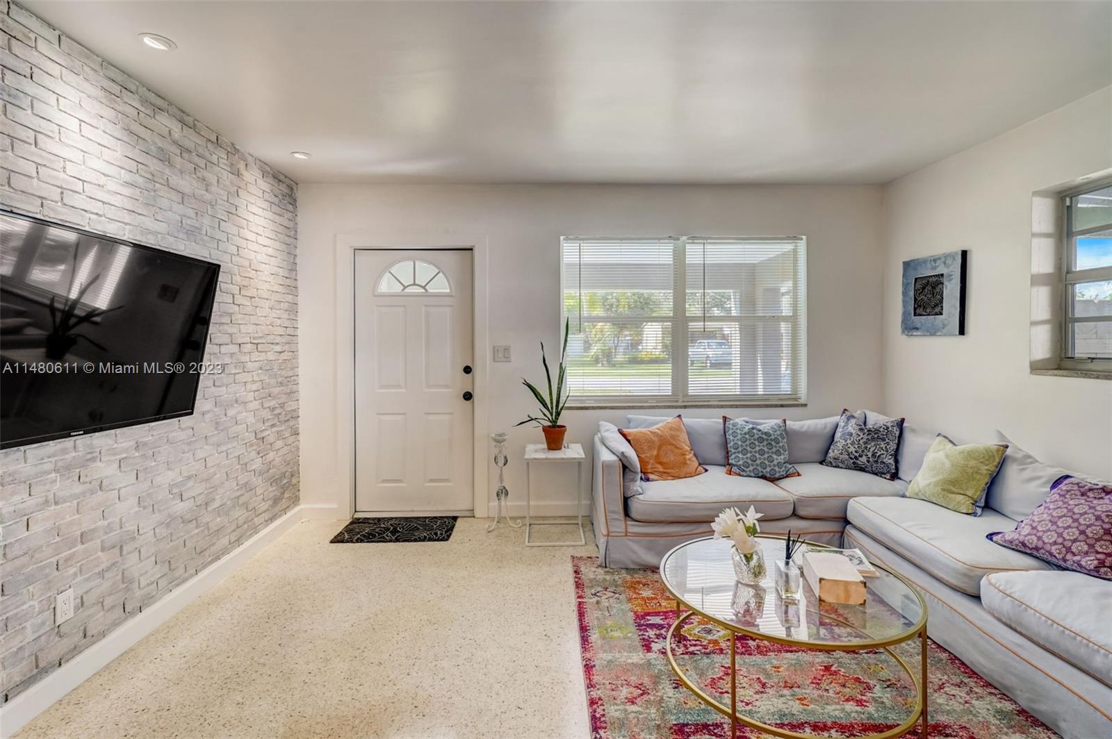 Charming 3-bedroom, 2-bathroom home featuring an open concept kitchen-living-dining combination. Enjoy the brand-new cabinets, sleek quartz countertops, and top-of-the-line Samsung appliances, complete with a convenient wine cooler. The bathrooms have been tastefully remodeled, and the original terrazzo floors have been expertly repolished. Experience ultimate comfort with the addition of a new AC system and modern laundry appliances. Step out onto the 400 sq. ft. mosquito net enclosed patio, ideal for year-round outdoor enjoyment. Additionally, there's a spacious 400 sq. ft. carport and a generously sized garage door providing alley access for a boat or RV. This is a turnkey property