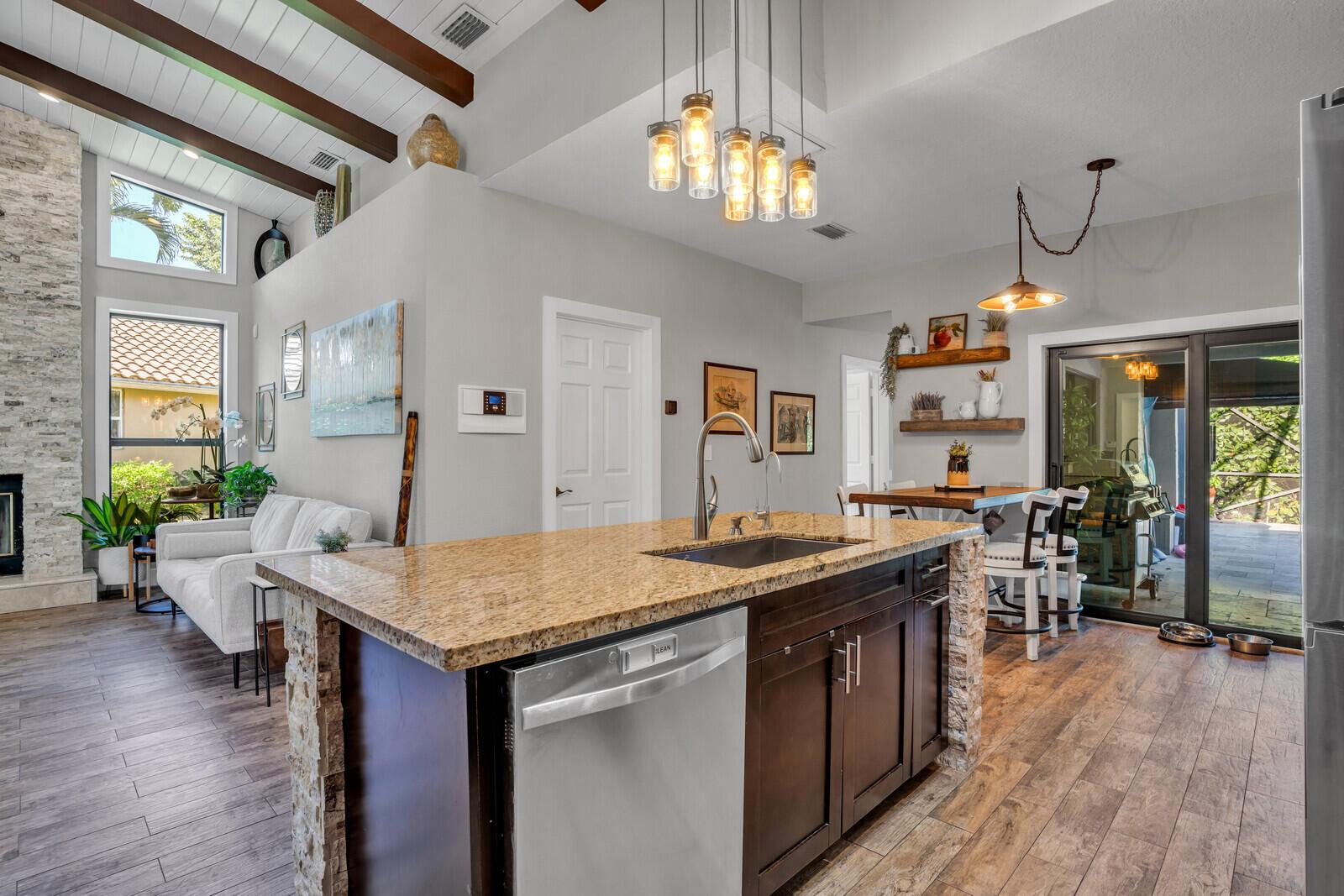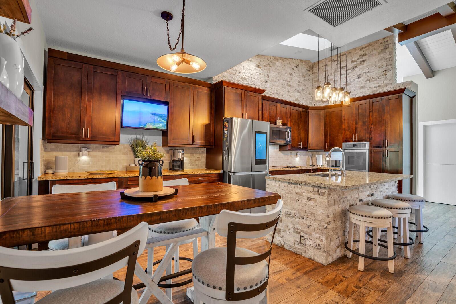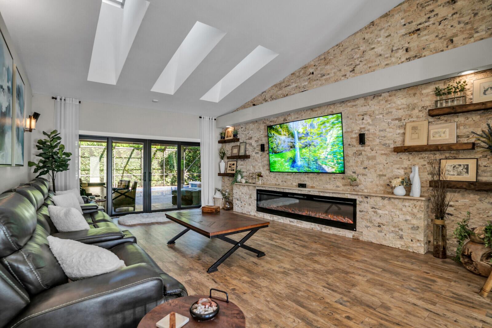 Don't miss this spectacular 4-bedroom pool home on an expansive pie shaped lot in the sought after community of Country Point Estates. This beautifully renovated home offers impact windows & doors. The flooring is porcelain wood look tile throughout. Gorgeous eat in kitchen with an Island, (stove top-down draft ceramic), double ovens, a new smart refrigerator & entire home water filtration system. The family room boasts a stone facade working fireplace in an amazing setting off the kitchen. This home also offers a spacious living room overlooking the most incredible saltwater pool with travertine tile & luxury spa. Adjacent to the pool area is a huge fenced in yard for the kids to play. This home is an absolute must see! Parkland is a beautiful City and well known for its A rated schools.