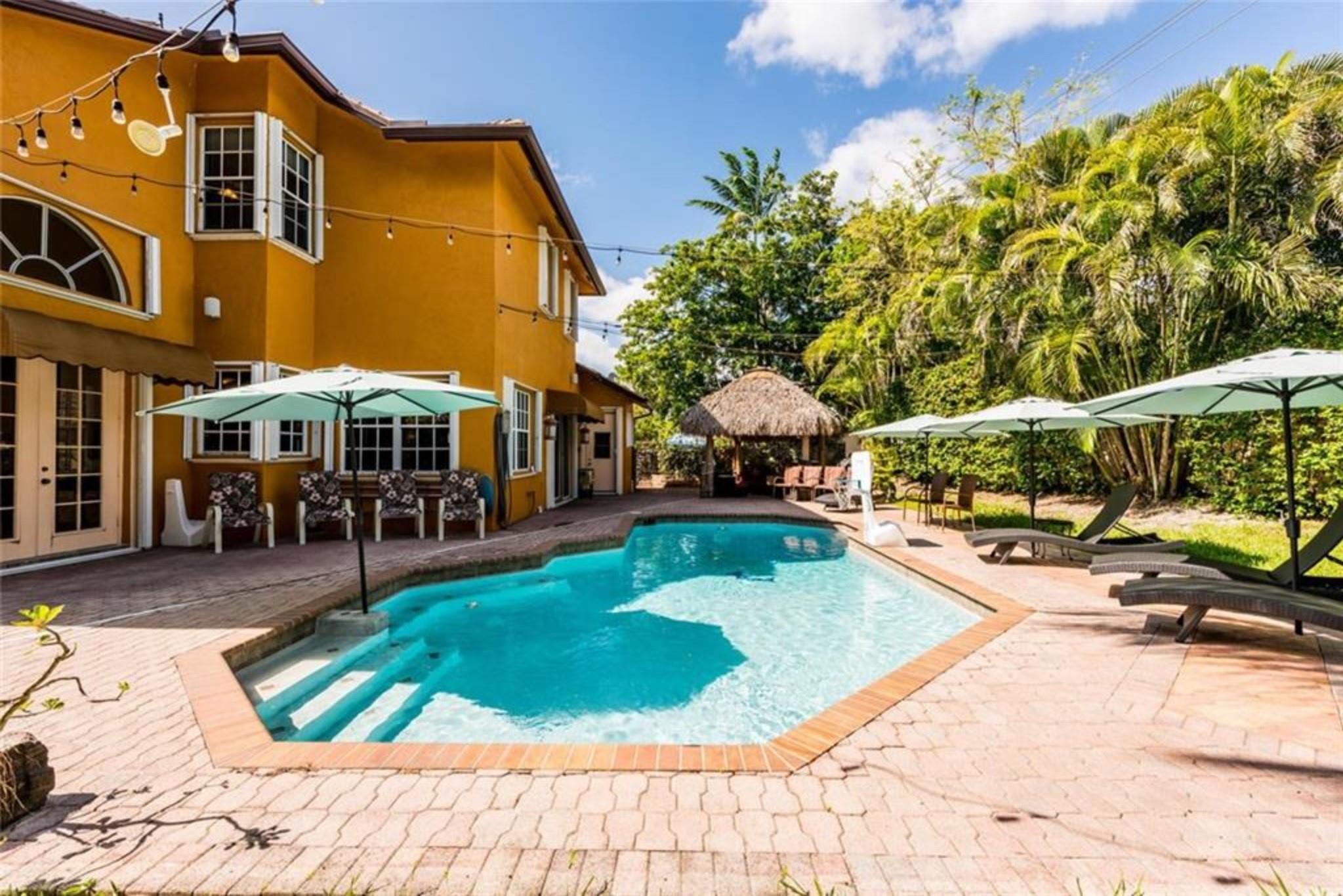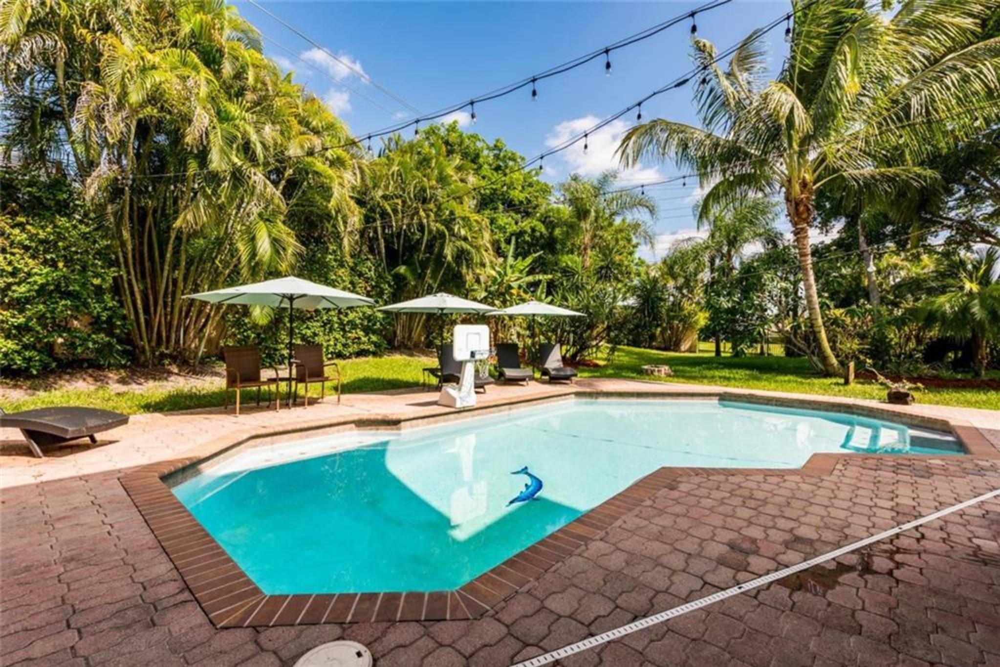 GREAT HOME/NEIGHBORHOOD TO RAISE A FAMILY, ENTERTAIN RELATIVES/GUESTS. PETS WILL LOVE IT TOO! LOADS OF SPACE FOR ENTERTAINING IN & OUT W/ PLENTY OF OUTDOOR LIGHTING. CUSTOM TIKI HUT W/ ELECTRIC. ONE OF THE BIGGEST YARDS IN ROCK CREEK AND ONLY ONE W/ EASEMENT JUST FEET FROM HIATUS RD. 33X19 SOLAR HEATED POOL WITH 67X27 PATIO/POOL AREA +2 OTHER PATIO AREAS. BIG KITCHEN W/GRANITE COUNTERS/42" CABINETS/2 SNACK BARS/PLUS SO MUCH MORE/OPEN TO FAMILY RM. 10X10 BREAKFAST AREA NEXT TO KITCHEN. DINING ROOM W/BREAKFRONT & BAR+WINE FRIG. OVERSIZED LIVING ROOM. SIZEABLE 21X14 MASTER BEDROOM & MASTER BATH W/JACUZZI TUB/SEPARATE SHOWER. 24X24 RECTIFIED PORCELAIN FLOORS IN LIVING AREAS. NEW ROOF 2018. 2 AC'S. 160 GALLON SOLAR WATER HEATER. ACCORDION SHUTTERS, 6 SOLAR PANELS. MODERNIZE HOME TO YOUR LIKING.
