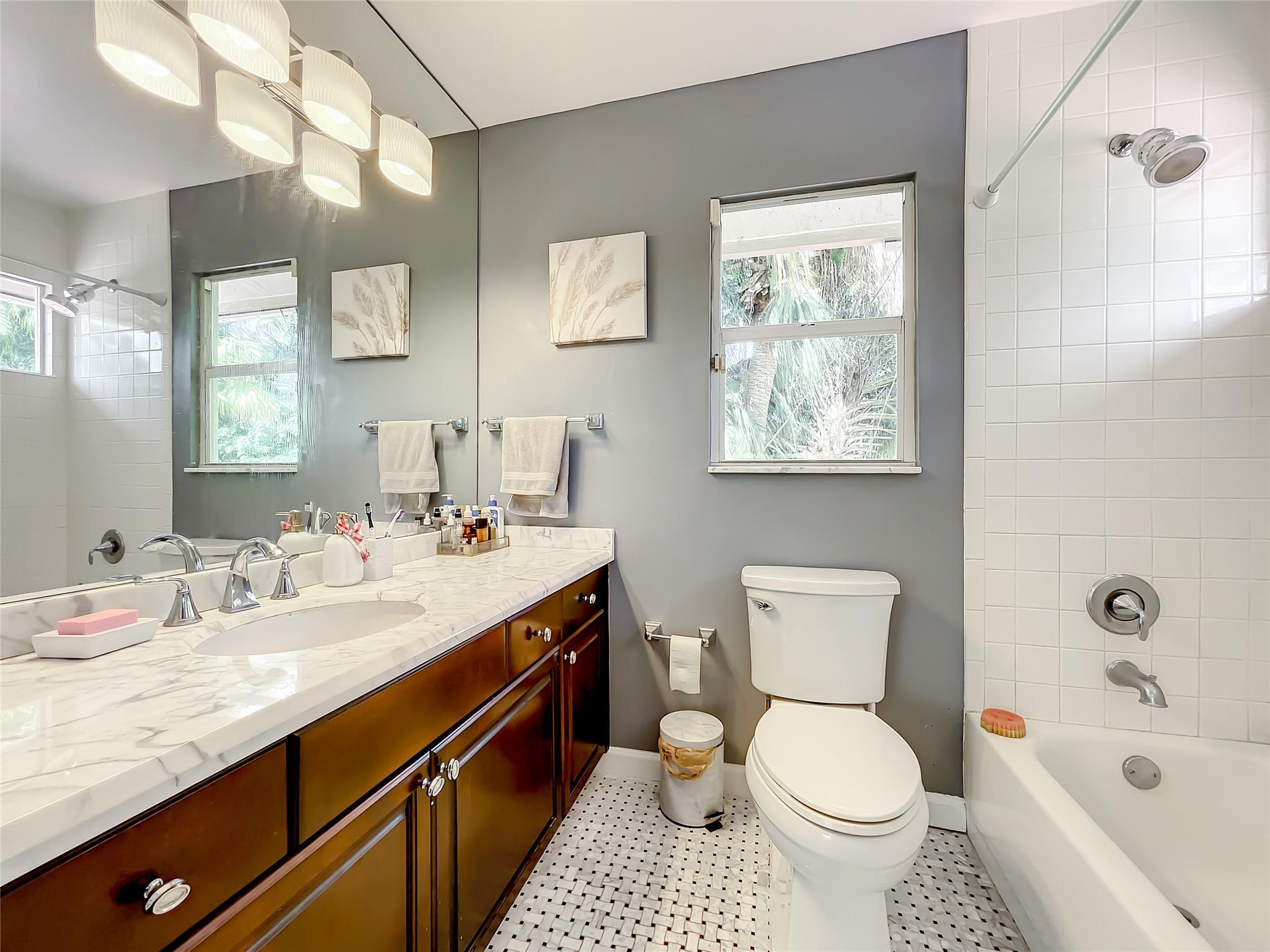 Seller offering a $30,000 credit to replace the wood floors - Bring all offers! The stunning courtyard features a guest house with a bedroom and full bath. Host all your guests outside with a refinished pool, outdoor kitchen w/fridge, sink, 40" stainless steel grill & granite bar. Home has a generator hookup. The gorgeous interior of the home includes - 8" wide plank hardwood floor thru-out main living area and master bedroom - huge gathering kitchen with white shaker cabinets, ocean blue tile backsplash, large center island w/high end stainless steel appliances. Mango, coconut, banana trees on the property with grape vines. Trim Lights all around to convey controlled by app to for any occasion year round including general lighting.