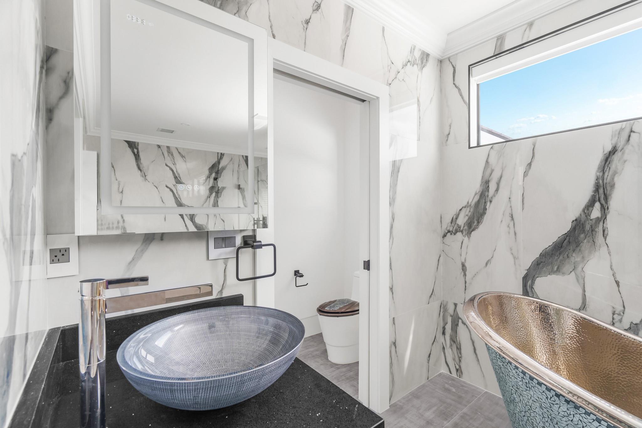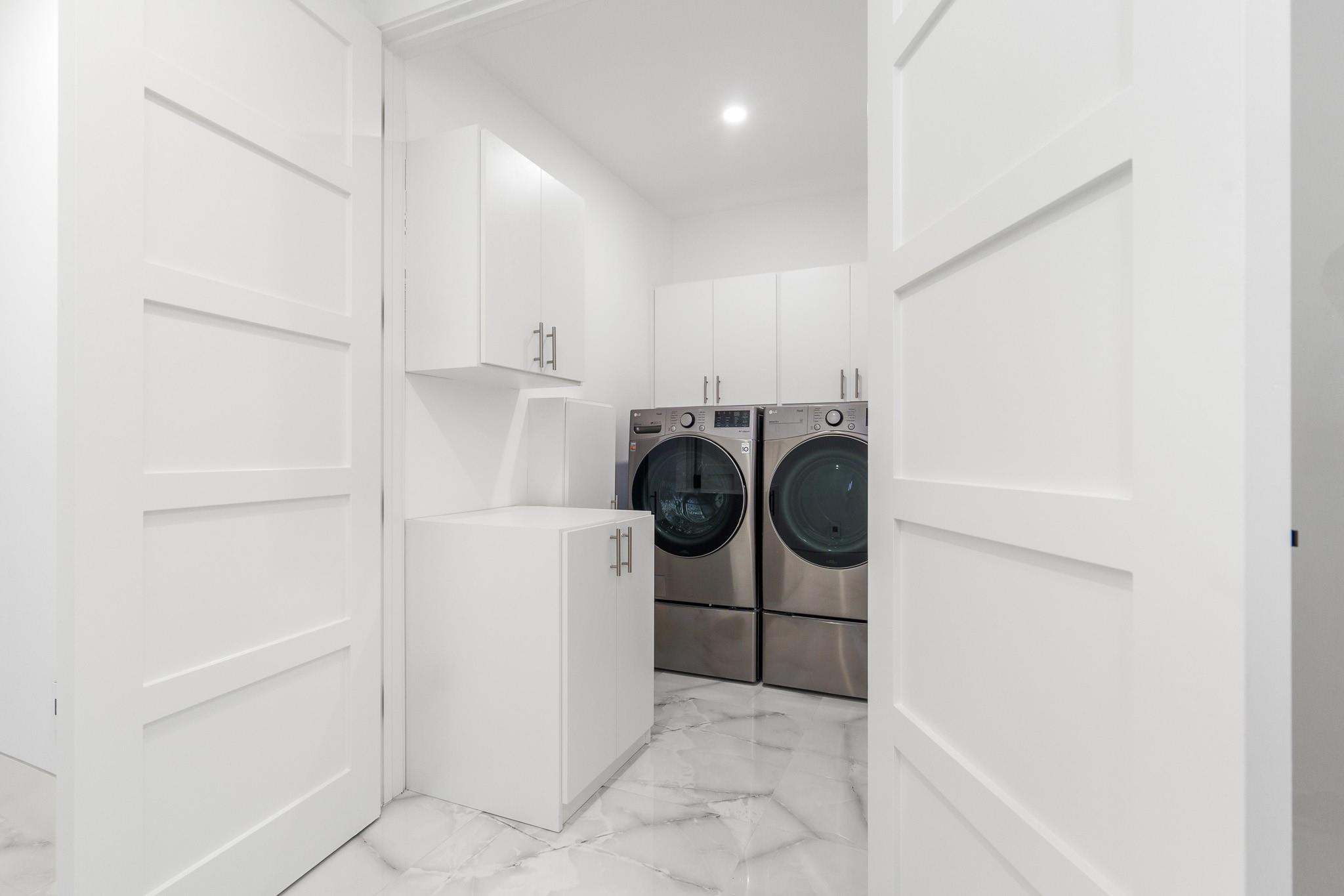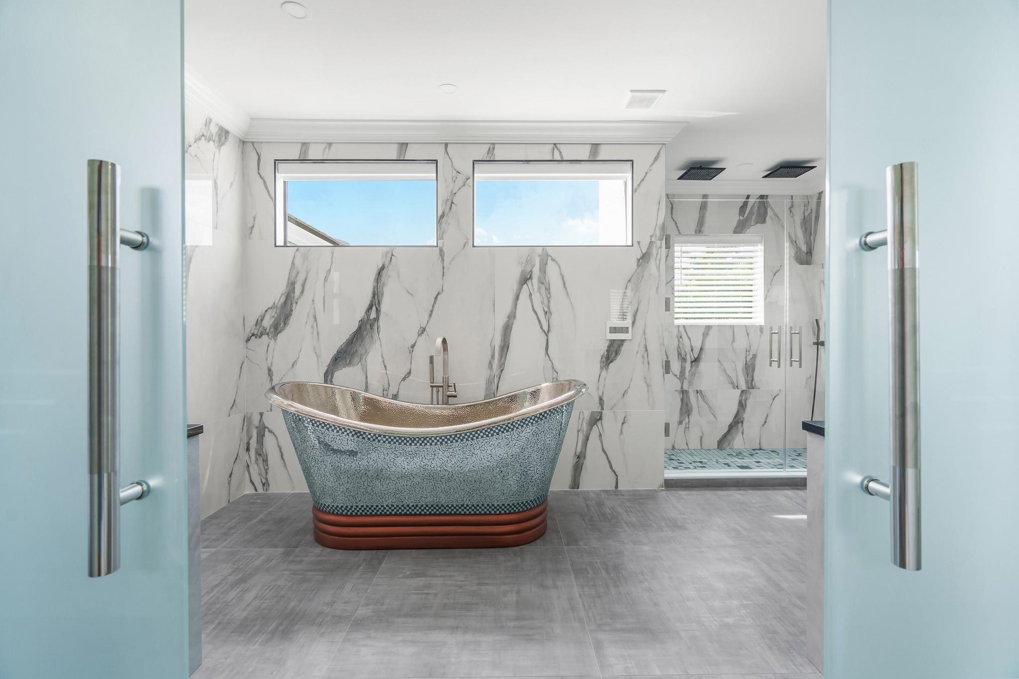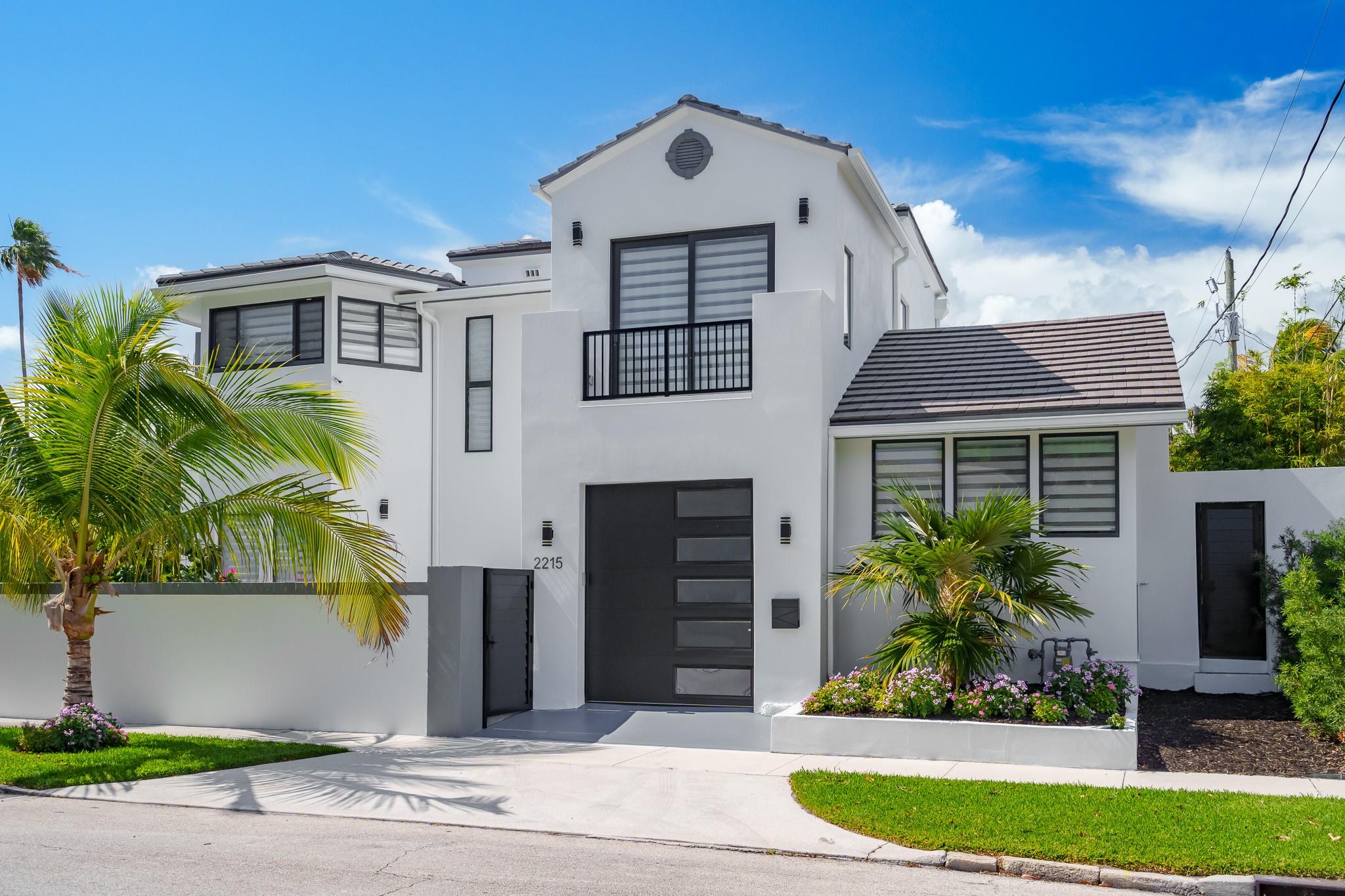 Spectacular newly custom-rebuilt modern estate home encircled by a grandfathered-in, 6-foot tall concrete privacy wall on a corner lot in the quiet Flamingo Park Historical District of the City of West Palm Beach. Patio Outdoor Kitchen w/ Gazebo. Salt Water Heated Jacuzzi & Swimming Pool w/ Sun Shelf & In-Pool Chaise Loungers & Fountain Geysers. Gourmet VIKING Eat-In Kitchen & large Center Island w/ Water-Fall Edged Quartzite Countertops. Optional capsule elevator to second floor Master Suite w/ huge ensuite Master Bath w/ Safari Double Massaging Shower & Handcrafted Copper & Chrome Free-Standing Crystal Double-Slipper Jetted Tub. Two Walk-In's in Master Bedroom. Reflective Infinity Ceilings, 10' wide floor-to-ceiling wood-burning fireplace, wireless powered silhouette shades thru out.