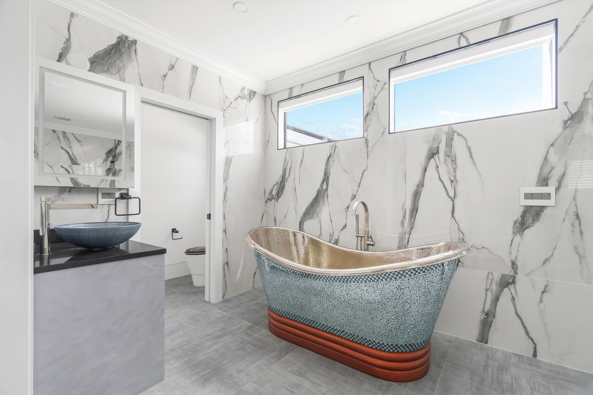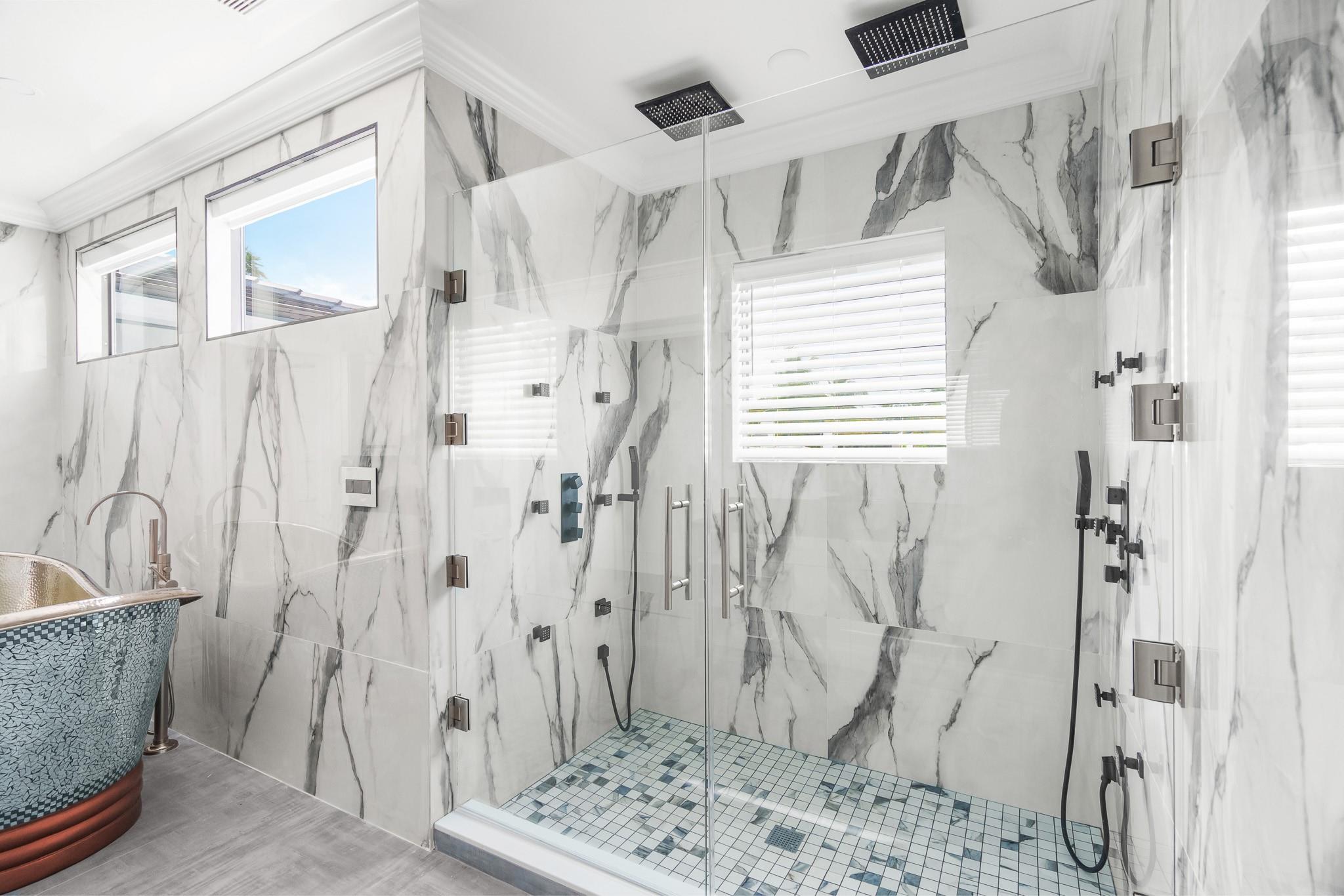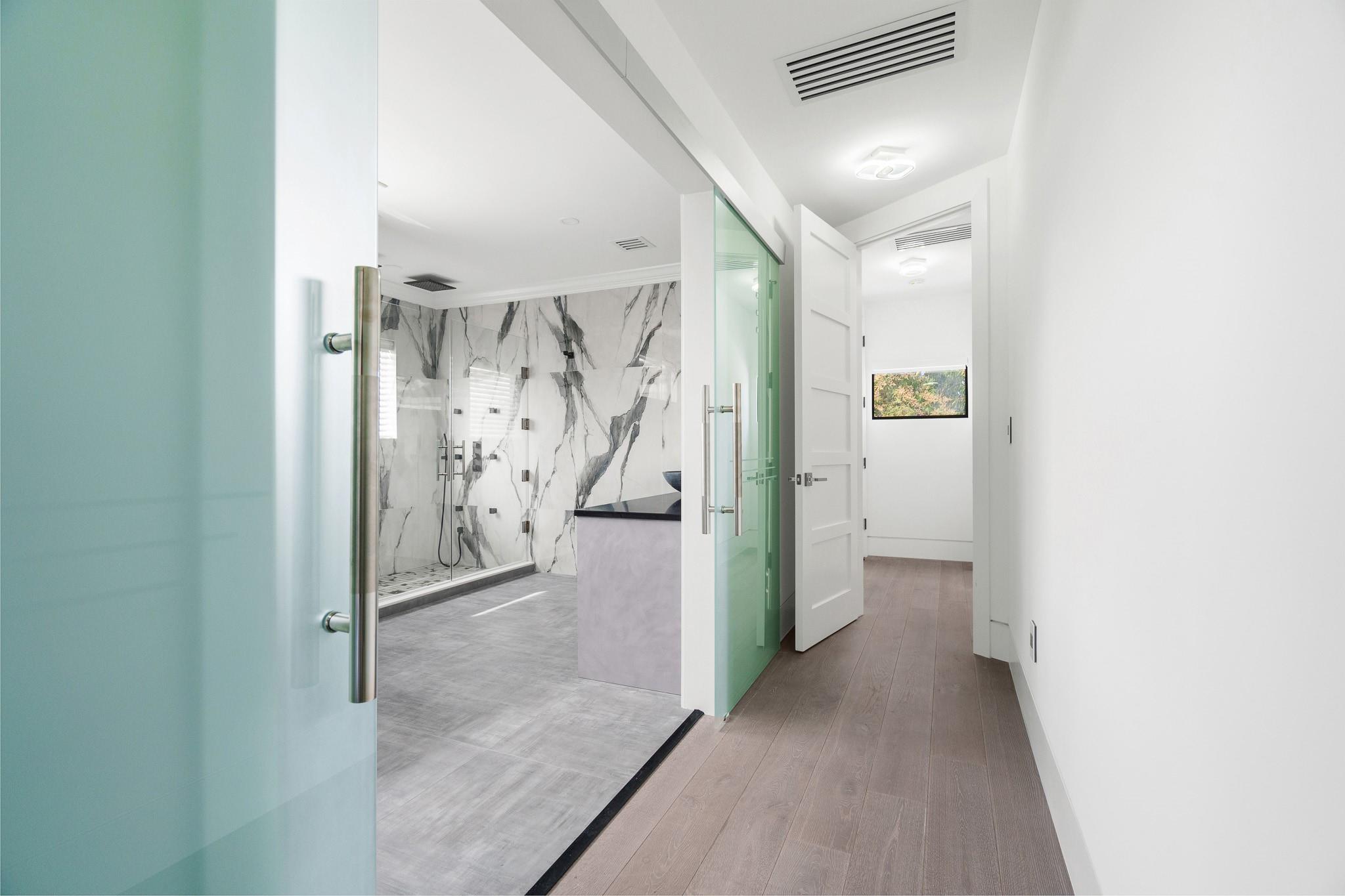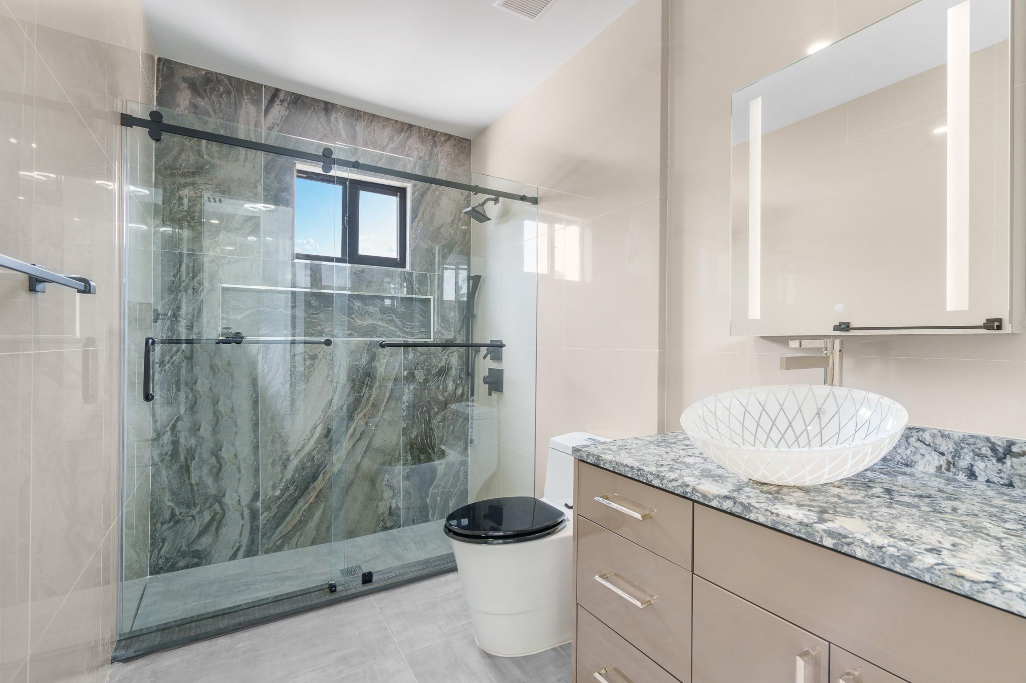 Spectacular newly custom-rebuilt modern estate home encircled by a grandfathered-in, 6-foot tall concrete privacy wall on a corner lot in the quiet Flamingo Park Historical District of the City of West Palm Beach. Patio Outdoor Kitchen w/ Gazebo. Salt Water Heated Jacuzzi & Swimming Pool w/ Sun Shelf & In-Pool Chaise Loungers & Fountain Geysers. Gourmet VIKING Eat-In Kitchen & large Center Island w/ Water-Fall Edged Quartzite Countertops. Optional capsule elevator to second floor Master Suite w/ huge ensuite Master Bath w/ Safari Double Massaging Shower & Handcrafted Copper & Chrome Free-Standing Crystal Double-Slipper Jetted Tub. Two Walk-In's in Master Bedroom. Reflective Infinity Ceilings, 10' wide floor-to-ceiling wood-burning fireplace, wireless powered silhouette shades thru out.