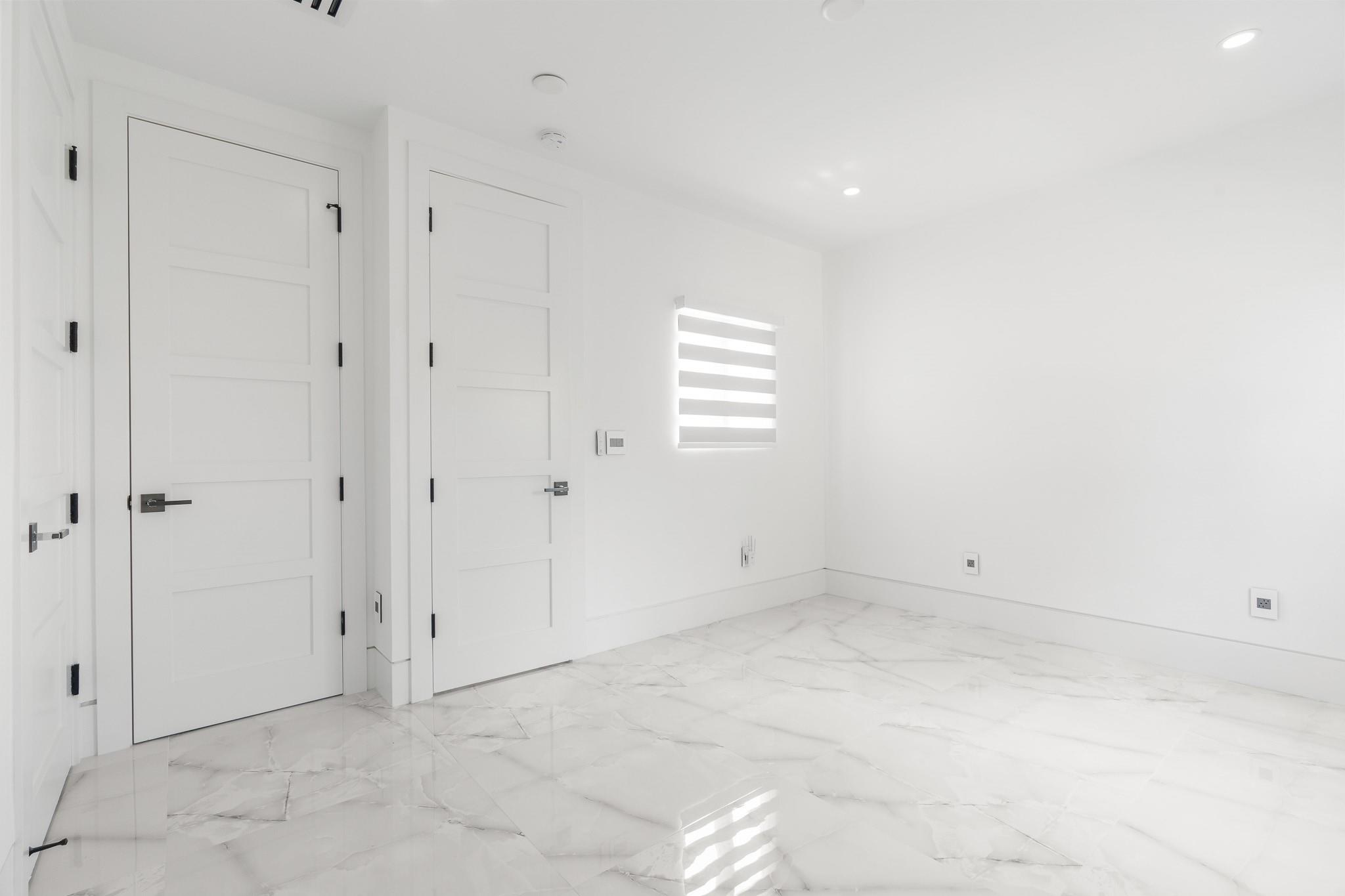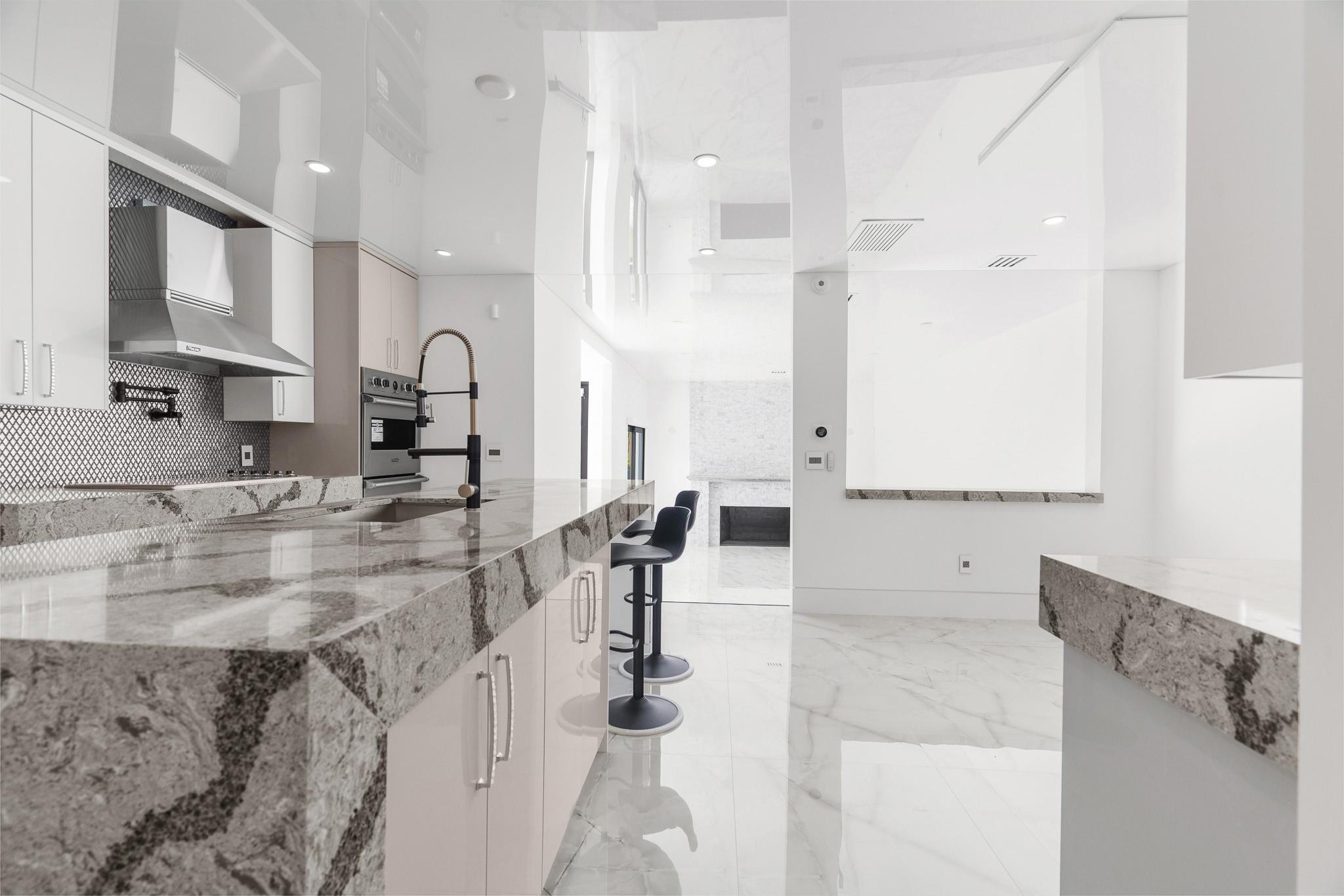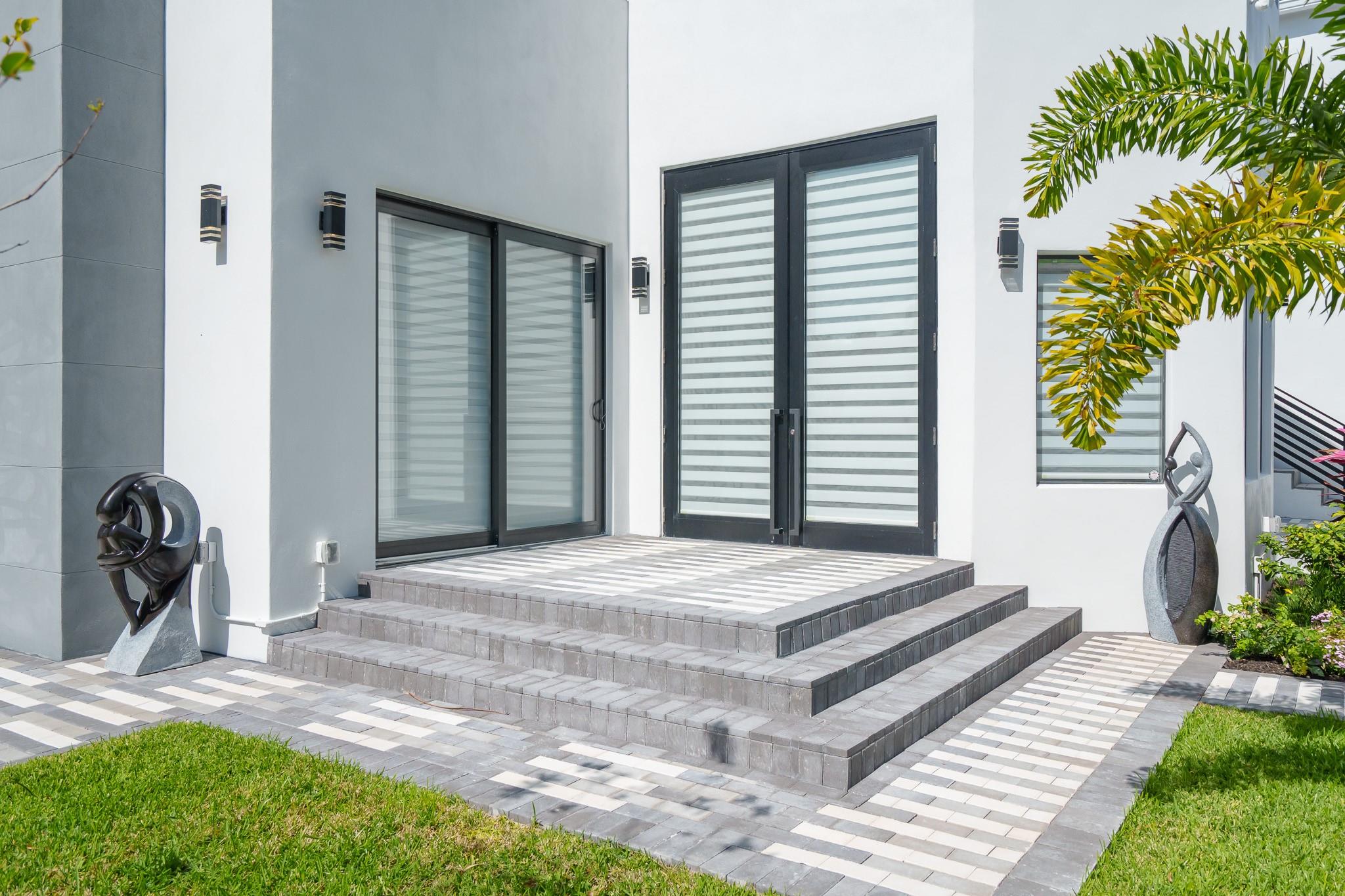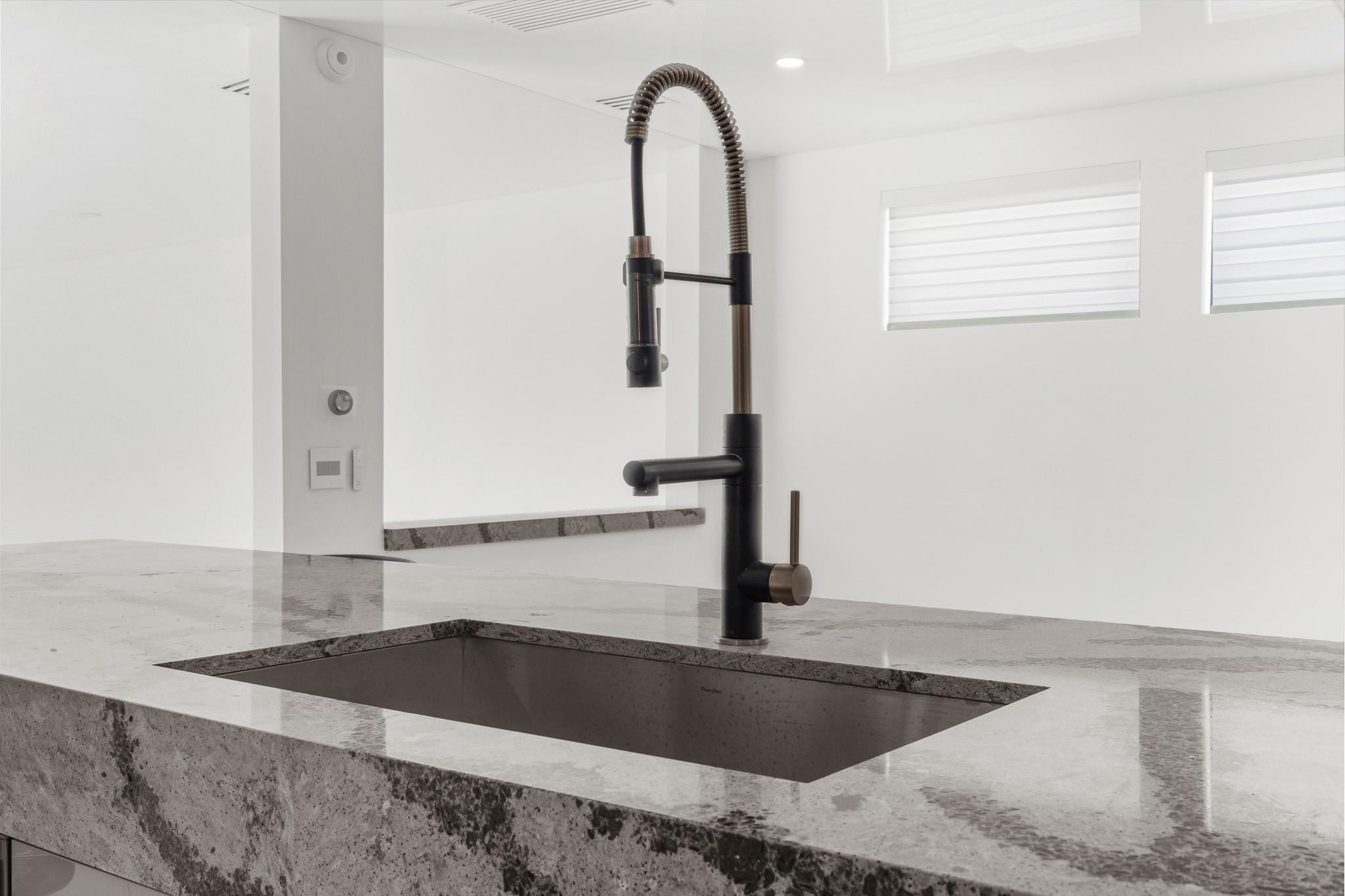 Spectacular newly custom-rebuilt modern estate home encircled by a grandfathered-in, 6-foot tall concrete privacy wall on a corner lot in the quiet Flamingo Park Historical District of the City of West Palm Beach. Patio Outdoor Kitchen w/ Gazebo. Salt Water Heated Jacuzzi & Swimming Pool w/ Sun Shelf & In-Pool Chaise Loungers & Fountain Geysers. Gourmet VIKING Eat-In Kitchen & large Center Island w/ Water-Fall Edged Quartzite Countertops. Optional capsule elevator to second floor Master Suite w/ huge ensuite Master Bath w/ Safari Double Massaging Shower & Handcrafted Copper & Chrome Free-Standing Crystal Double-Slipper Jetted Tub. Two Walk-In's in Master Bedroom. Reflective Infinity Ceilings, 10' wide floor-to-ceiling wood-burning fireplace, wireless powered silhouette shades thru out.
