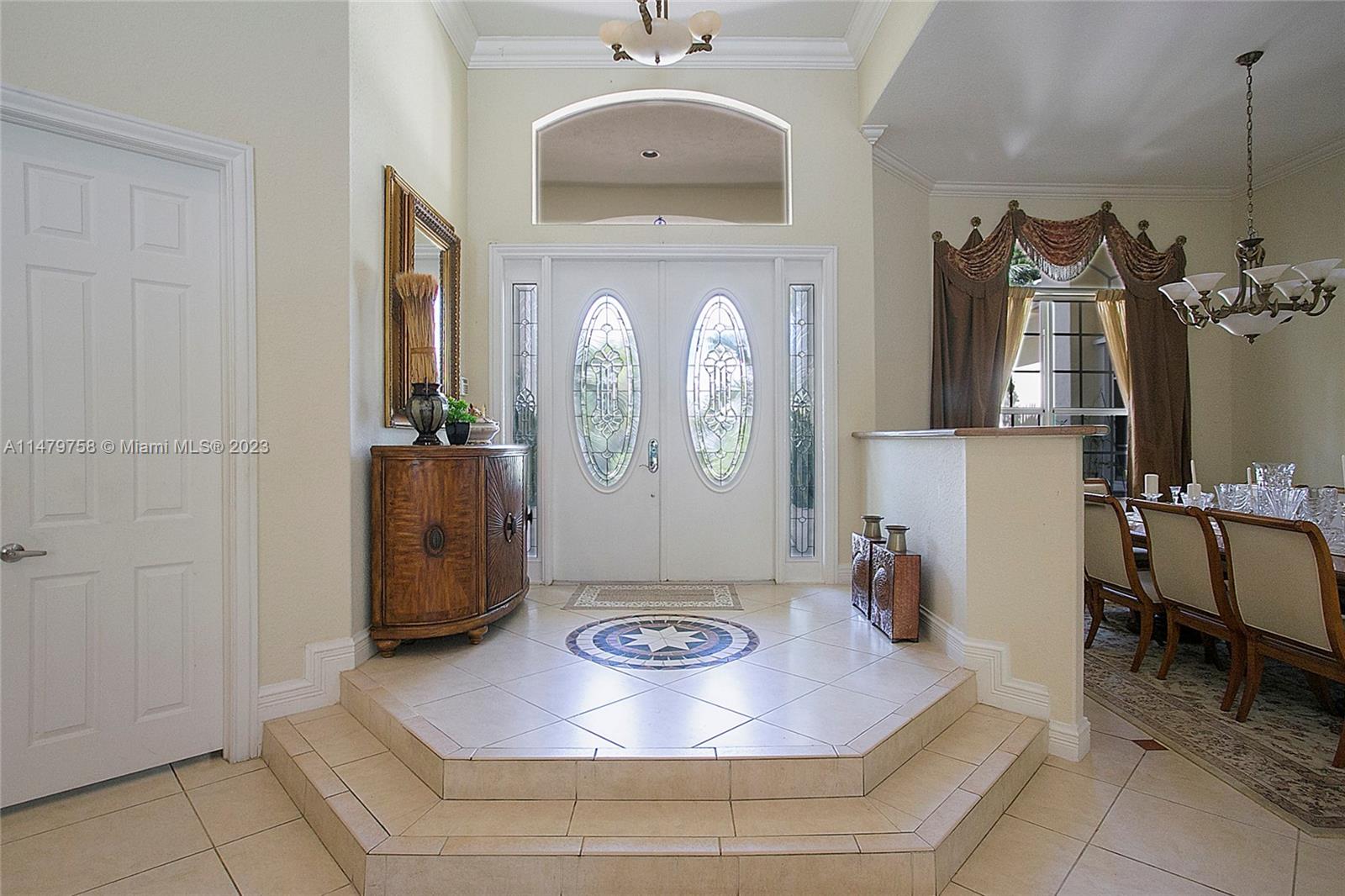 Explore this exquisite 4-bed, 4.5-bath home with 16' feet ceiling, a 3-car garage, pool, and spa in a secure, gated sanctuary on a spacious 2-acre lot. This 5,360 sq ft custom masterpiece features an office and offers elegance and functionality. It includes a formal living room, formal dining room, wet bar, and a grand great room. The kitchen boasts cherry wood cabinets, granite countertops, and a walk-in pantry. The master suite features hardwood floors, coffered ceiling, two walk-in closets, and a spa-like bath with an oversized Jacuzzi and a separate steam shower. Come and experience the pinnacle of luxury living in Southwest Ranches!