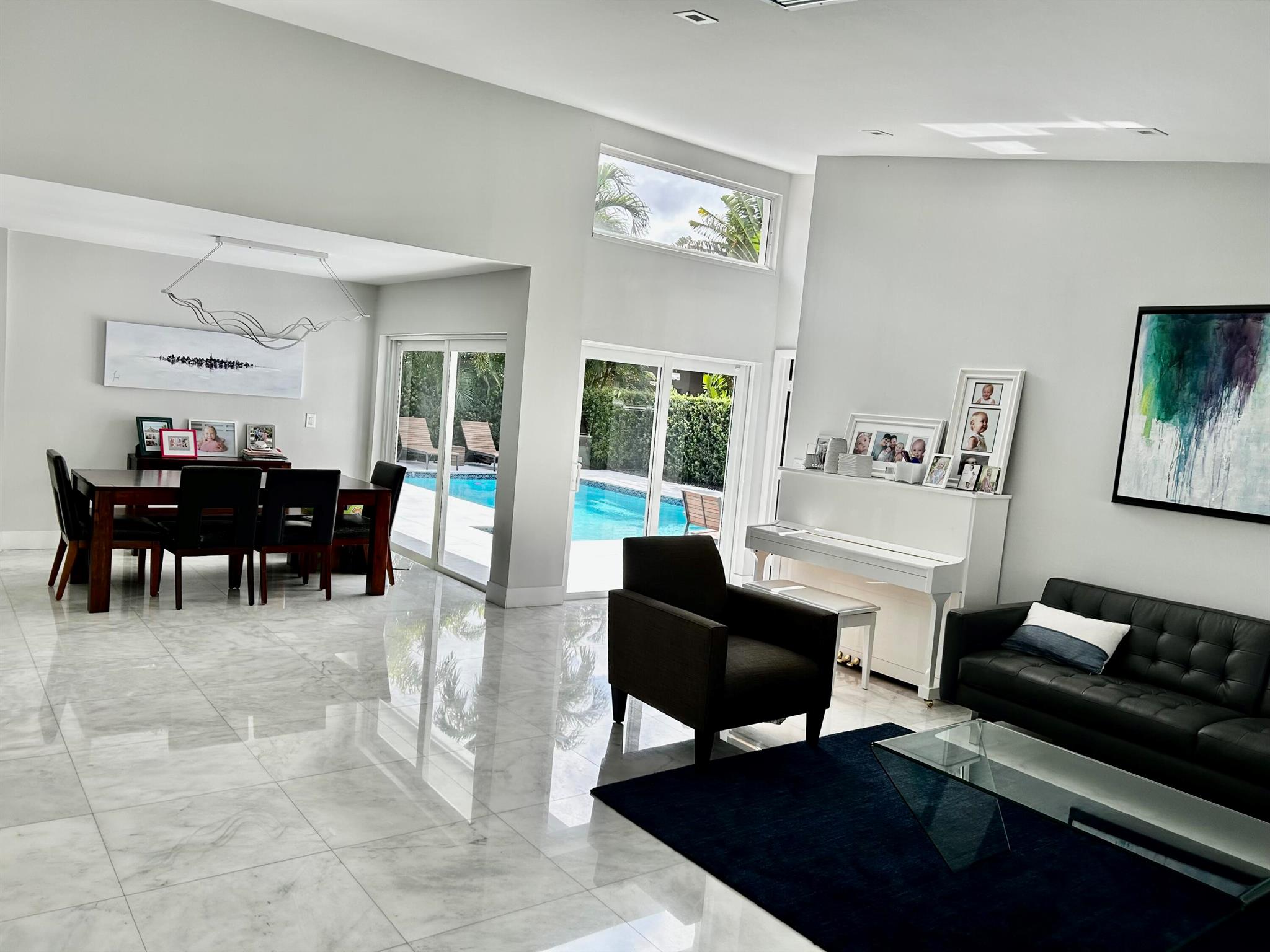 Light, Bright, and Recently (2021-22) Remodeled Residence using the Finest of Finishes! Flooring consists of Impressive Marble in the Living Areas and Hard Wood in the Bedrooms. Kitchen features Stylish Silestone Quartz Spacious Countertops, Handsome Cabinetry and Newer SS Appliances. Lovely Home is Illuminated with Sleek Flush Fixtures throughout the High Ceilings and Vogue Dining Room Chandelier. House has Impact Glass & Sophisticated Drainage System. Gorgeous Pool Decking is Comprised of Sandblasted Marble Slabs resembling a Resort, surrounding a Stylishly Tiled and Freshly Diamonded and Cool Lit Pool. Curb Appeal of the Property is the new Italian Stone Circ Driveway and it's Situated in a Central Located (virtual) No HOA Neighborhood. The Bathrooms are not original, but not updated.