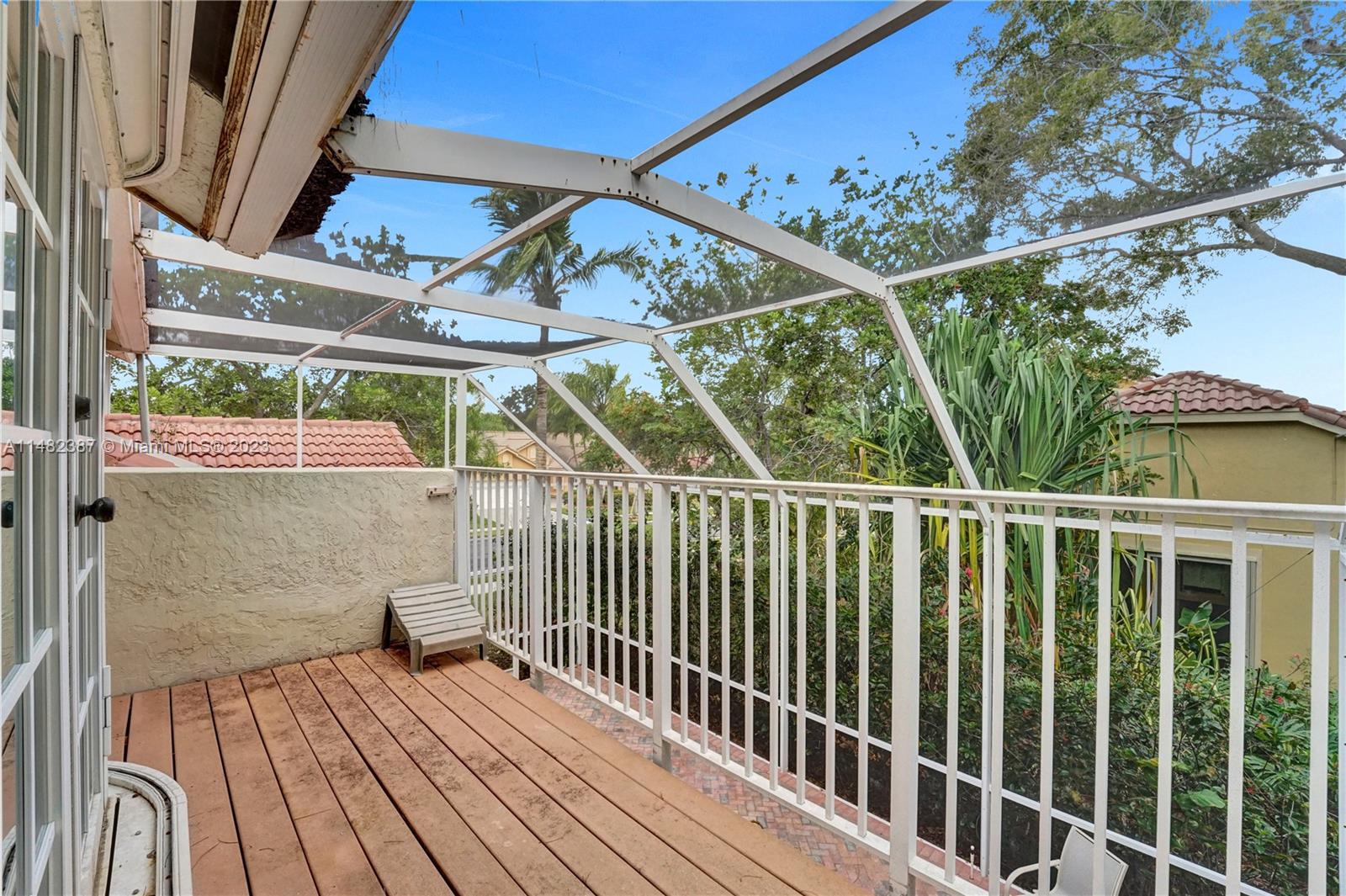 Amazing opportunity at the very desirable Laguna Springs II. An unbeatable value in a prime corner location. Generous living space with high ceilings and tall glass sliding doors that give a bright, airy, and open feel. Two convenient bedrooms at ground level, bathroom + dining, living, and family rooms. 2nd level with brand-new, stylish flooring, ample primary suite with balcony, large en-suite bathroom, and deep walk-in closet. Enjoy the screened patio with brick pavers & room for a pool. Full storm protection including windows and garage door. Additional features include the recently updated A/C unit and barrel tile roof installed in 2006. Within close distance of the community clubhouse and pool. You're just a stone's throw from Indian Trace Elementary School, parks, Chabad & church.