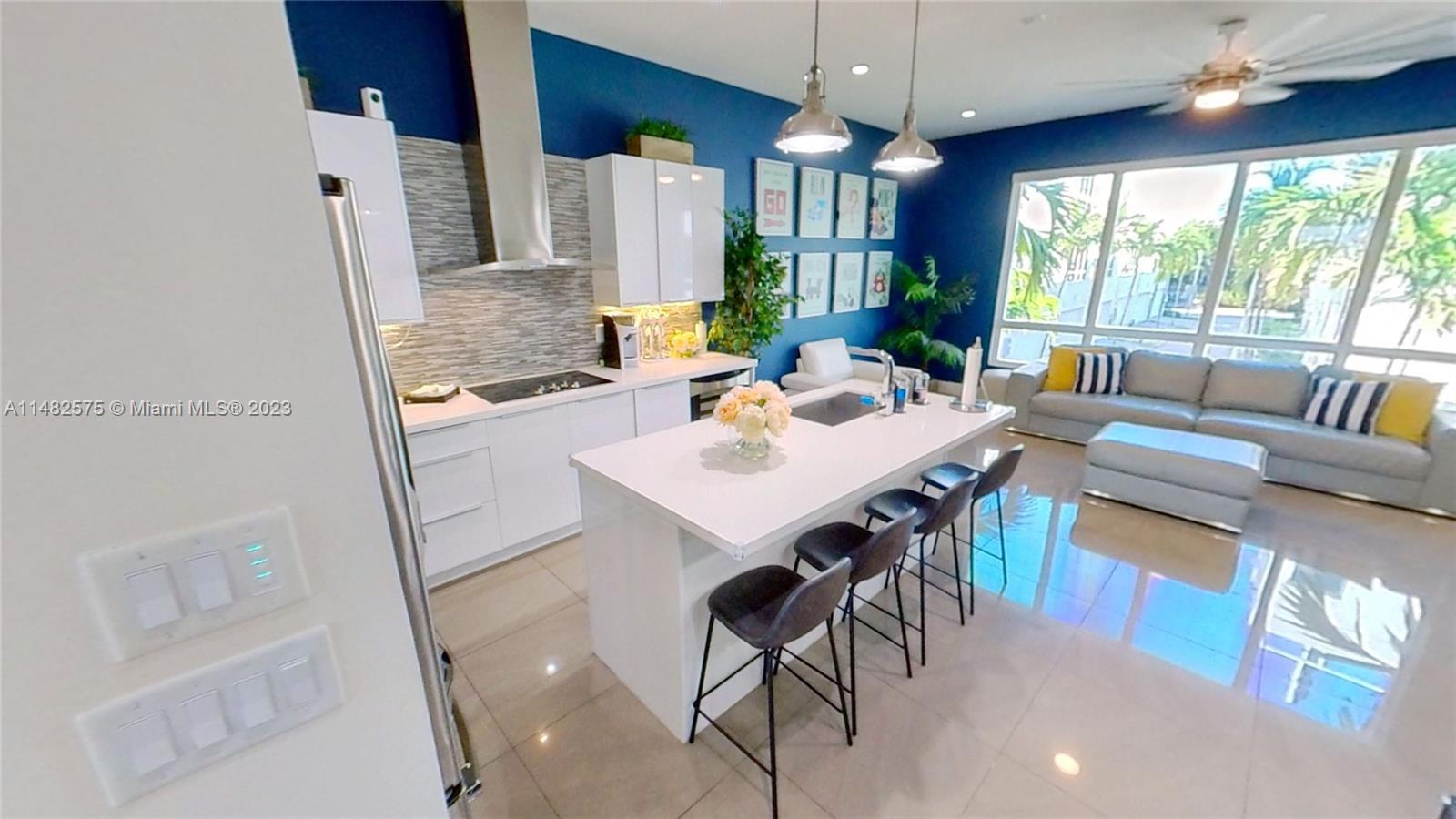 Incredible 3 Story Townhouse with a Private Elevator. The 1st floor is a 2 car garage/laundry room/ Jr Suite with its own full bathroom. The 2nd floor, an unobstructed view of the park along with the available guest parking spots. The 2nd floor also where the family room and open kitchen are located. Surrounded by the modern style architecture, you find the property cozy and private. You'll find the property has all the tinted impact windows to protect your privacy and regulate the temperature. On the 3rd floor, you can either take the stairs by the entrance or use the elevator to reach the master bedroom and 2nd Jr Suite. The master bedroom has customized closet and all rooms include walk-in closets. There is even space for hidden office. Property is 2399 SQ FT.