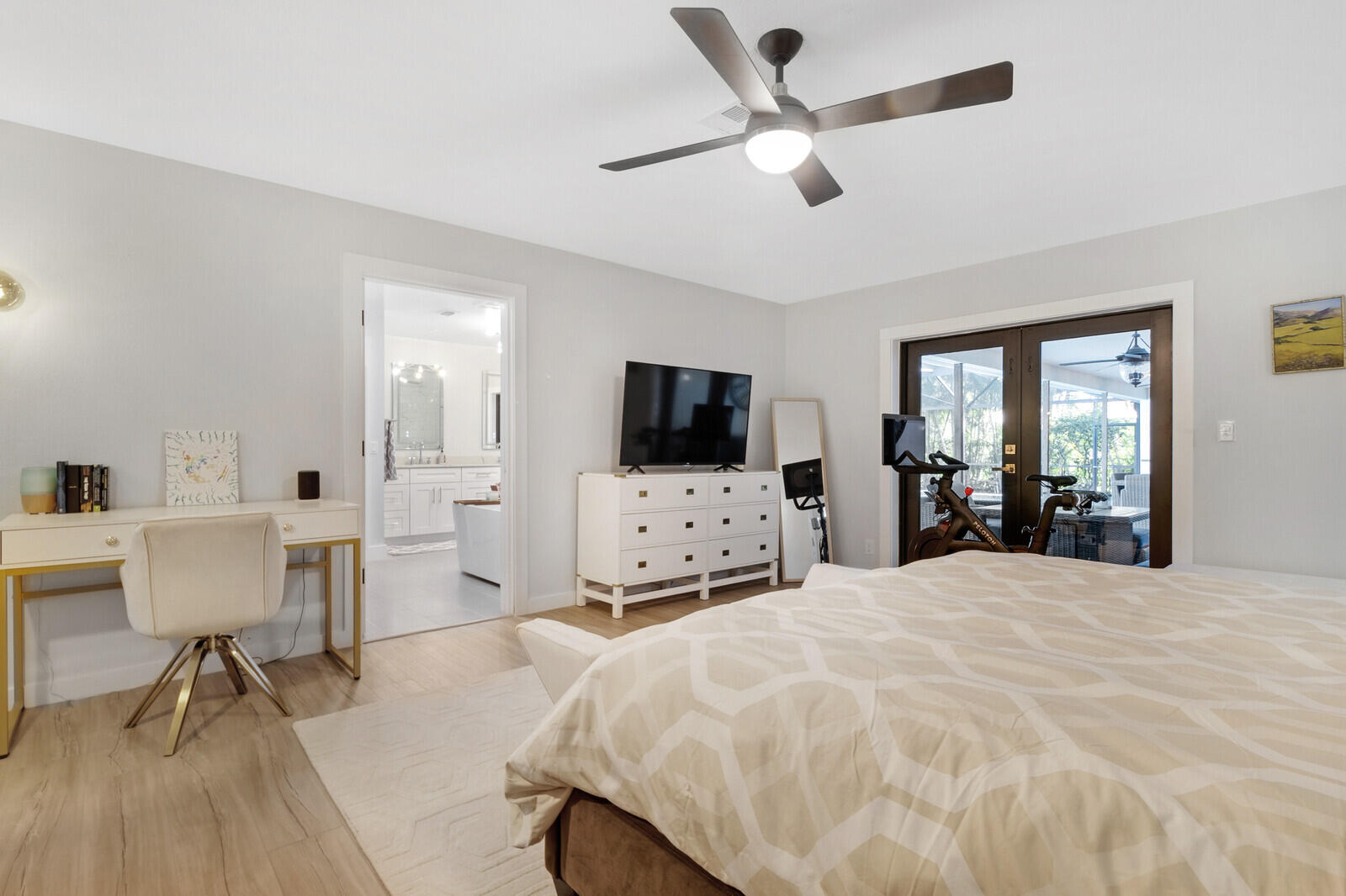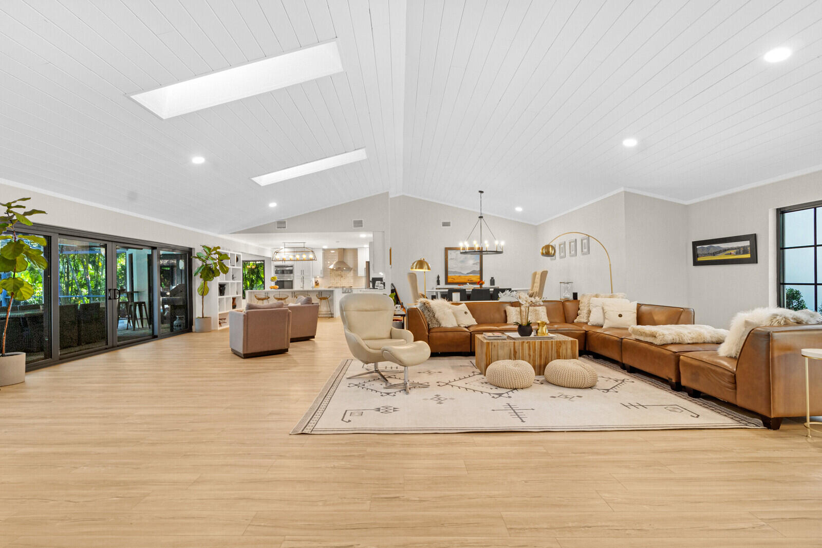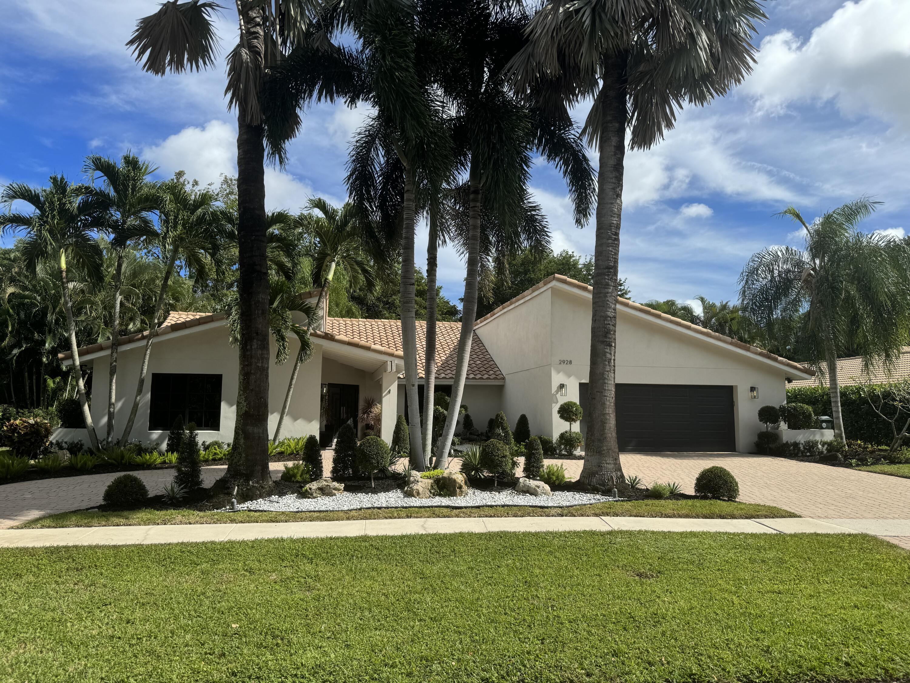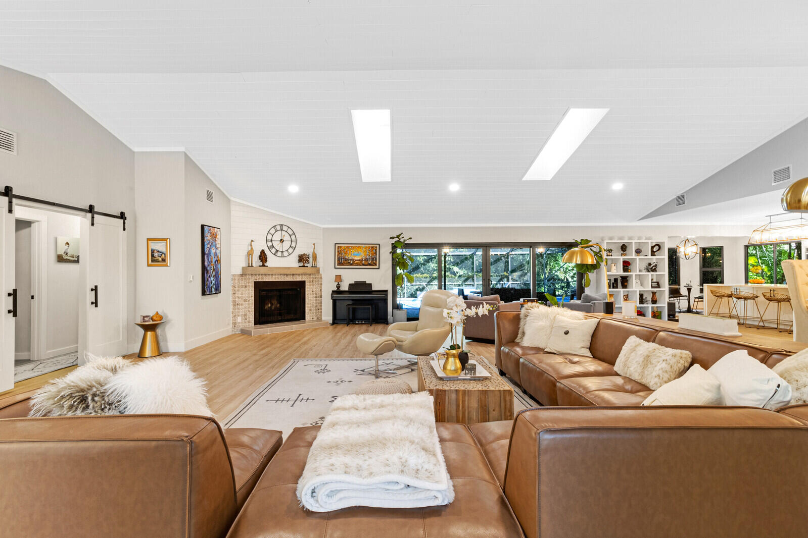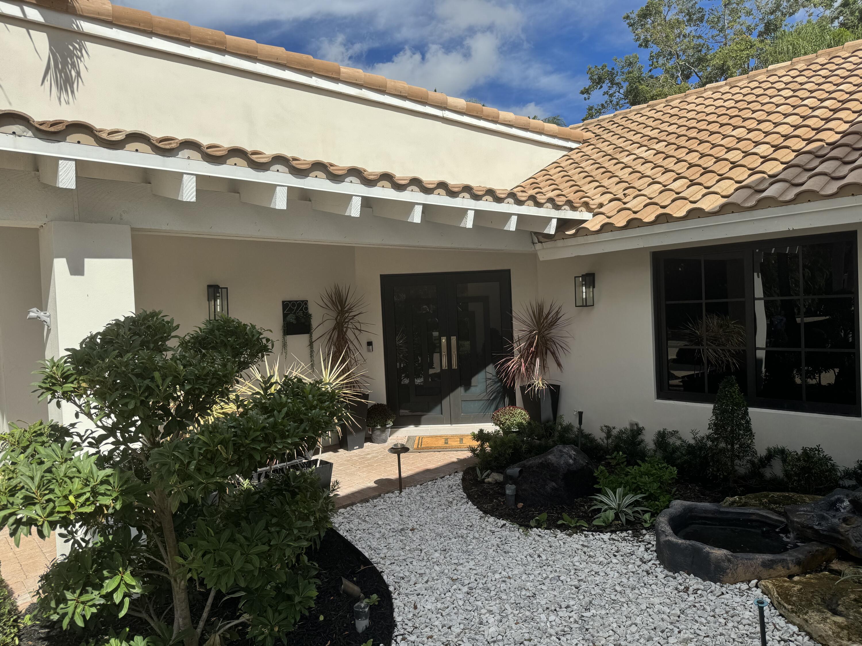 Home available Immediately! A rare find in the no membership equity community of Boca Bath & Tennis. Completely renovated in 2021, the modern farmhouse is light and bright, offering 4 large bedrooms, 3 renovated baths. The one story home features cathedral ceilings with skylights and an open floor plan close to the clubhouse! Highlights include impact windows and doors, luxury vinyl floor, wood burning FP, large eat-in kitchen with breakfast bar, screened-in back patio with oversized pool with water feature and a private, fenced-in backyard with vegetable raised beds, fruit trees and tall privacy hedges. This home is lovingly maintained and is in move in condition as renovation was completed Spring 2021.