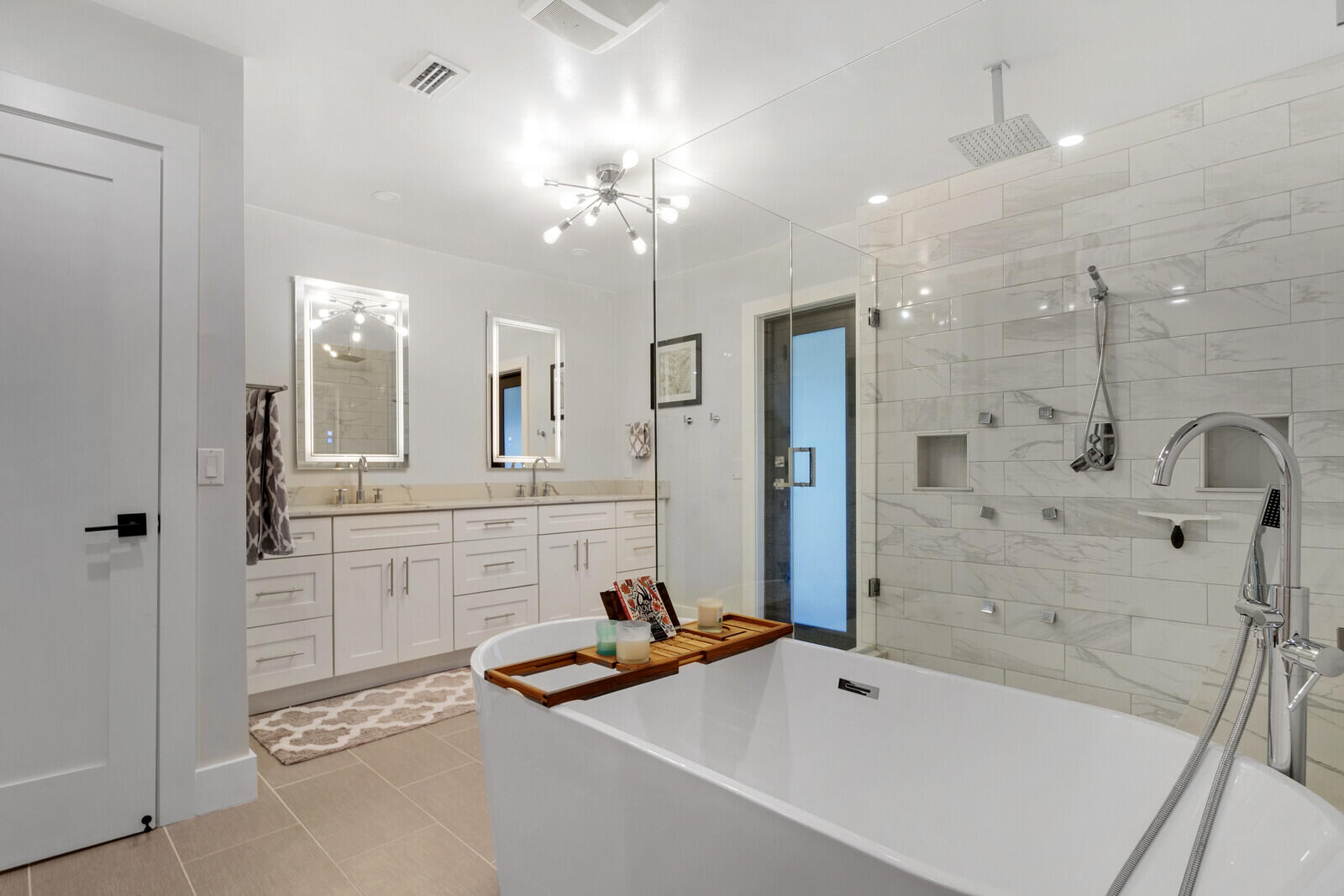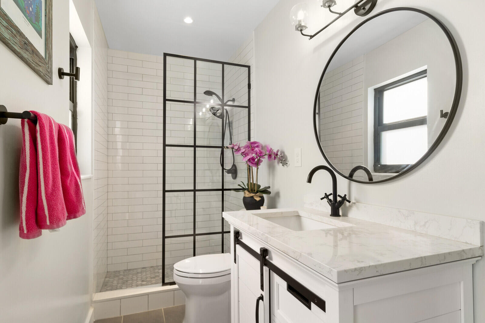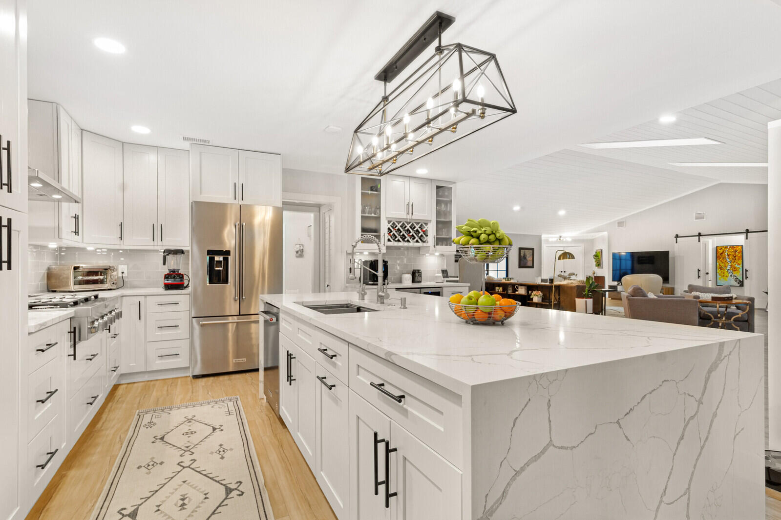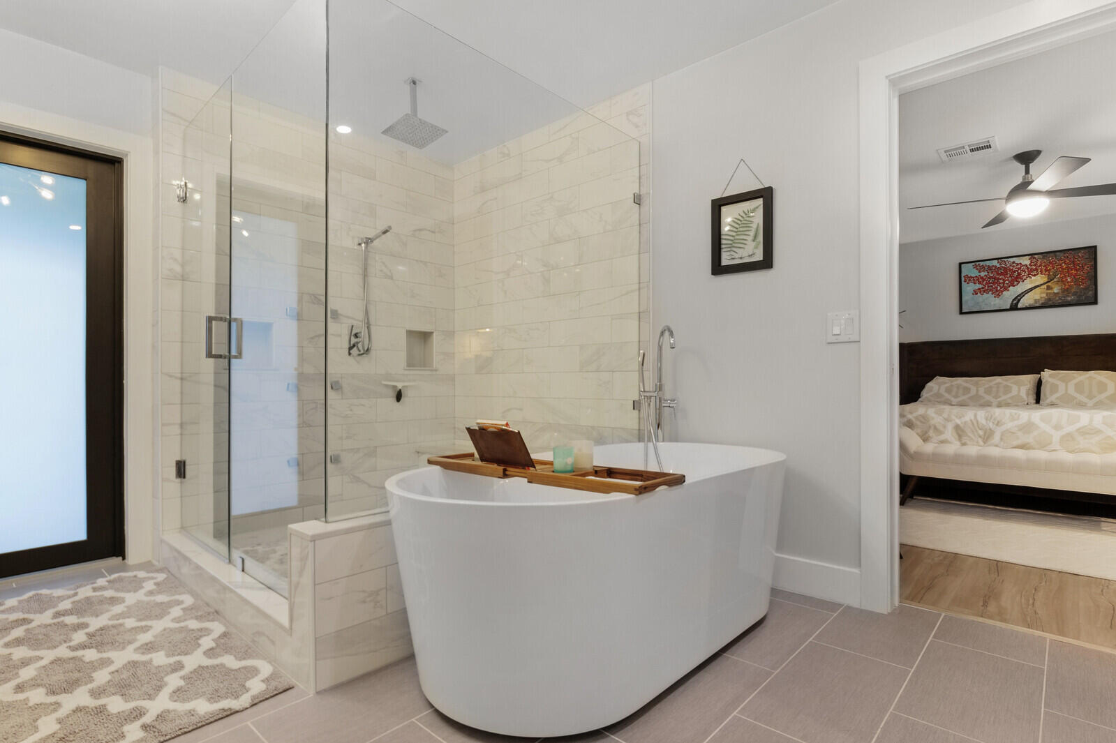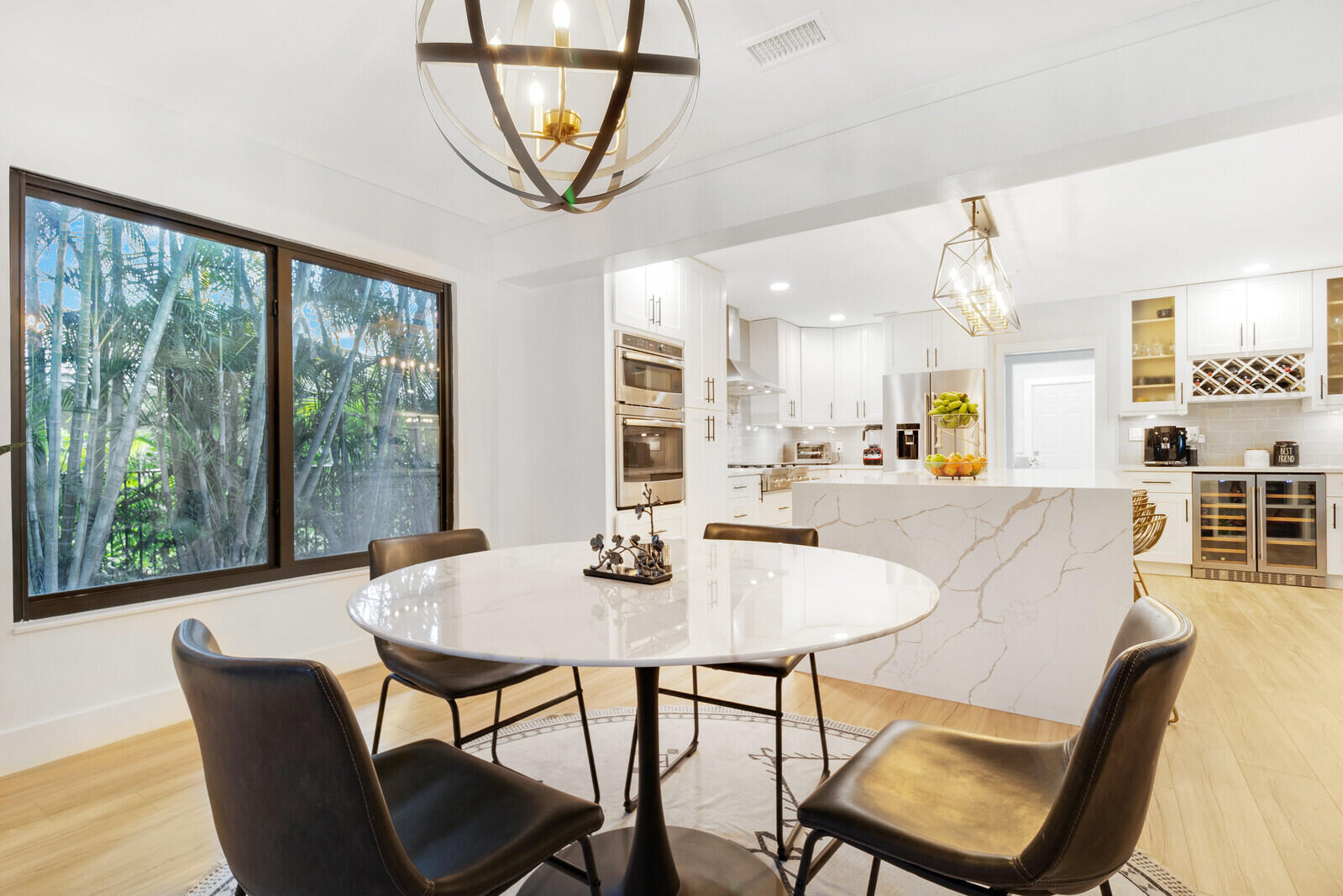 Home available Immediately! A rare find in the no membership equity community of Boca Bath & Tennis. Completely renovated in 2021, the modern farmhouse is light and bright, offering 4 large bedrooms, 3 renovated baths. The one story home features cathedral ceilings with skylights and an open floor plan close to the clubhouse! Highlights include impact windows and doors, luxury vinyl floor, wood burning FP, large eat-in kitchen with breakfast bar, screened-in back patio with oversized pool with water feature and a private, fenced-in backyard with vegetable raised beds, fruit trees and tall privacy hedges. This home is lovingly maintained and is in move in condition as renovation was completed Spring 2021.