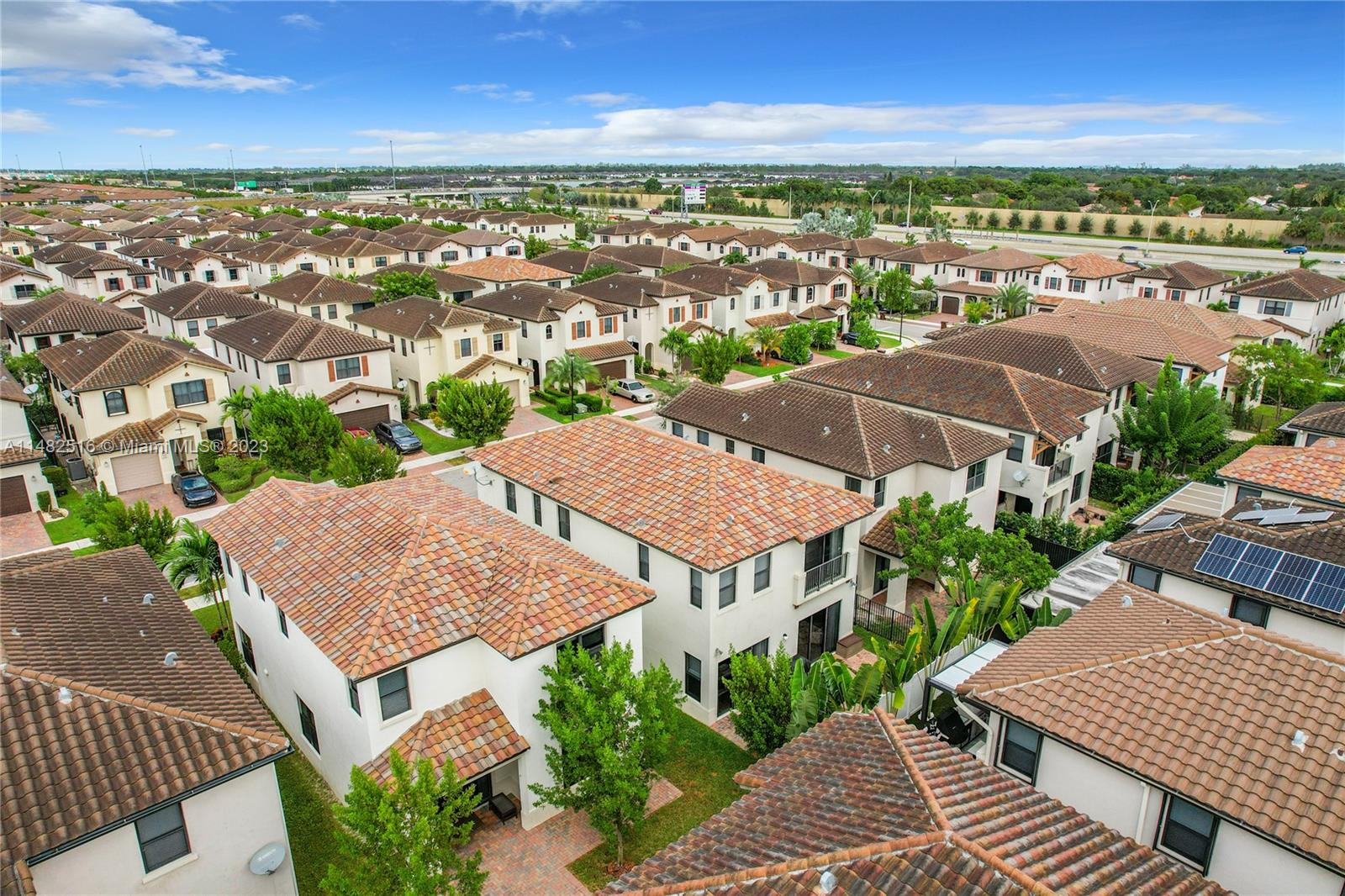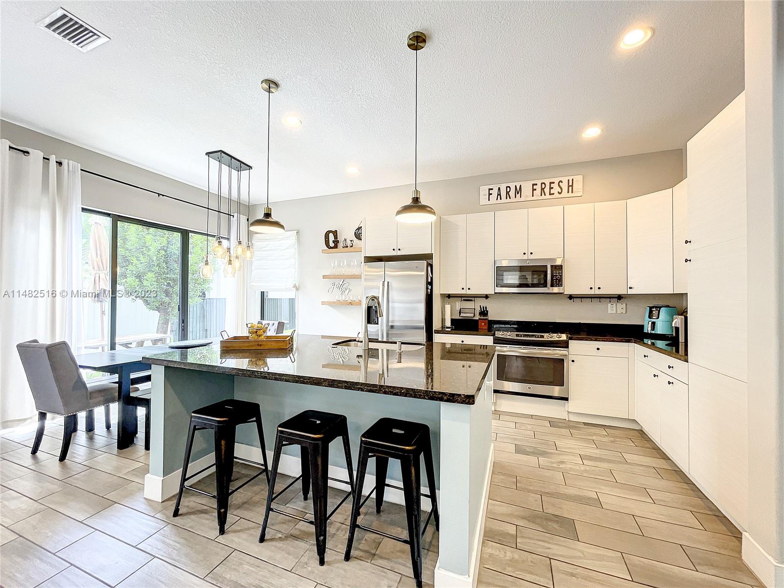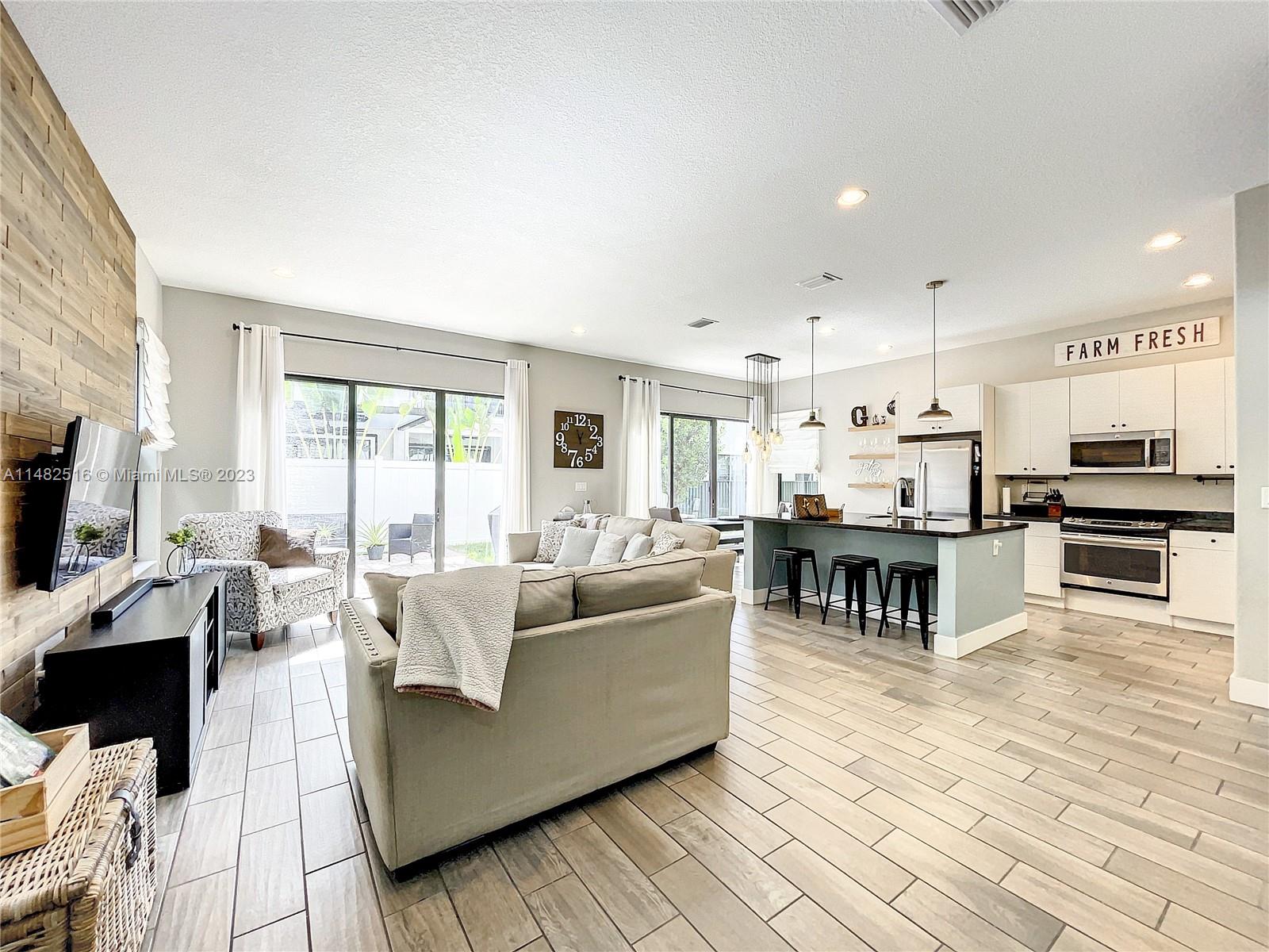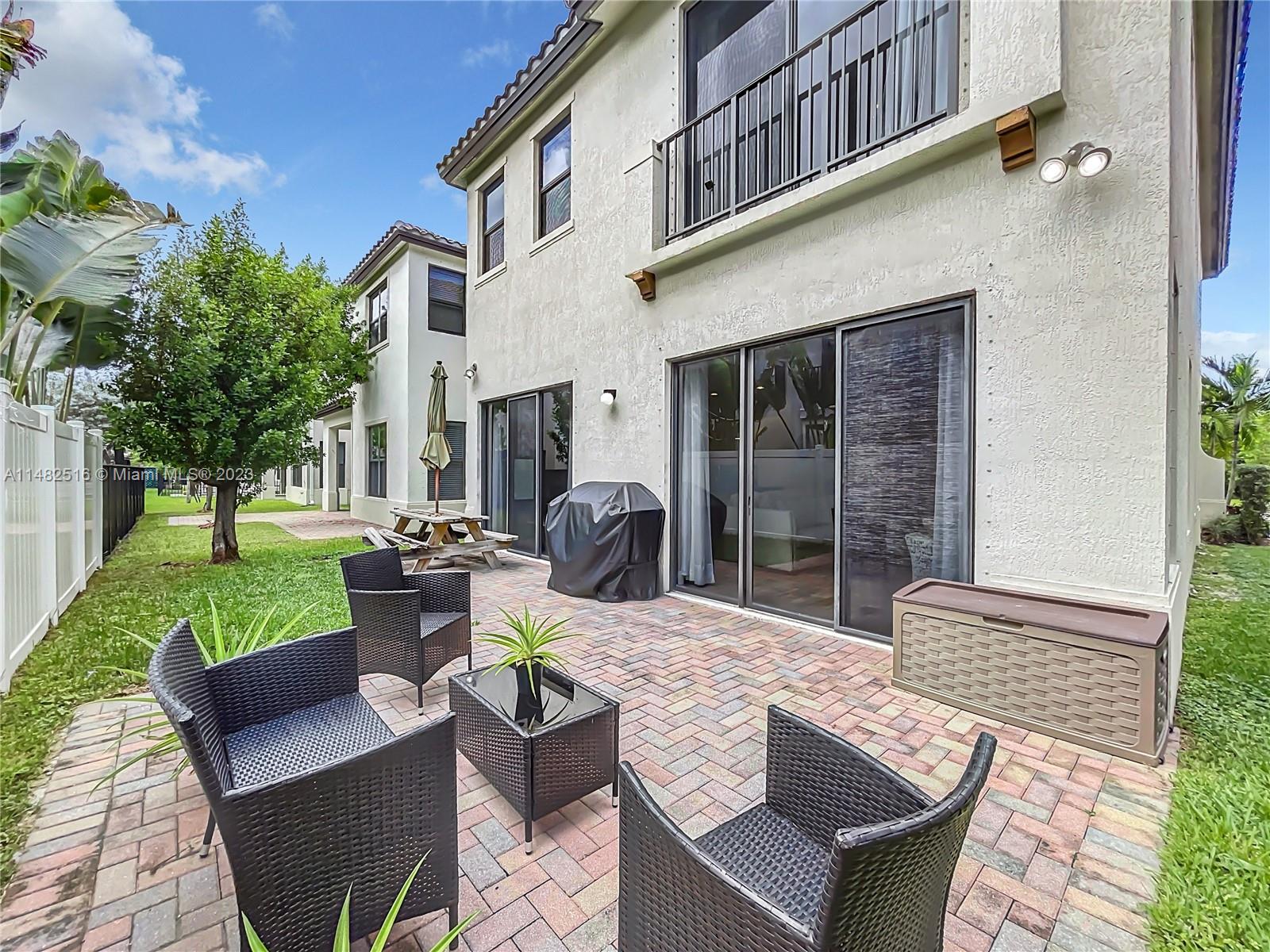Stunning residence available in the prestigious Bonterra community. This home boasts 5 bedrooms and 3 bathrooms, including a first-floor bedroom! The kitchen offers stainless steel appliances and a generous stone counter island with seating. Upgrades include wood plank flooring, upstairs loft, granite counters throughout, wood plank feature wall, and upgraded lightingl Enjoy your outdoor space with oversized pavered patio, upstairs balcony, laundry, and 2 car garage. Clubhouse ammenities include, gym, pool, tennis, basketball and mini soccer courts. Conveniently located near Interstate I-75 and the Palmetto Expressway. Low HOA!!